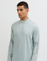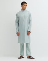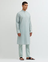 • SD Raw Edge Bade Miyan Kurta Cotton Silk Check Winter Sky
