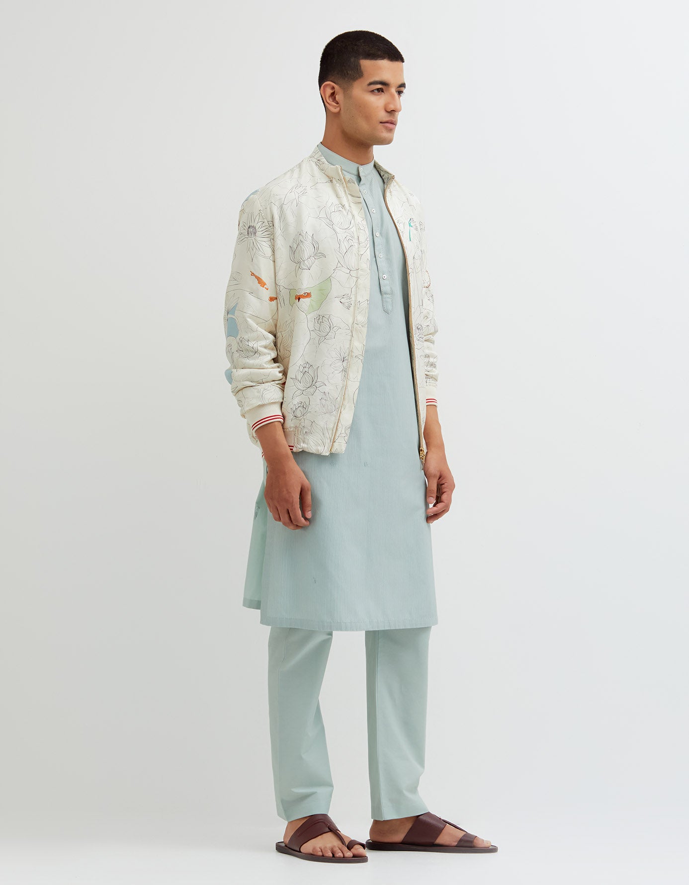 SD Fresco Janbaaz Bomber Jacket Silk Damask White