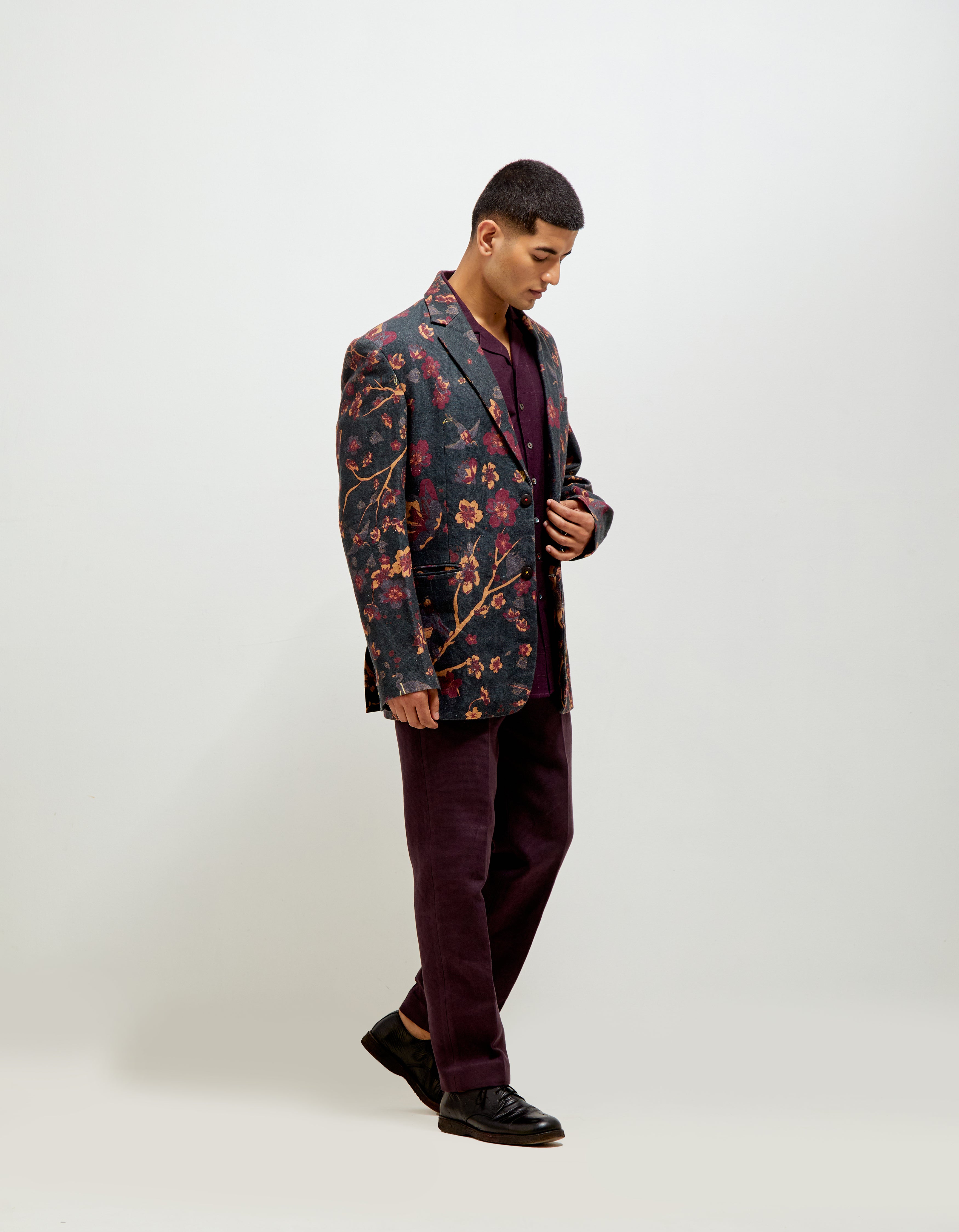 • SD Forest Blossom Rana Blazer D-Green Heavy Linen