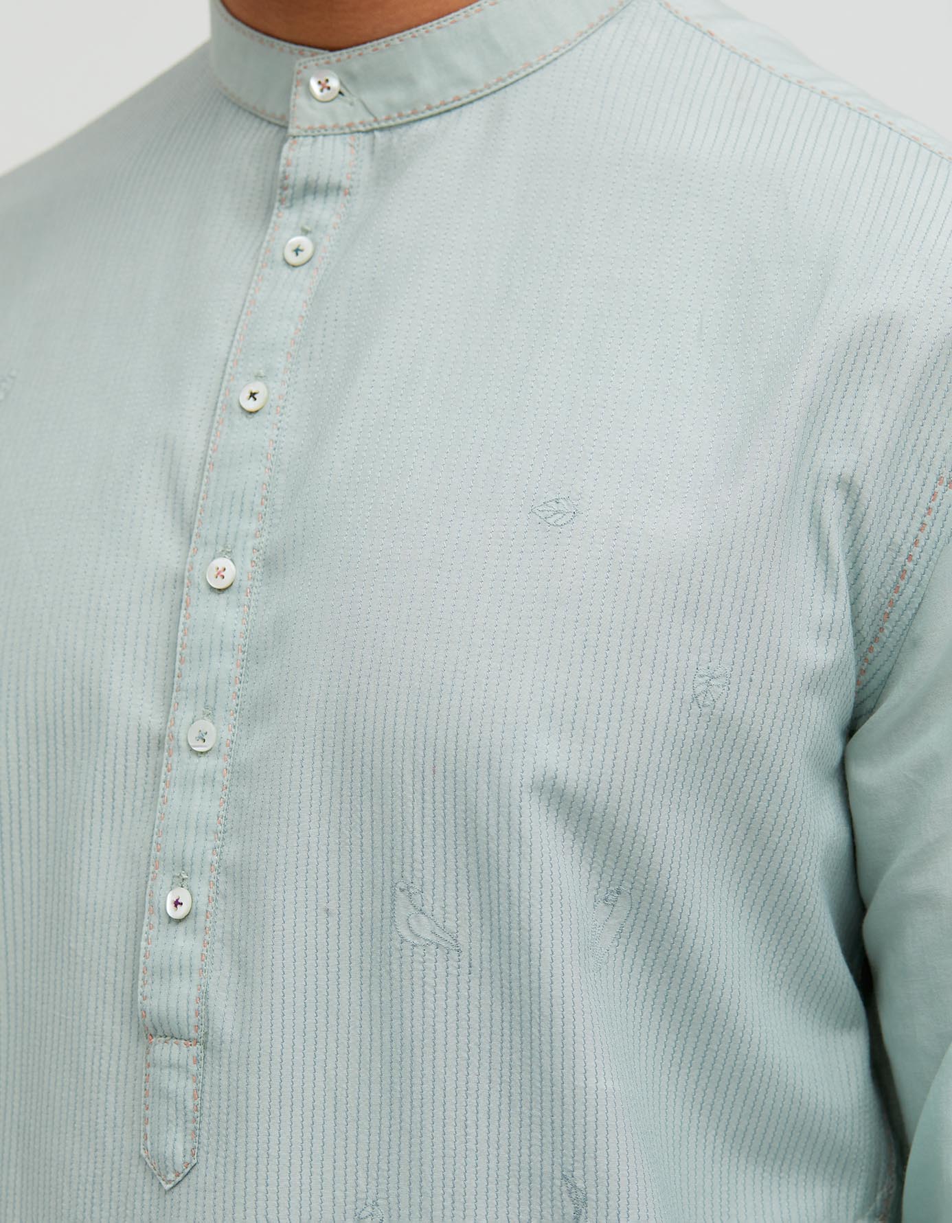 • SD Roshan Bade Miyan Kurta MB Leaf Cotton Silk Winter Sky