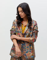 • Panchatantra Rana Blazer Teal Silk Brocade