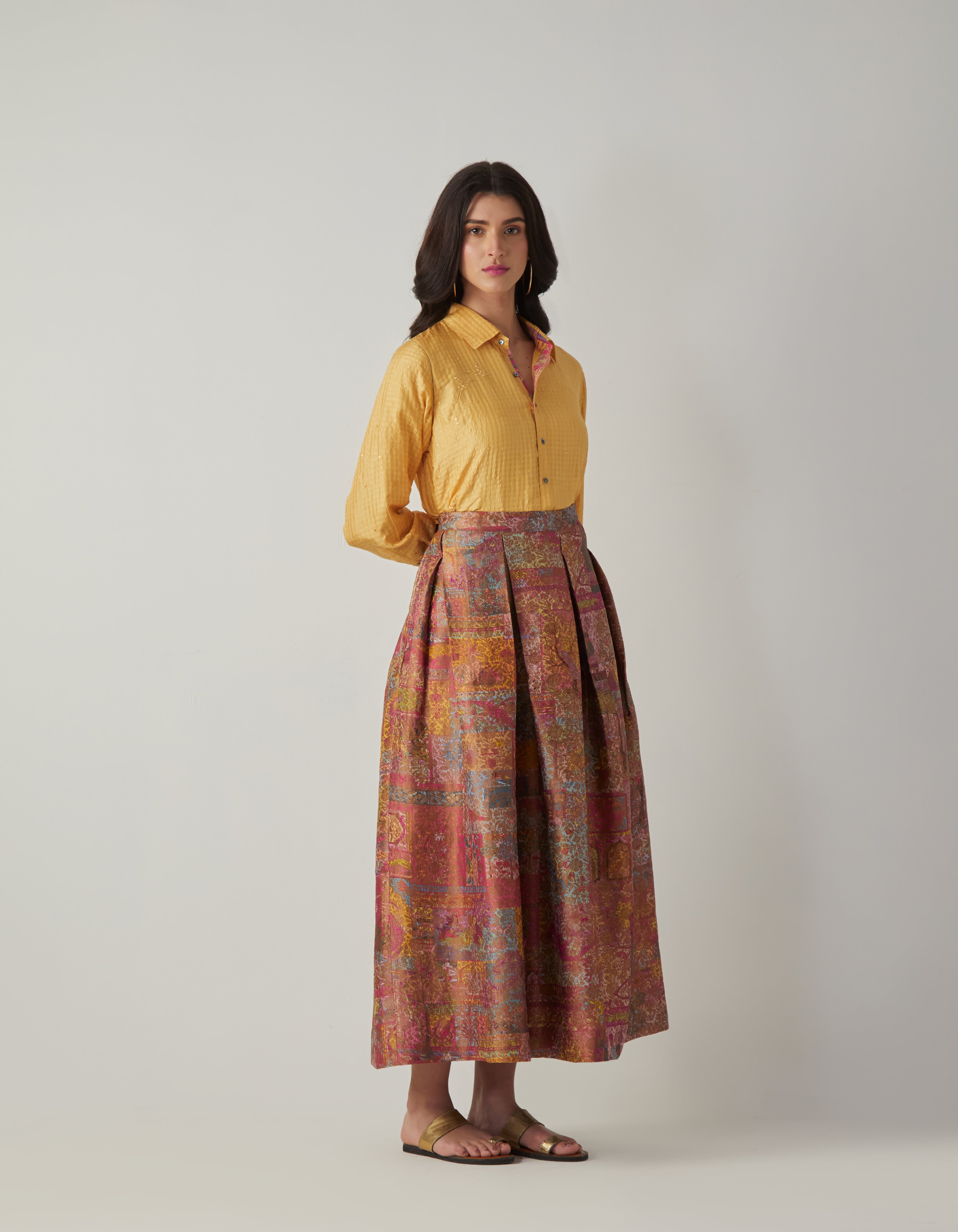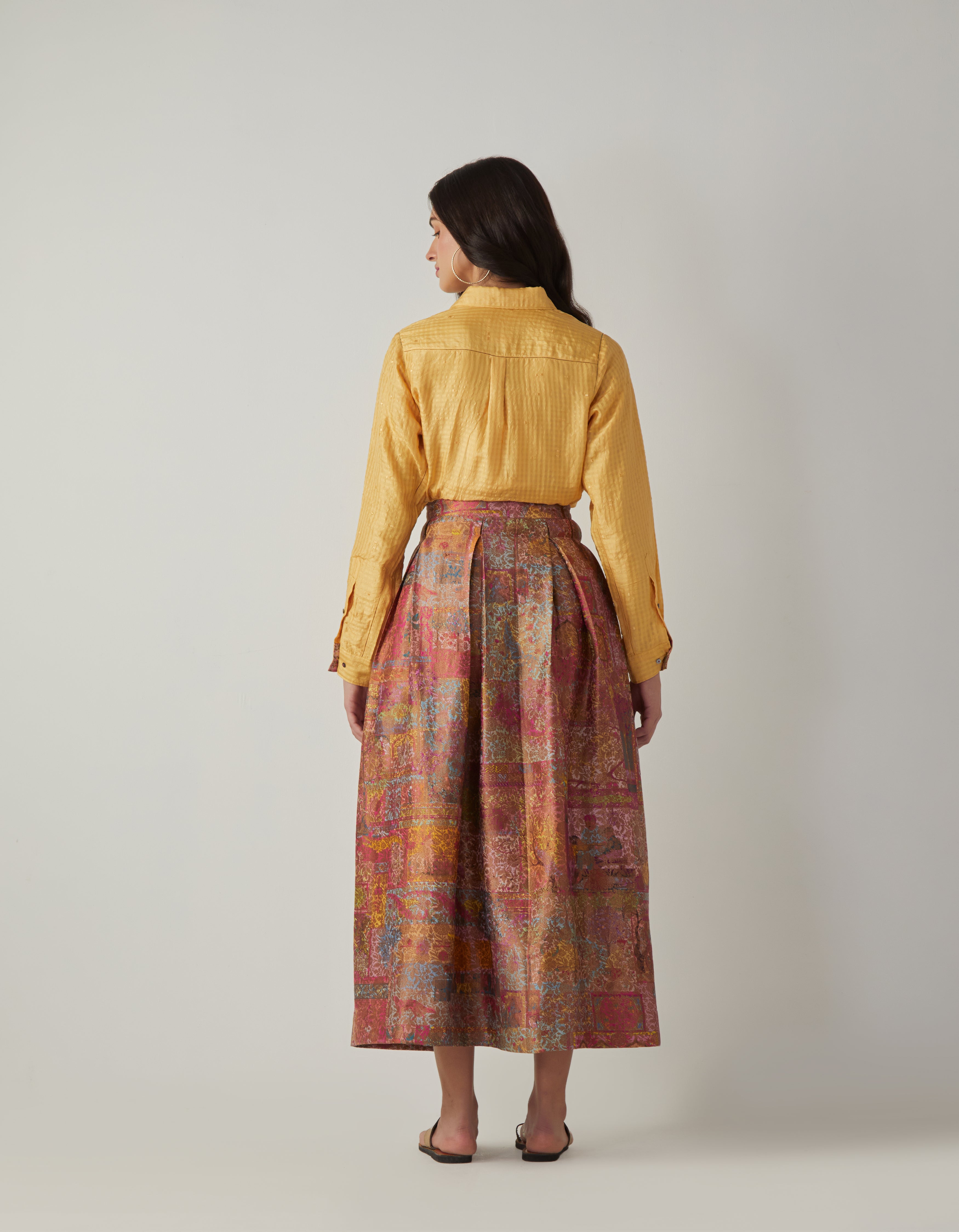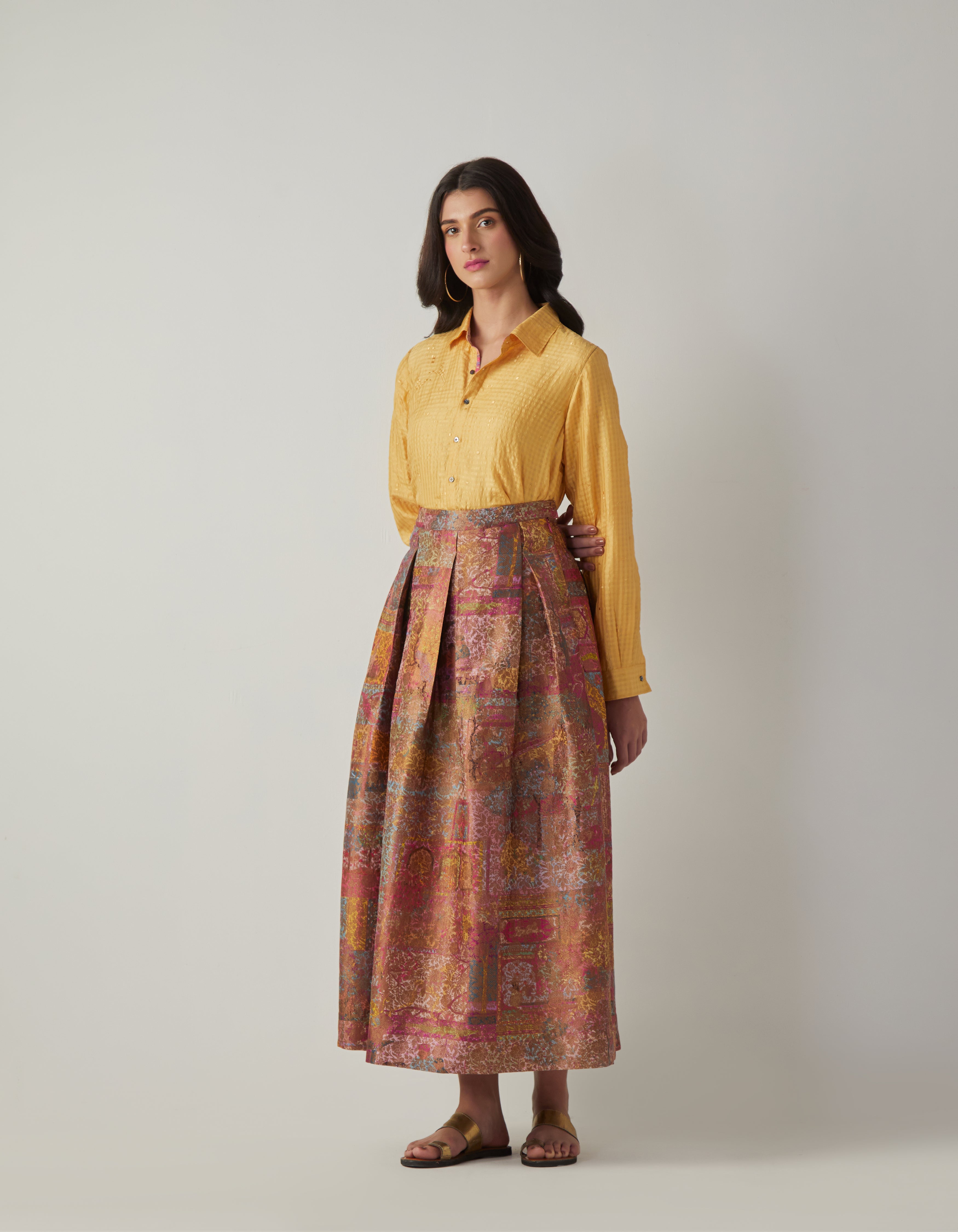 SD Udaan Shirt (Emb) Mustard Handwoven Silk Check