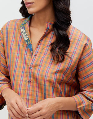 Noor Kurta Burnt Sienna Silk Dupion Check