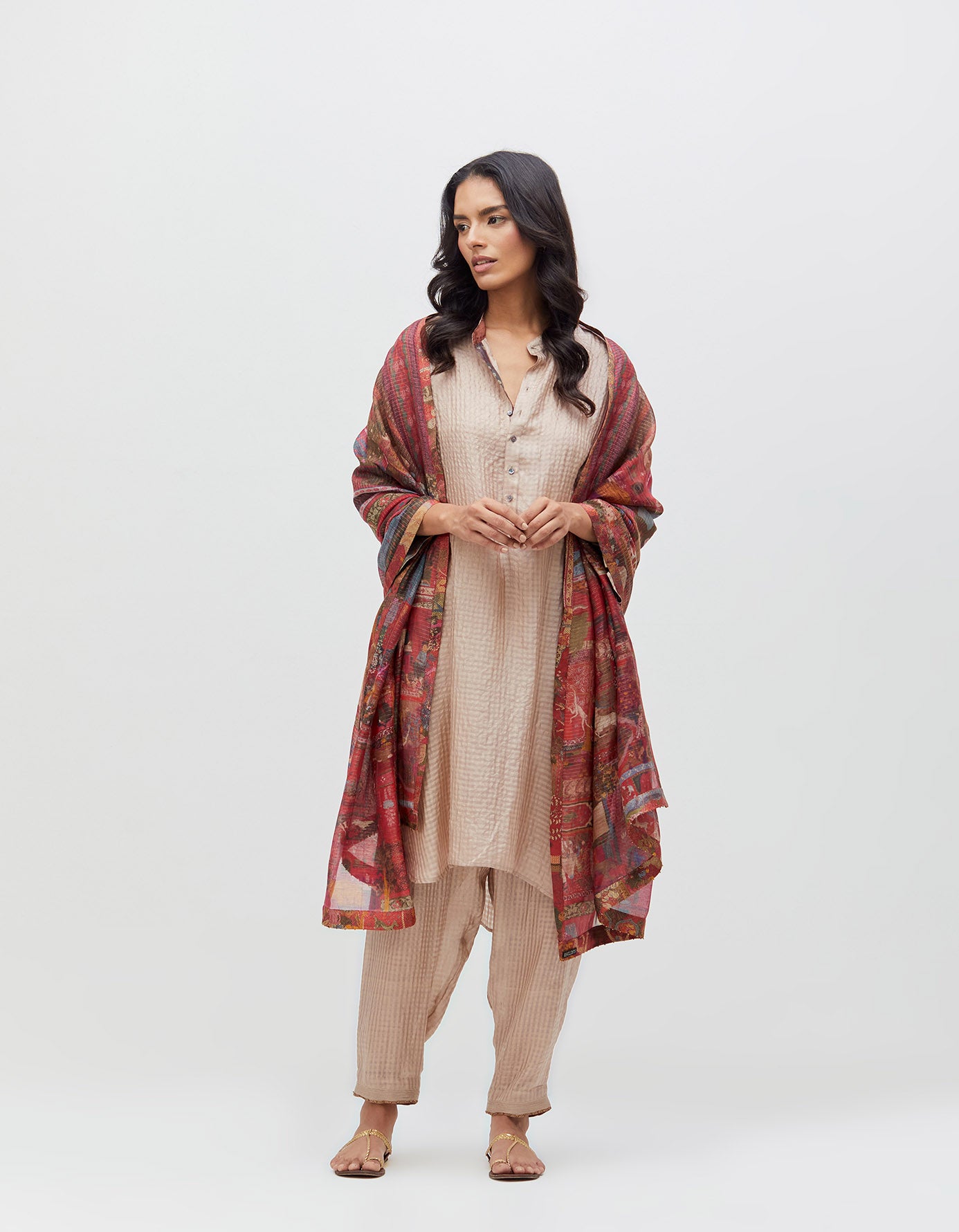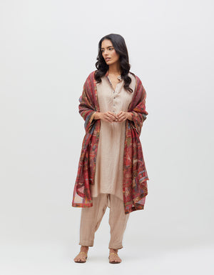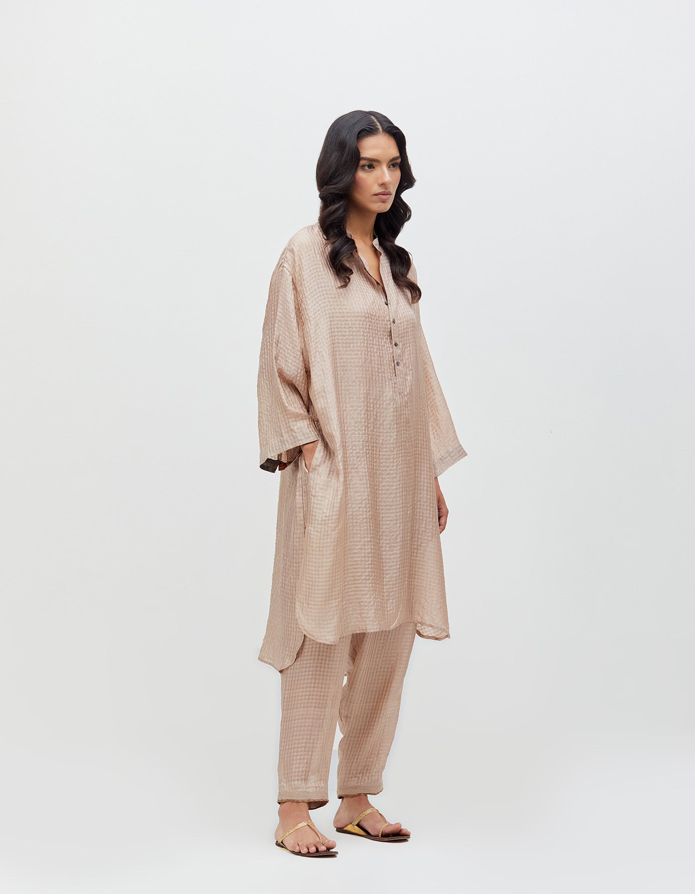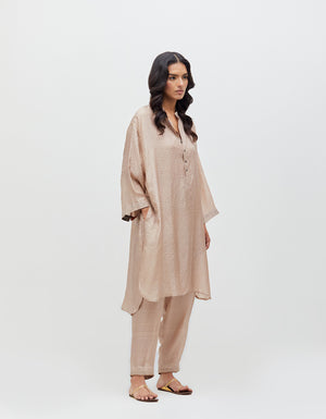 Firoza Kurta Champagne Dust Silk Check