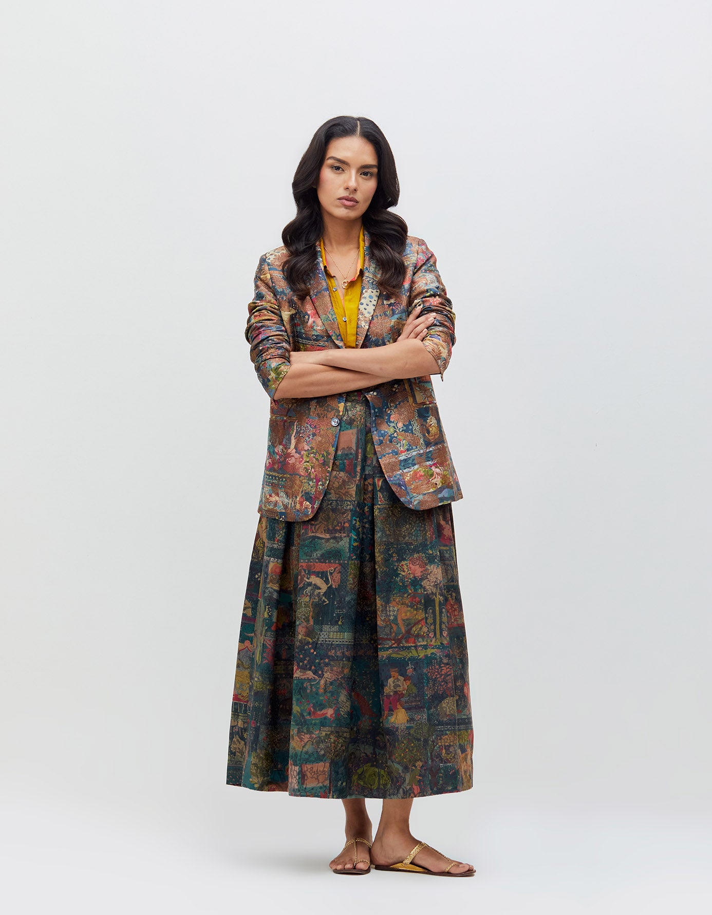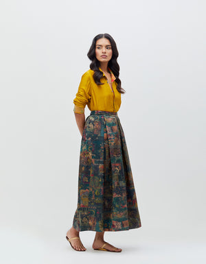 Panchatantra Audrey Skirt Teal Silk Damask