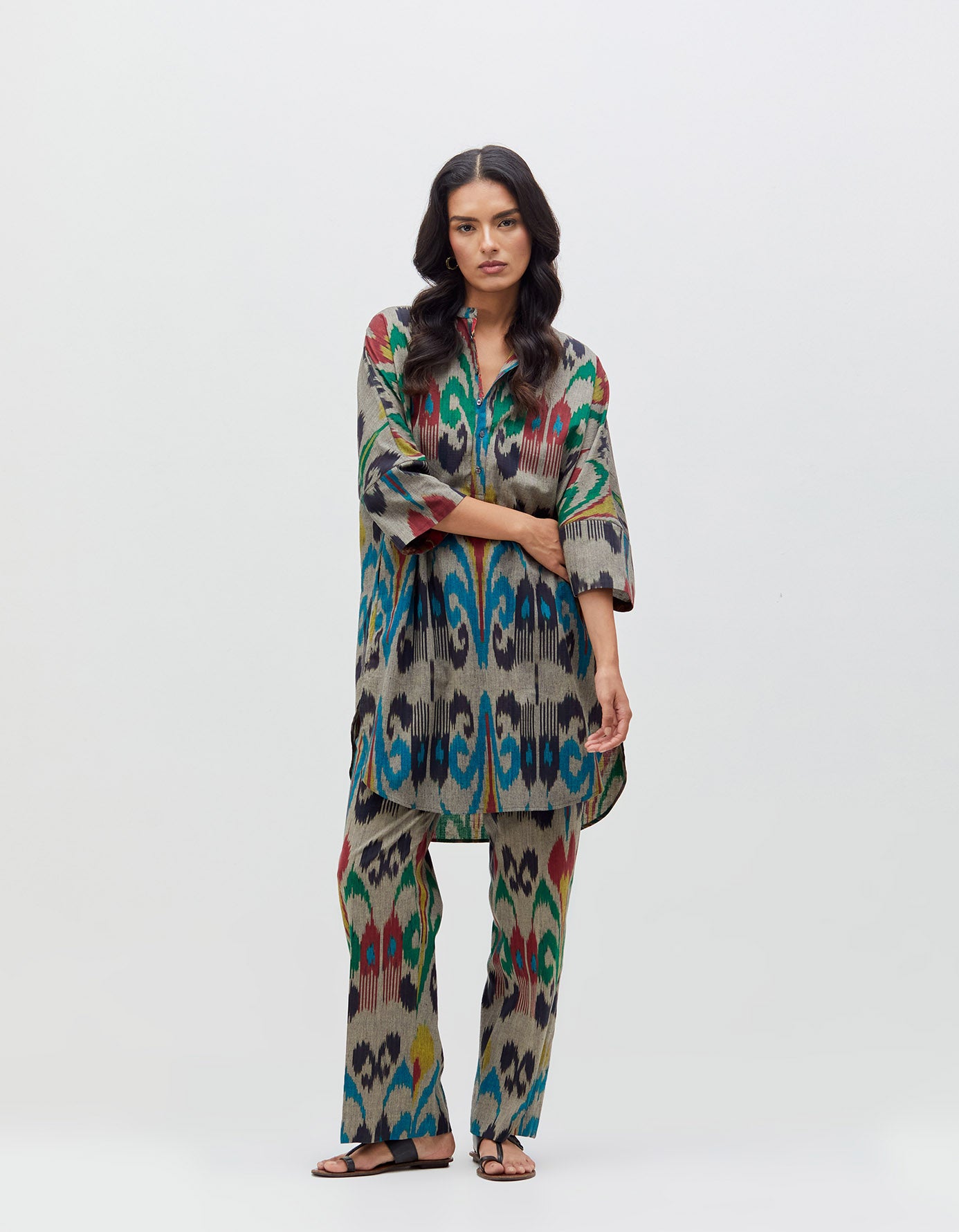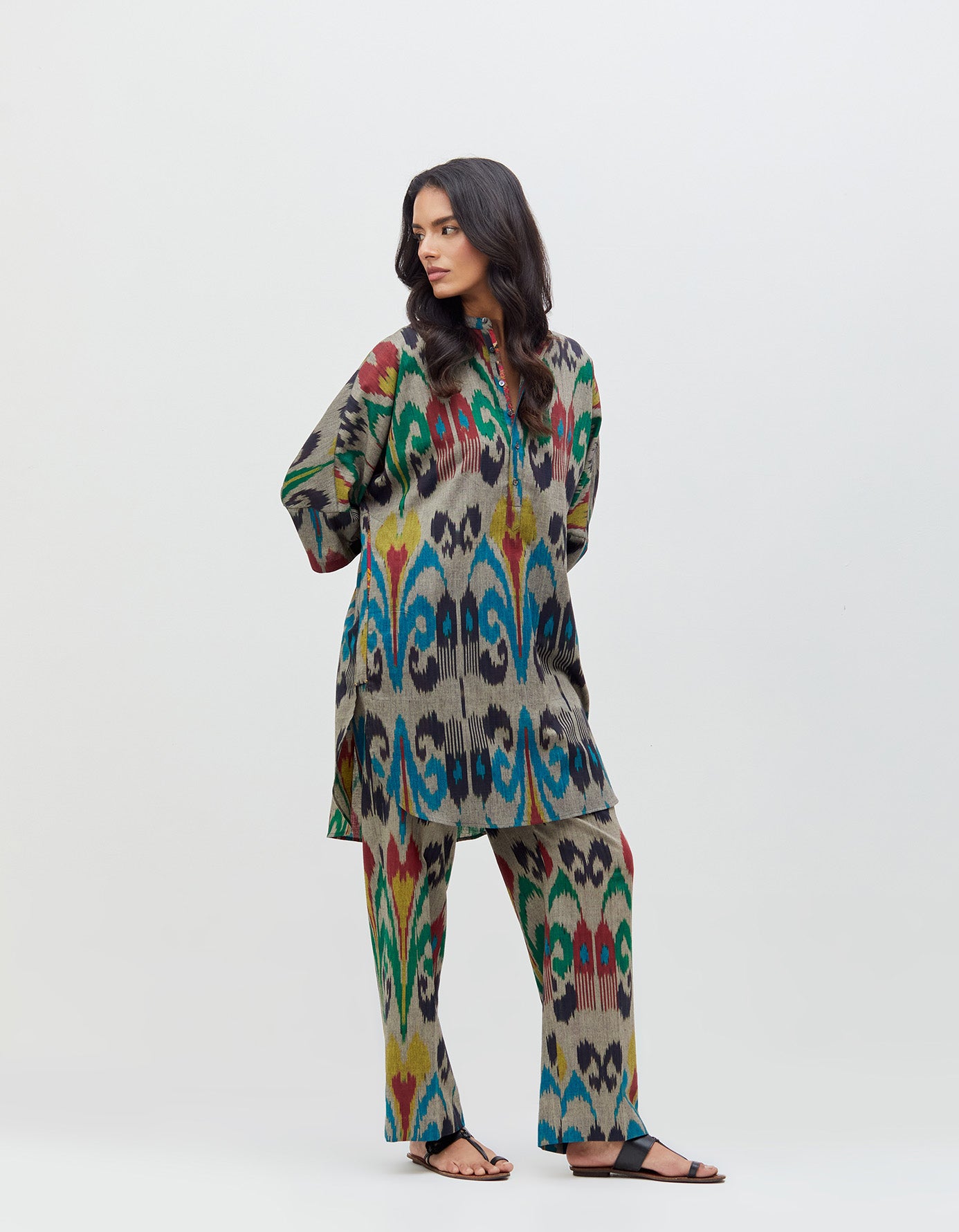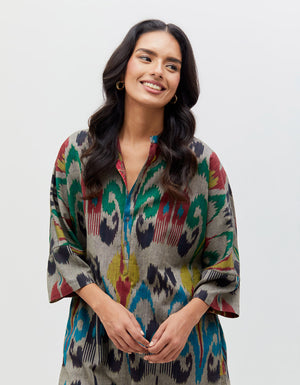 Noor Kurta Silver Peacock Cotton Ikat