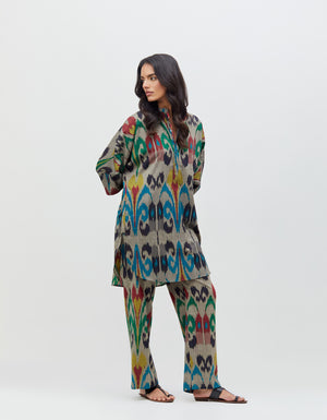 Pyjama Pant Silver Peacock Cotton Ikat