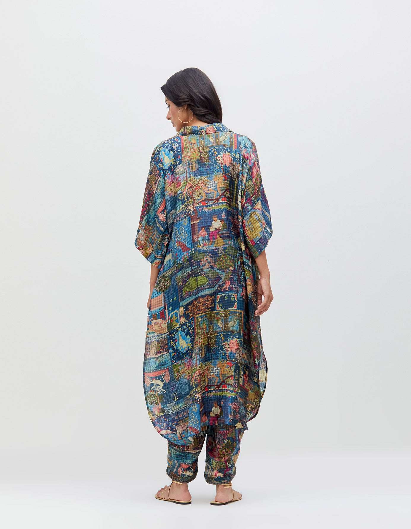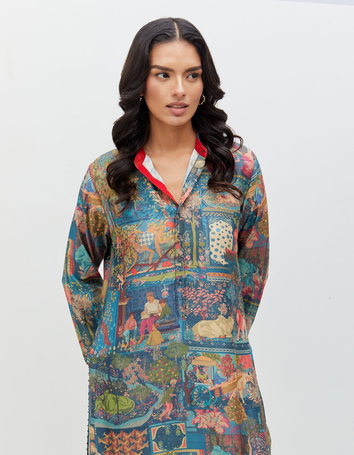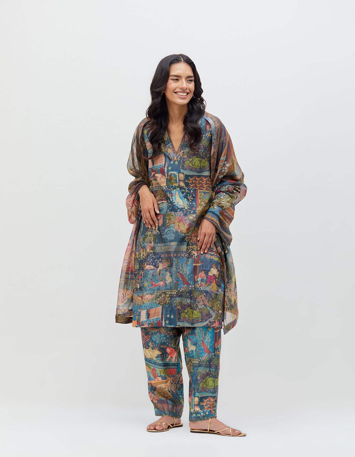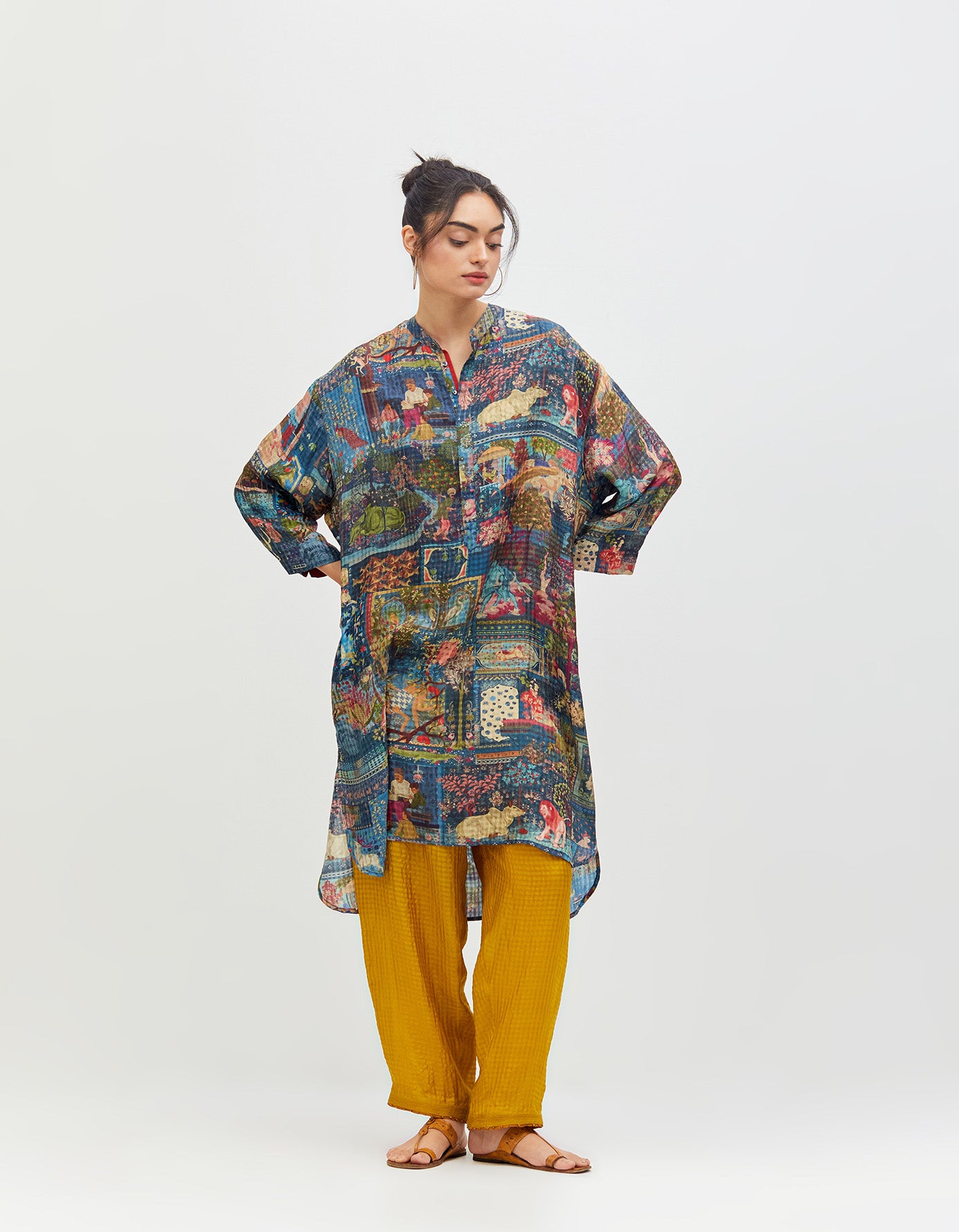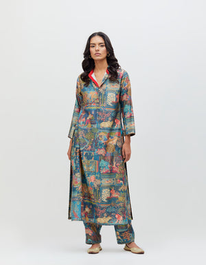 Panchatantra Devi Kurta Teal Muga Satin Silk