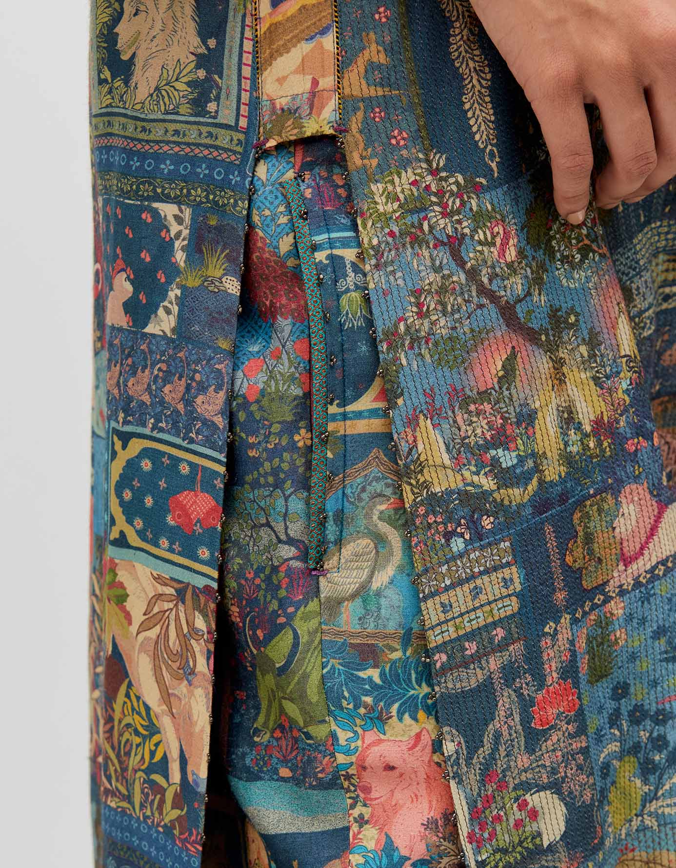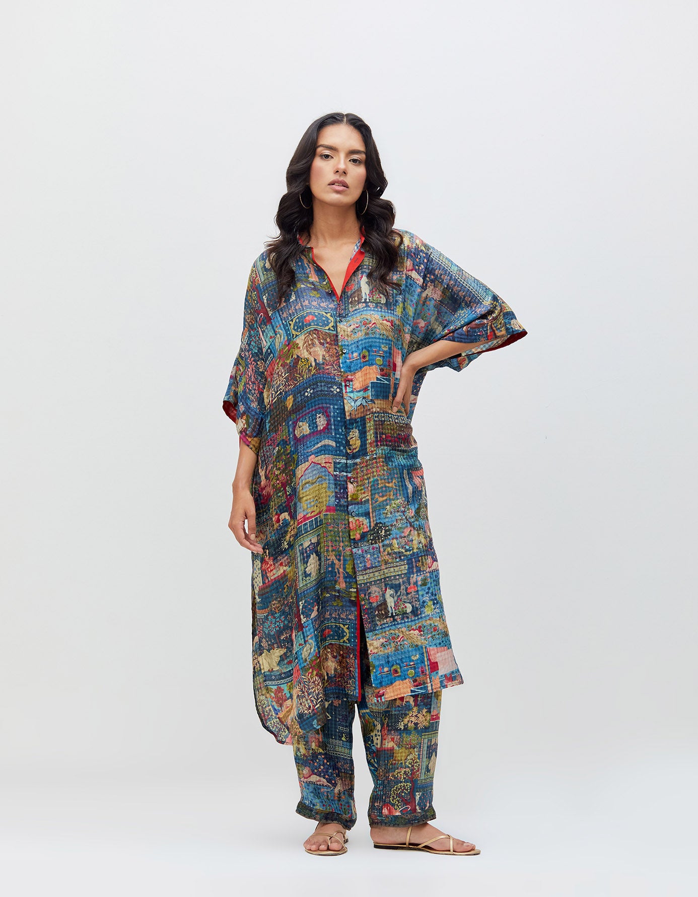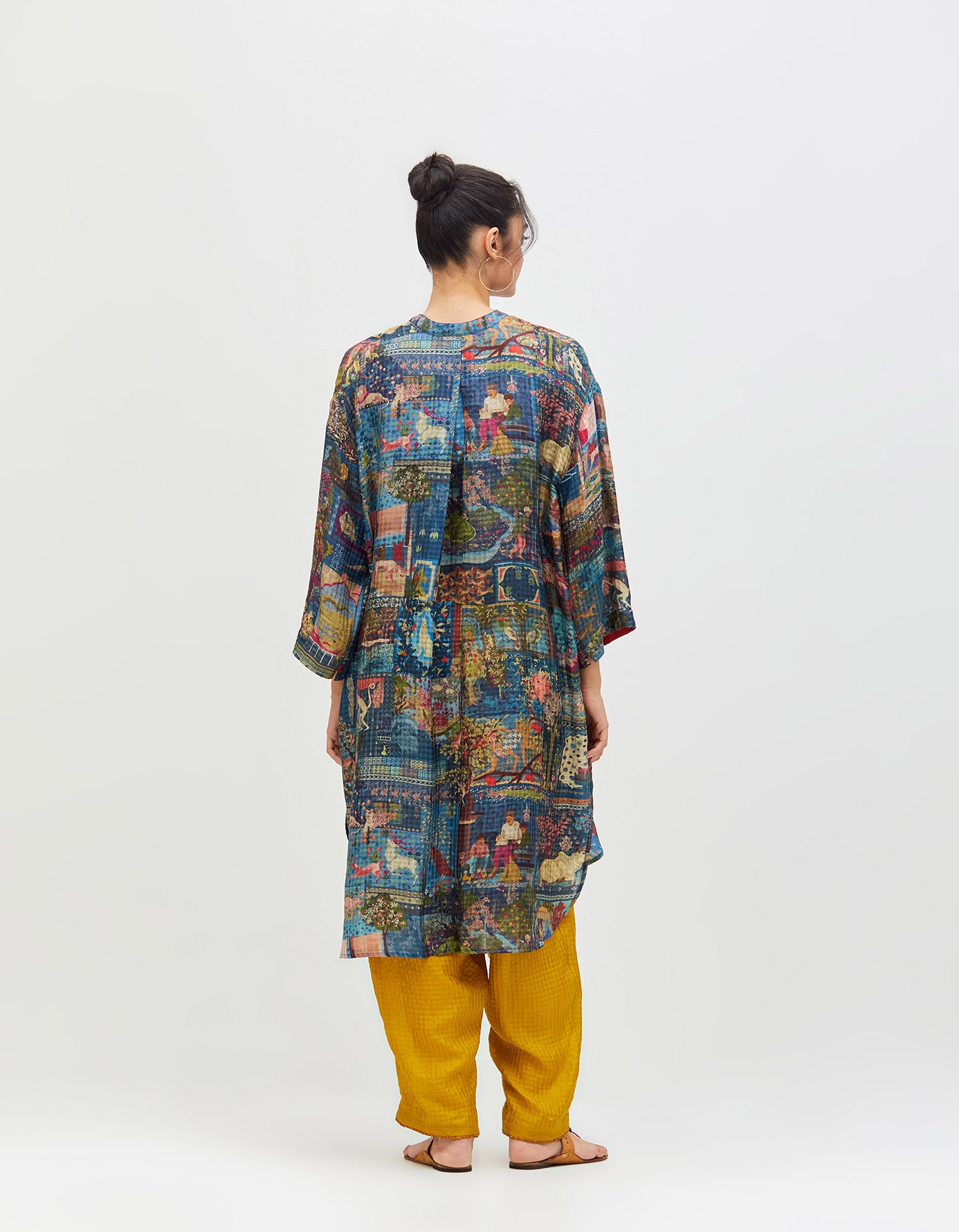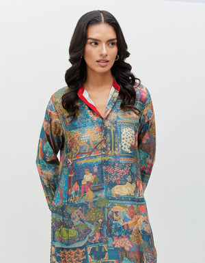 Panchatantra Devi Kurta Teal Muga Satin Silk