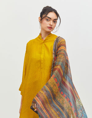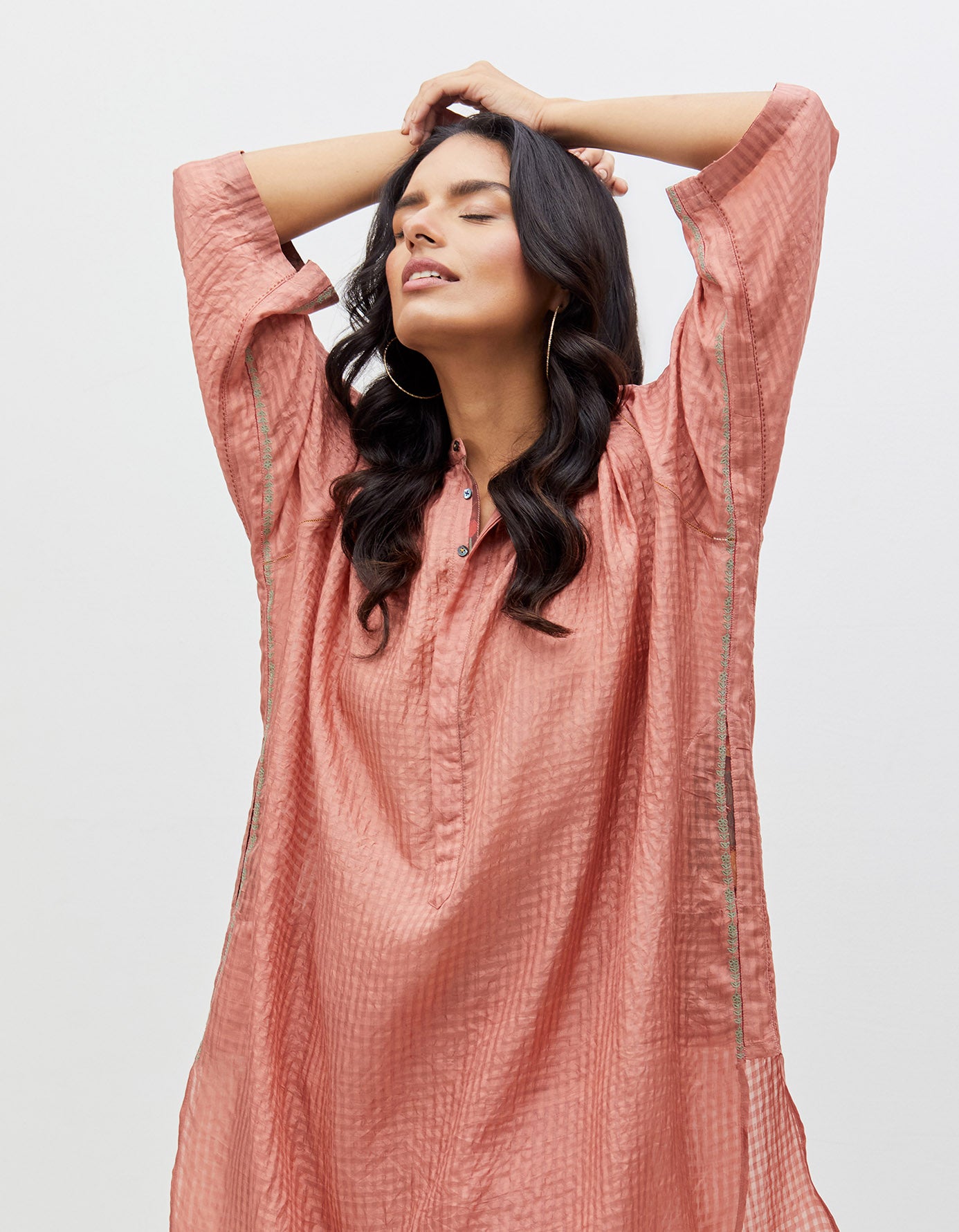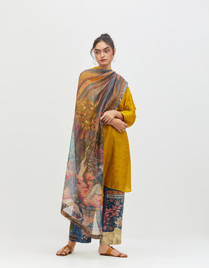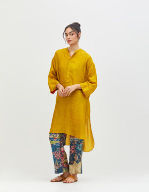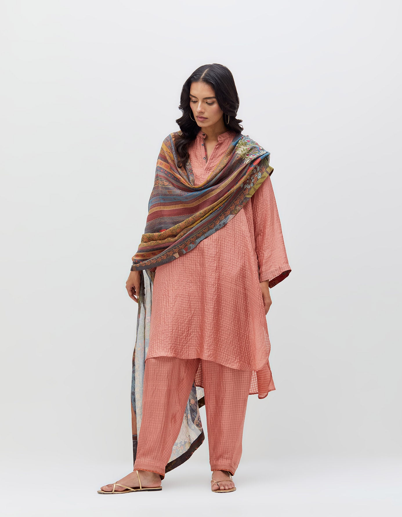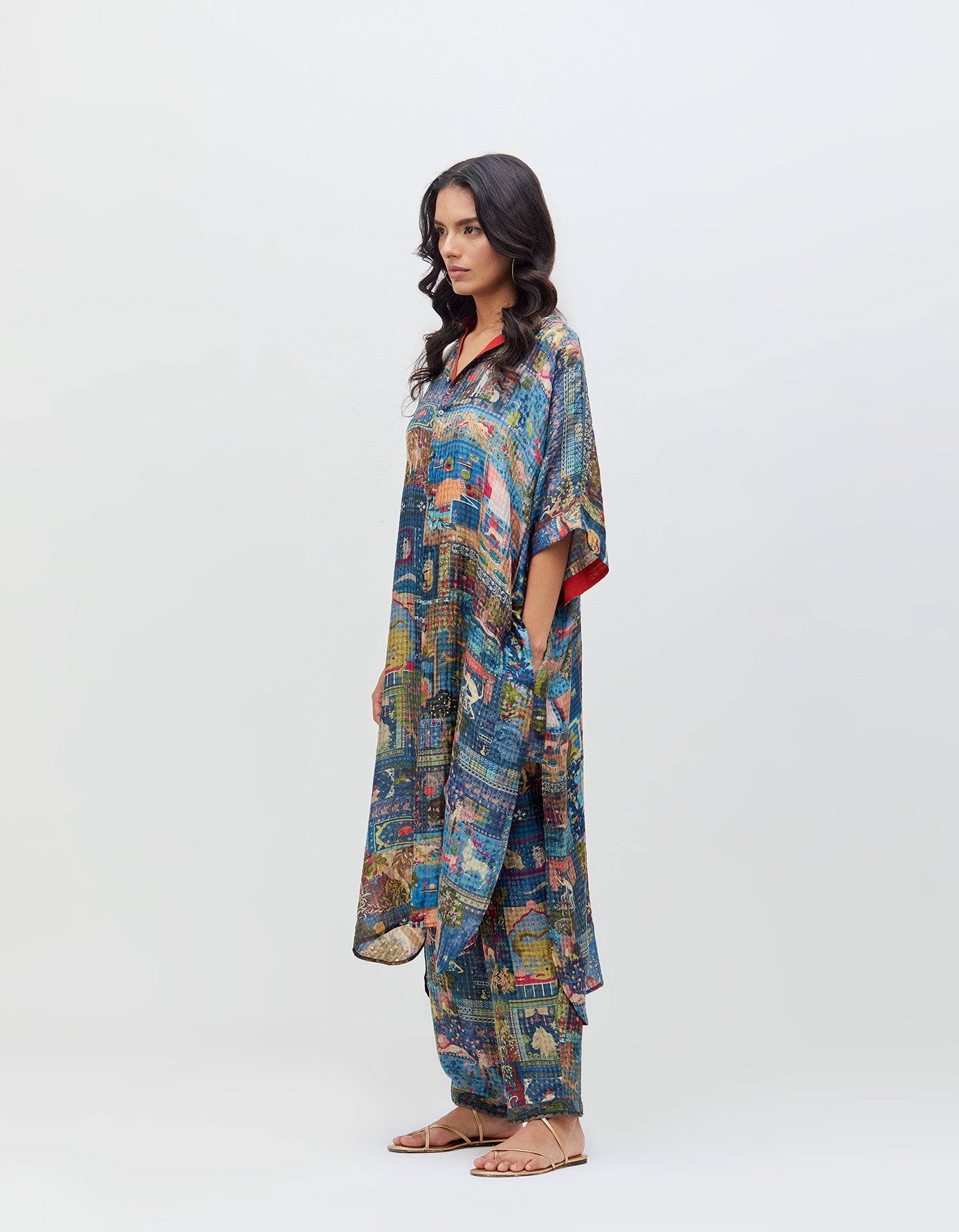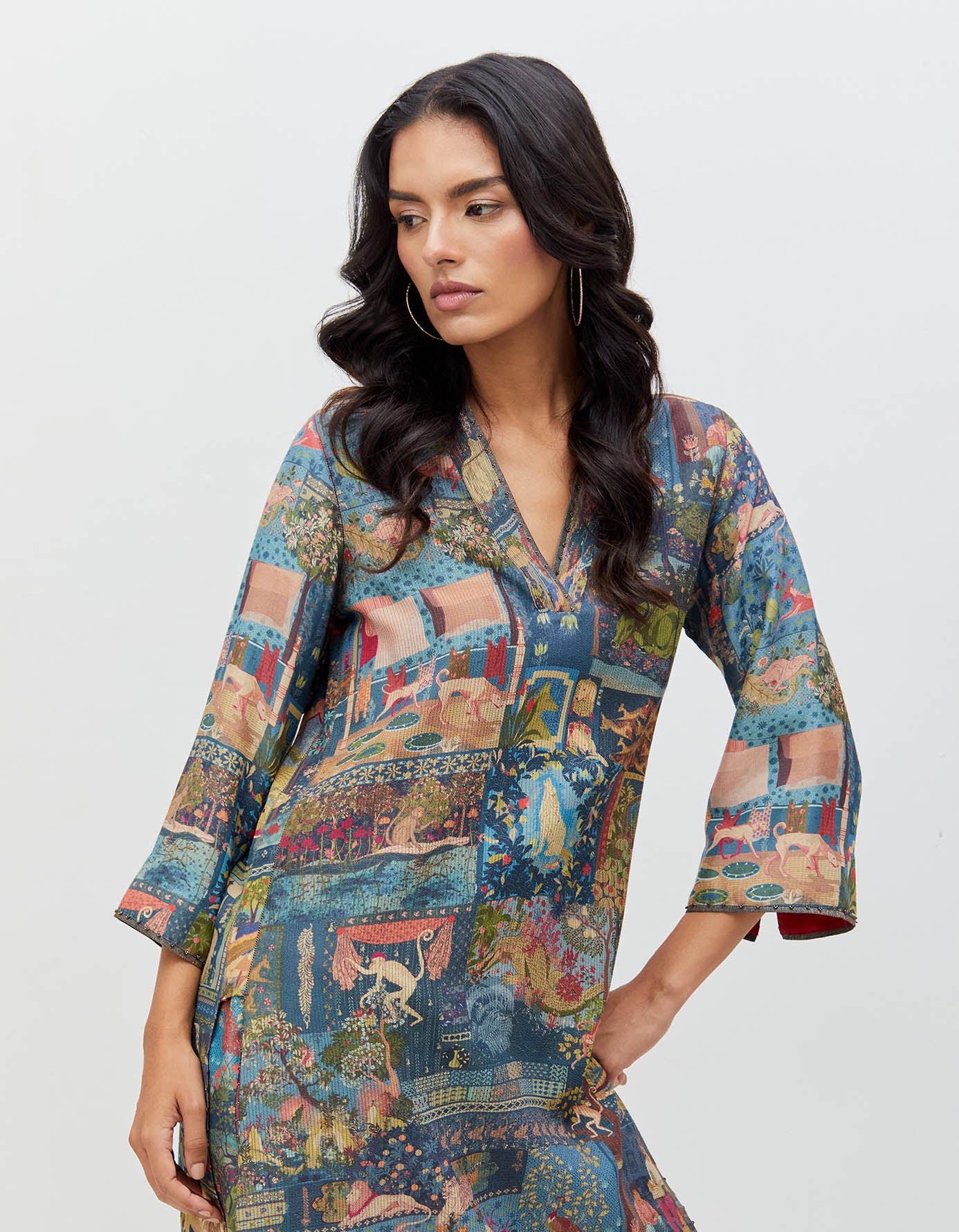 Panchatantra Devi Kurta Teal Muga Satin Silk