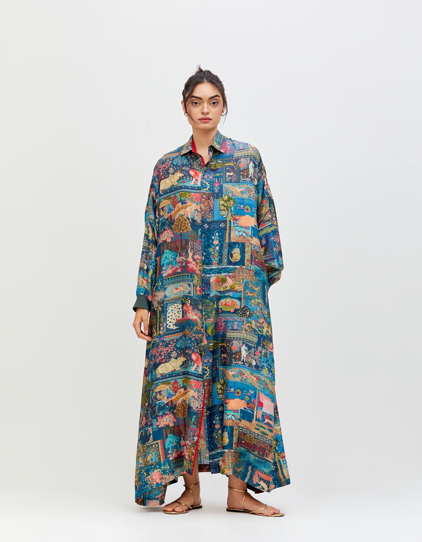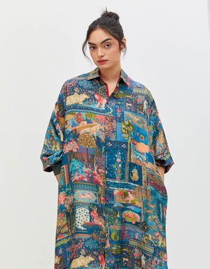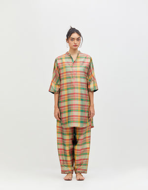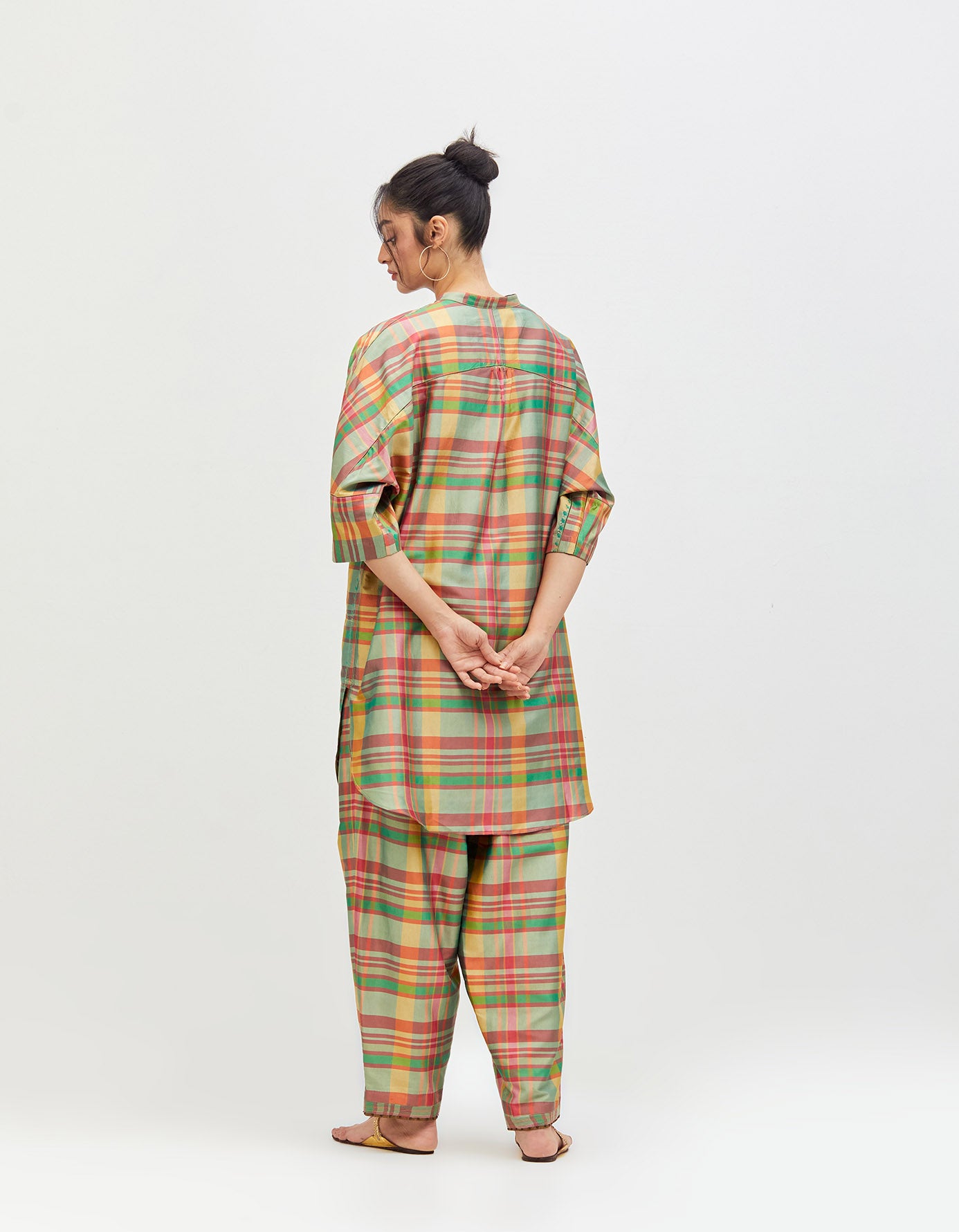 Noor Kurta Tropical Stripes Silk Dupion Check