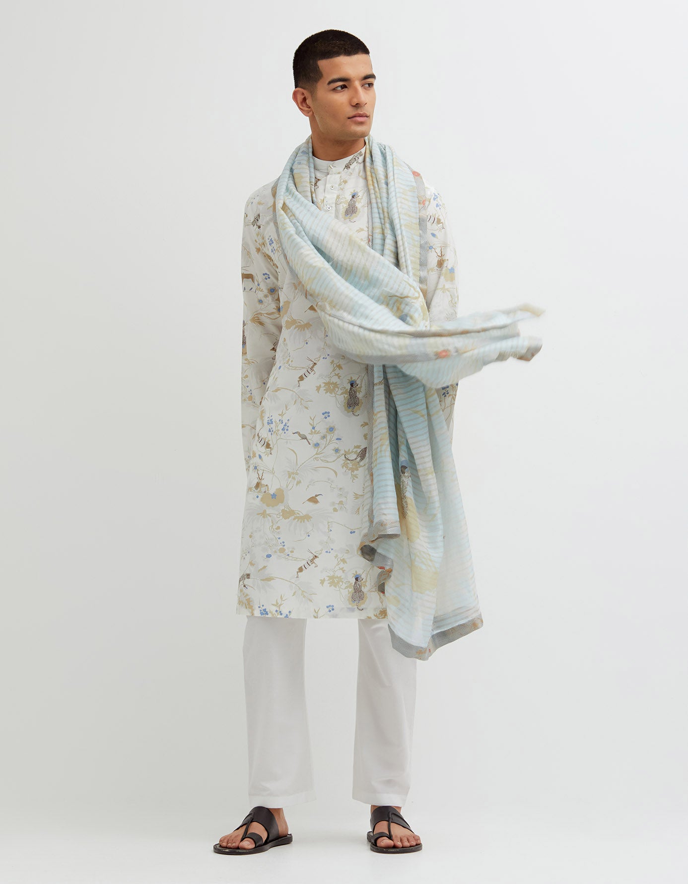Sd Rainforest Dupatta Chanderi Silk Ice Blue