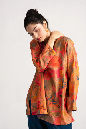 Chandrika Trousers Silk Dupion Check Grapefruit