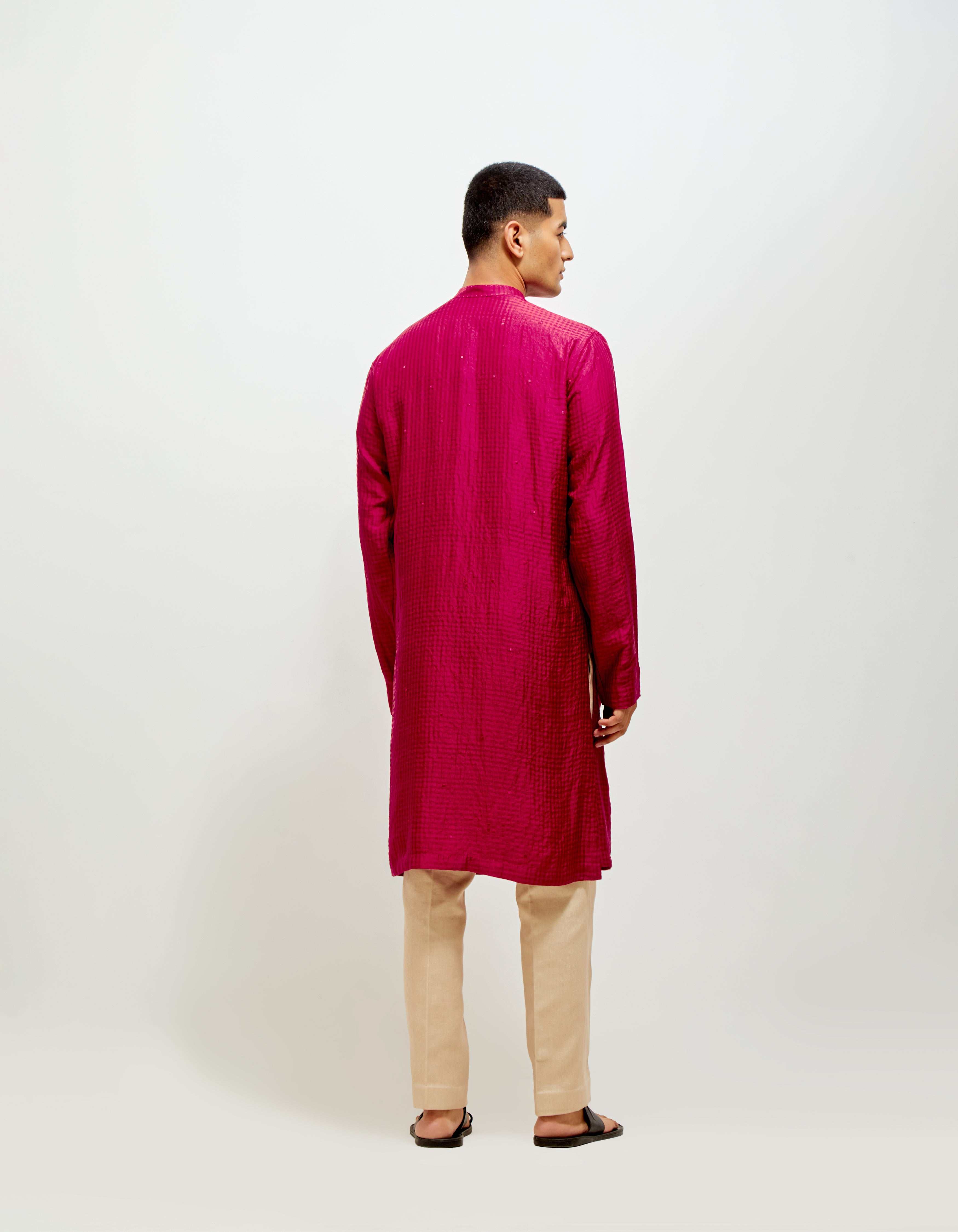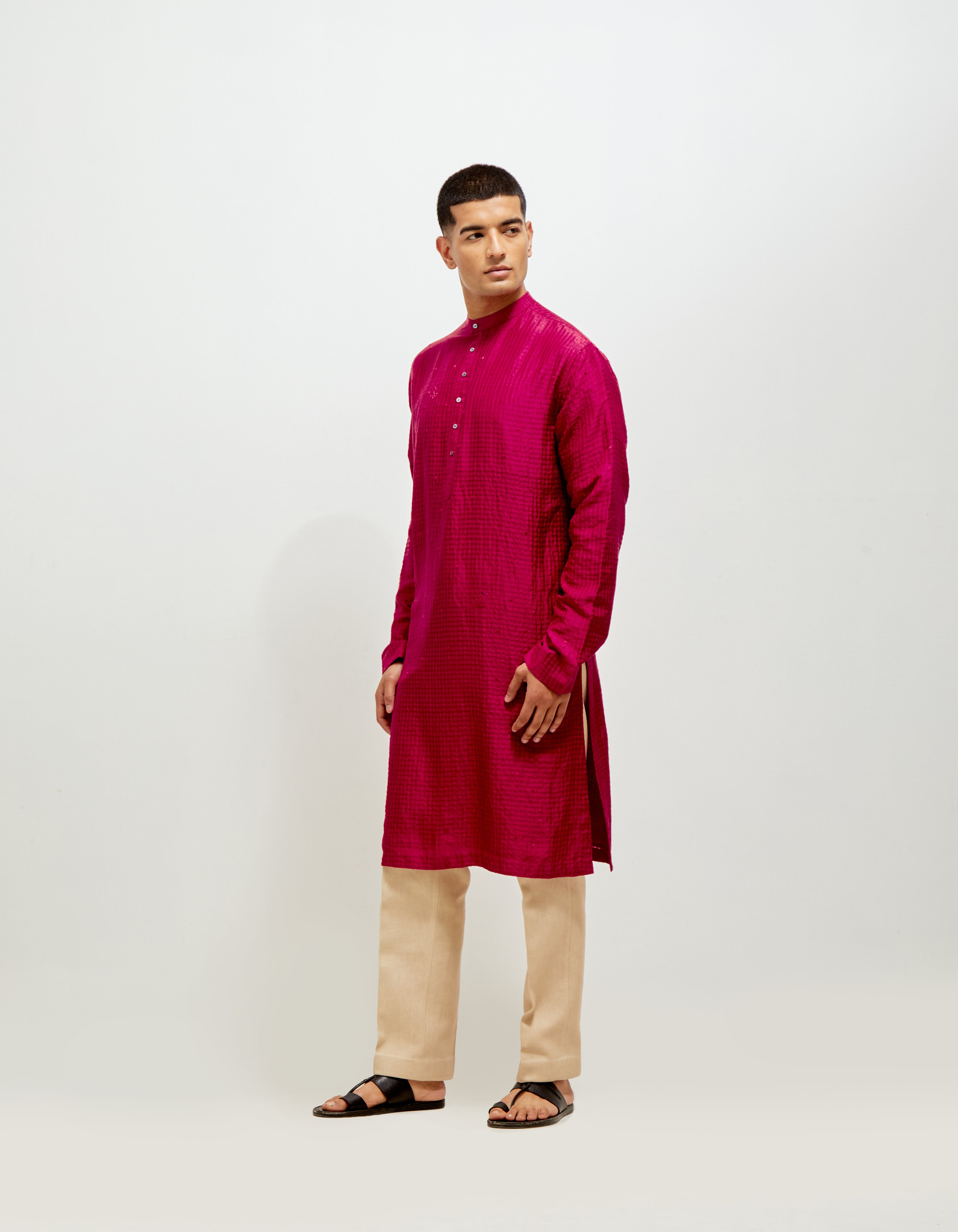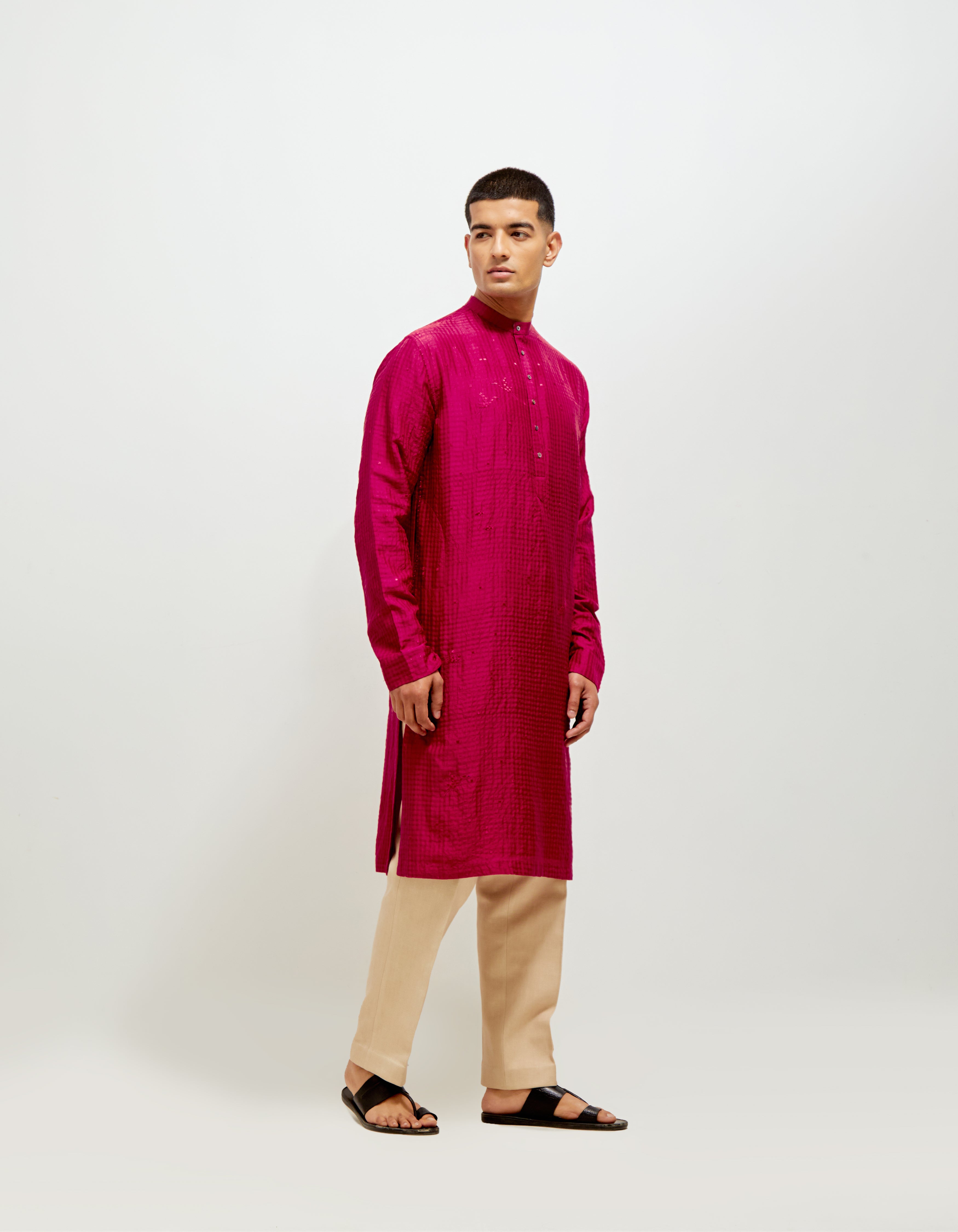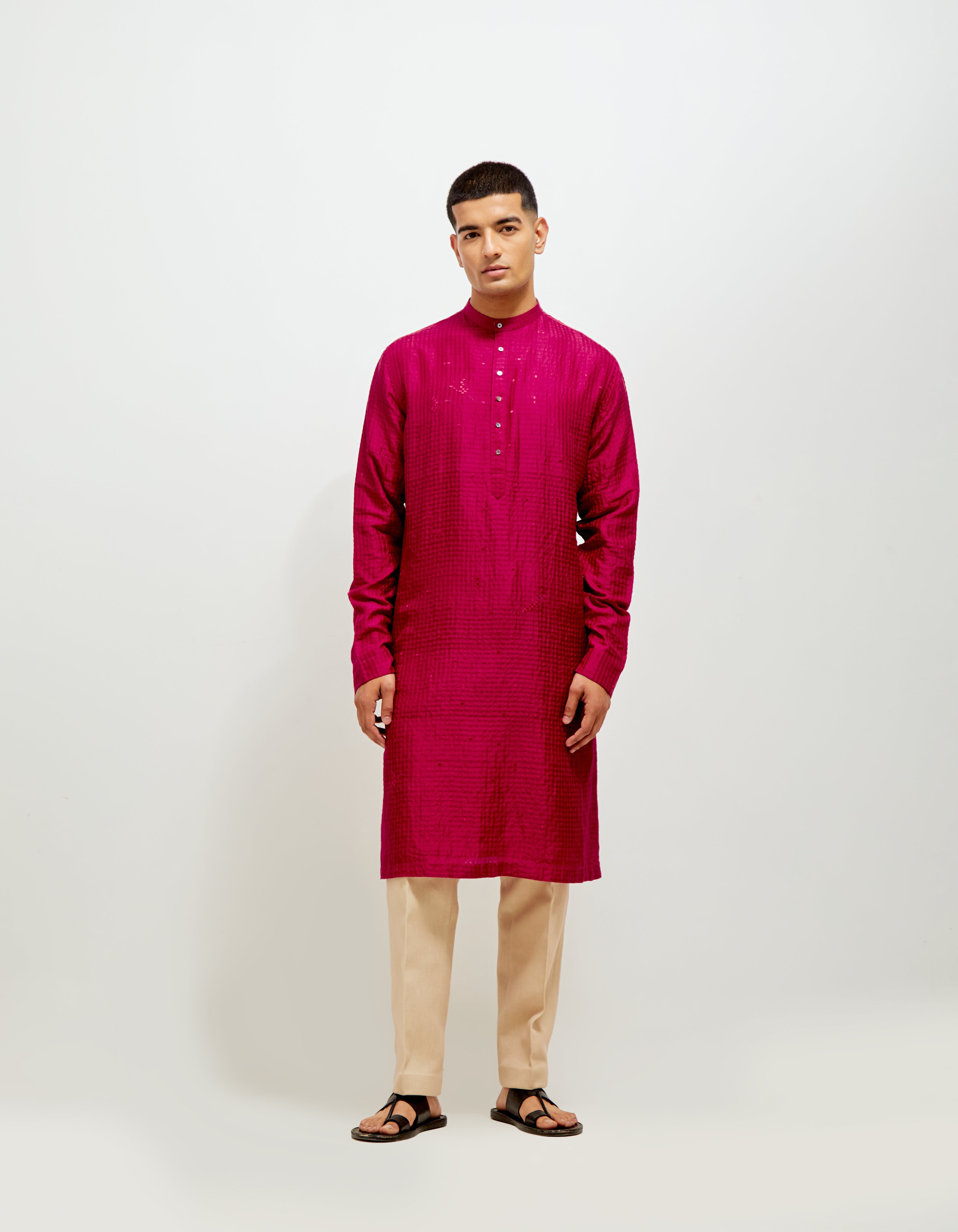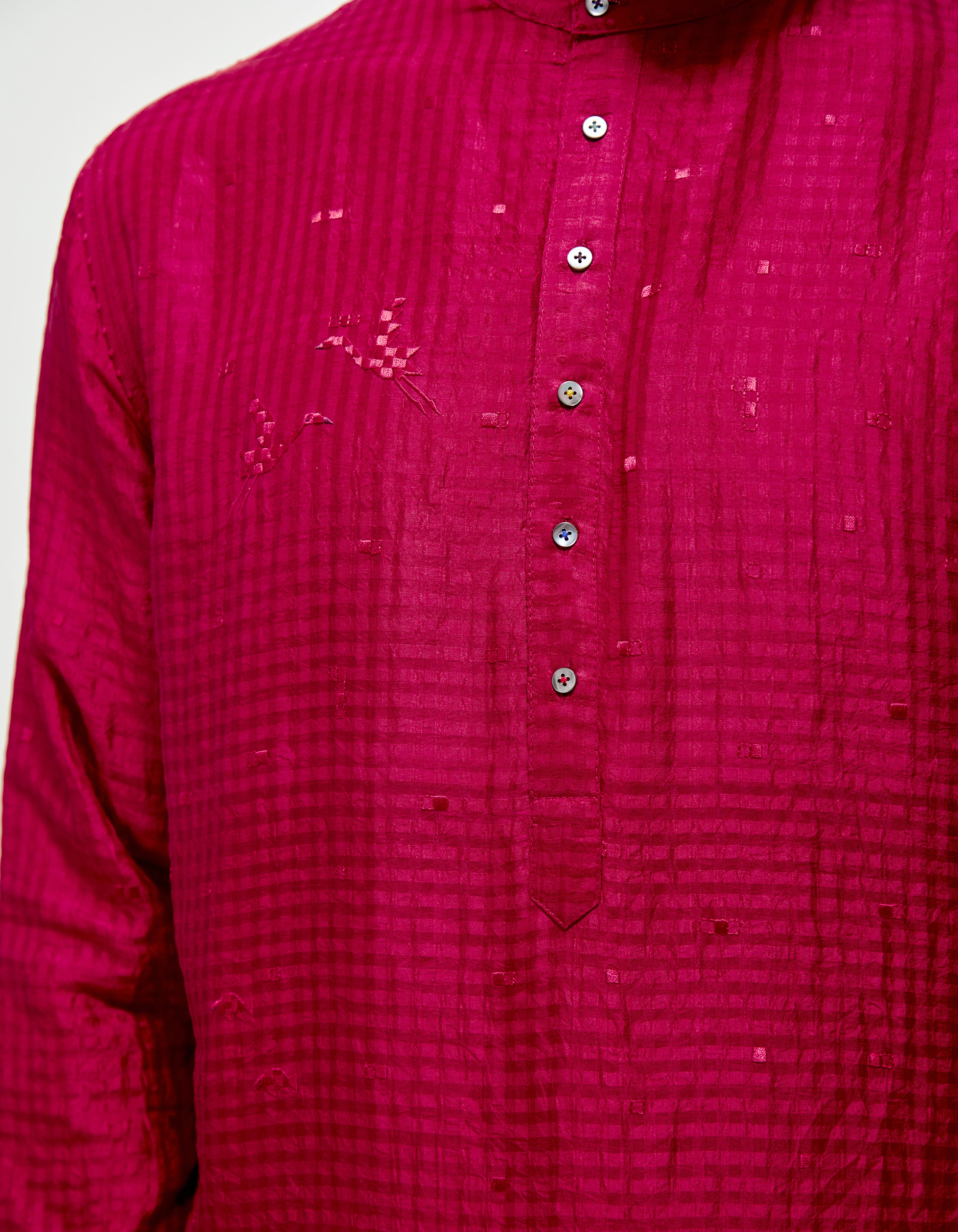 • SD Bade Miyan Kurta Emb Phulkari Burgandy Silk Check