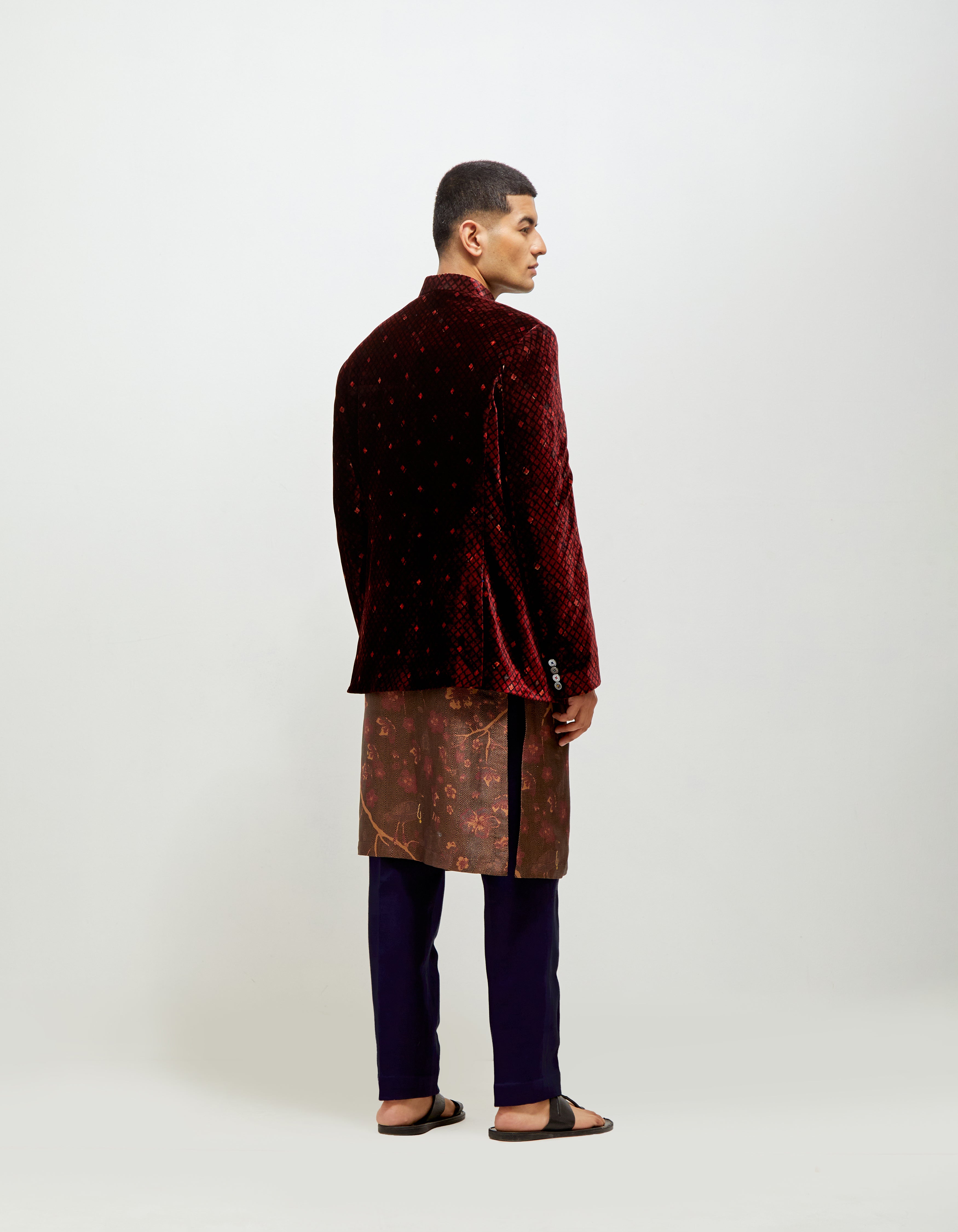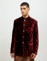 • SD Bandhgala Burgandy Ajarakh Sik Velvet