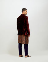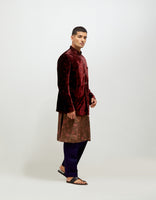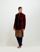 SD Bandhgala Burgandy Ajarakh Sik Velvet
