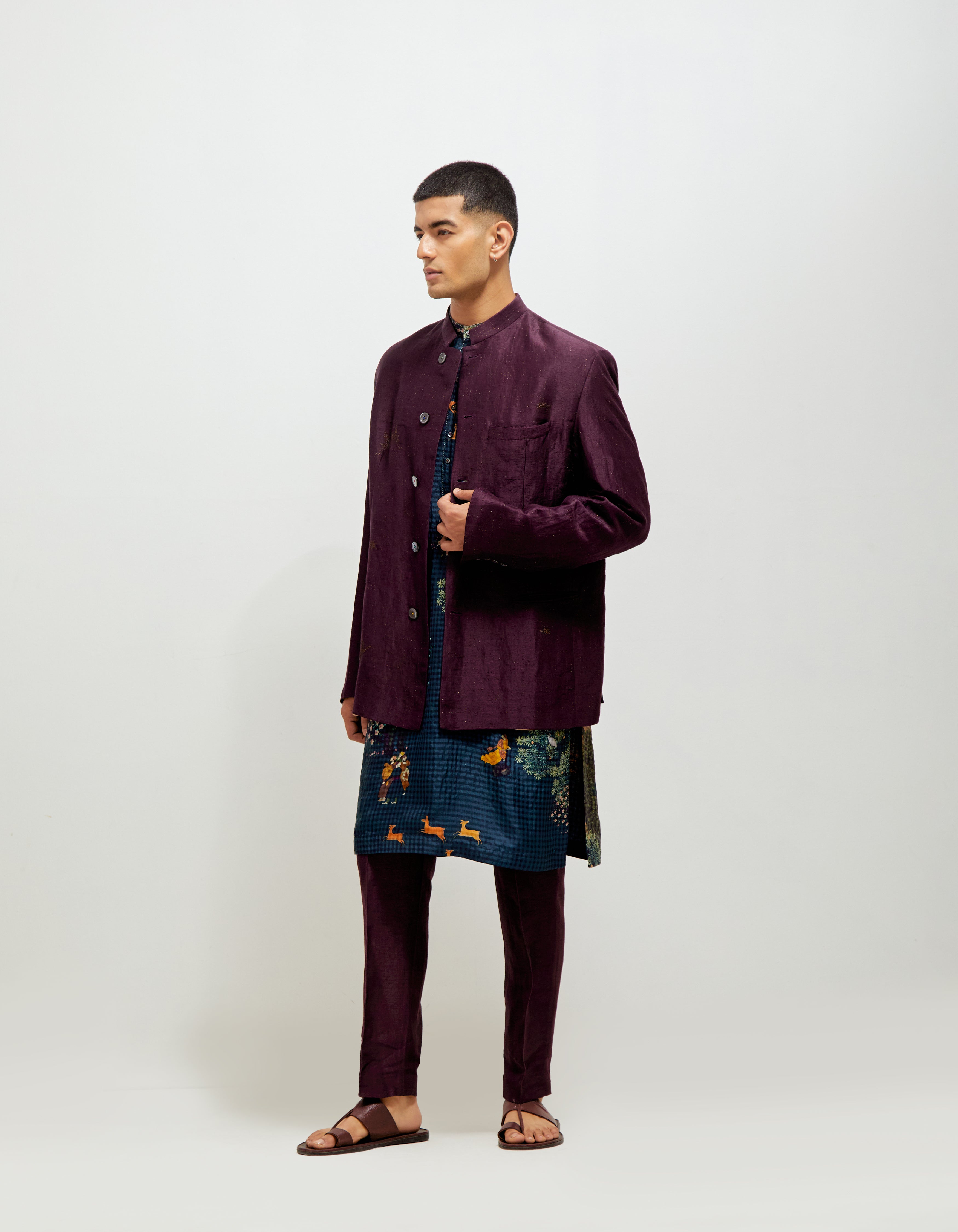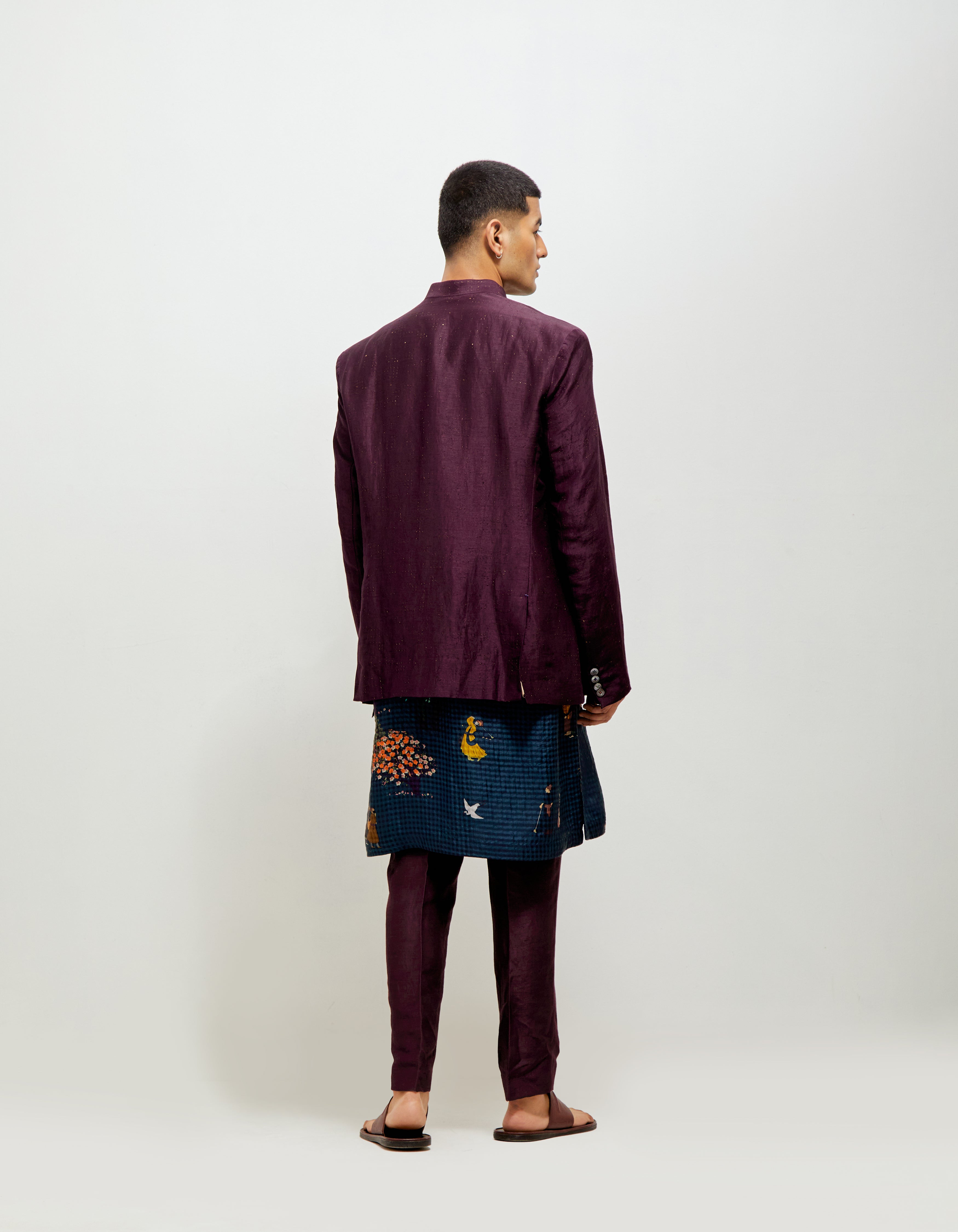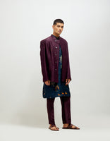 • SD Bandhgala Emb Stippling Black Berry Satin Linen