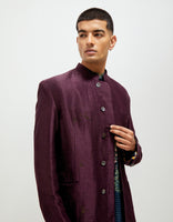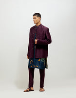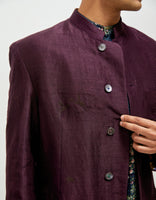 SD Bandhgala Emb Stippling Black Berry Satin Linen