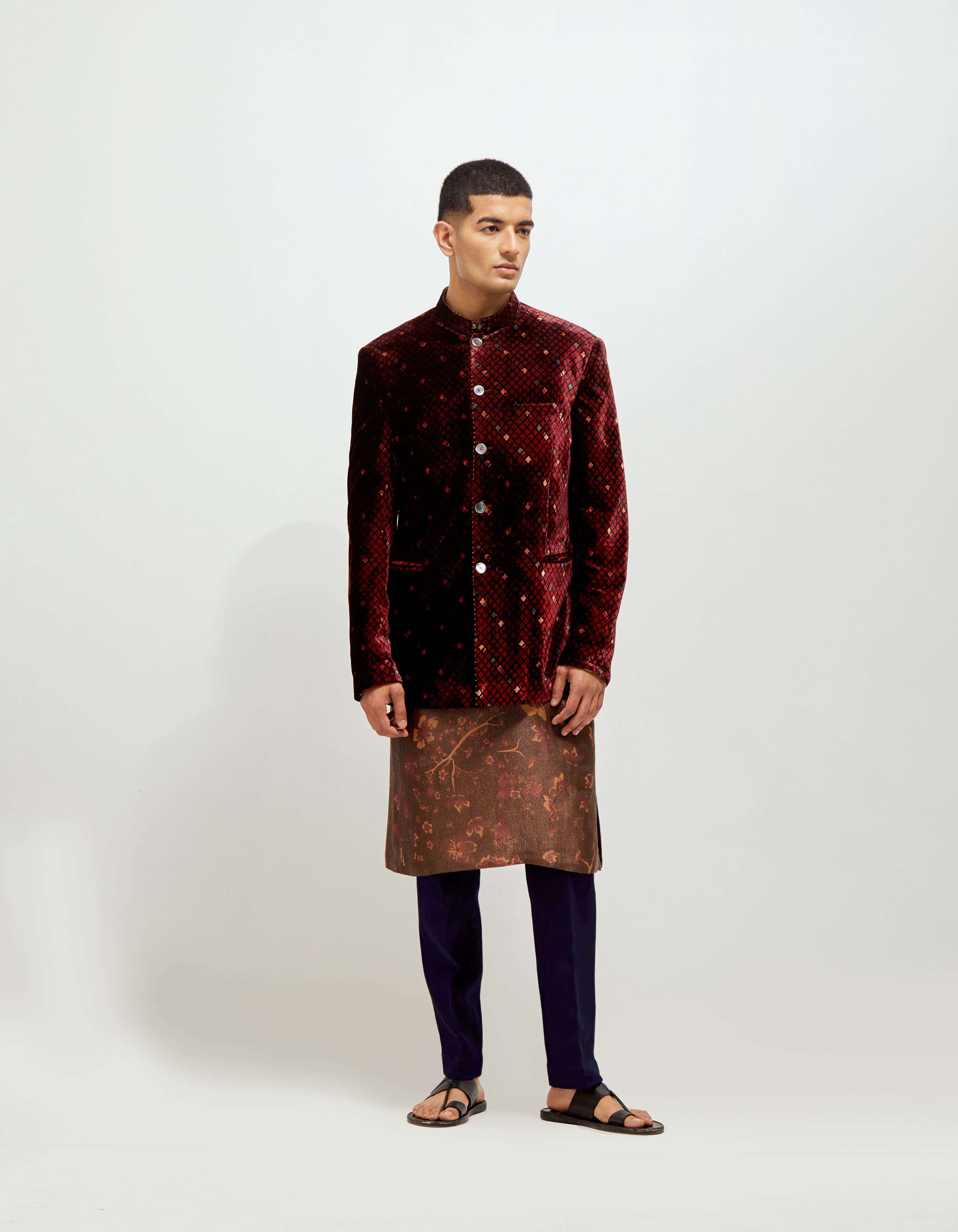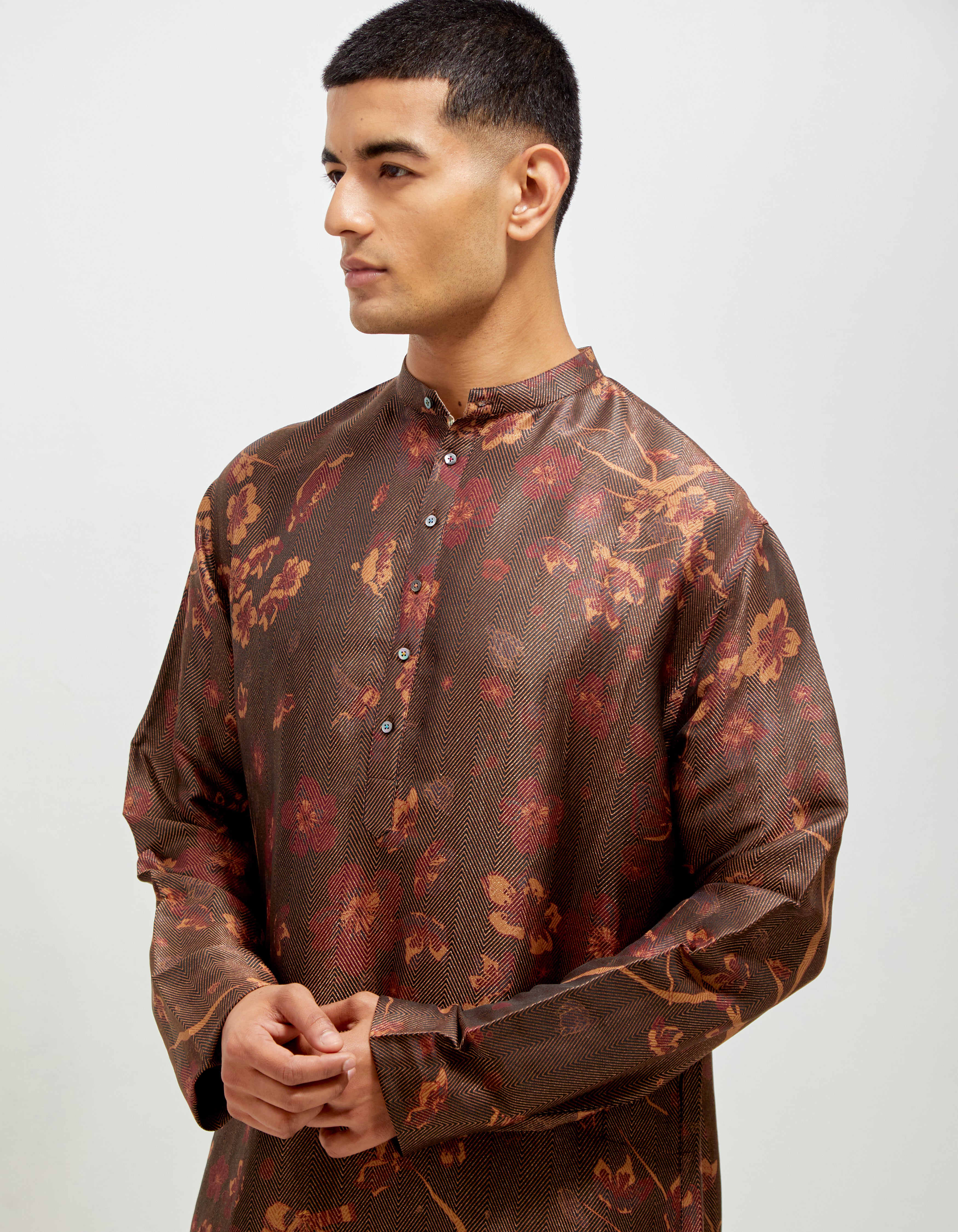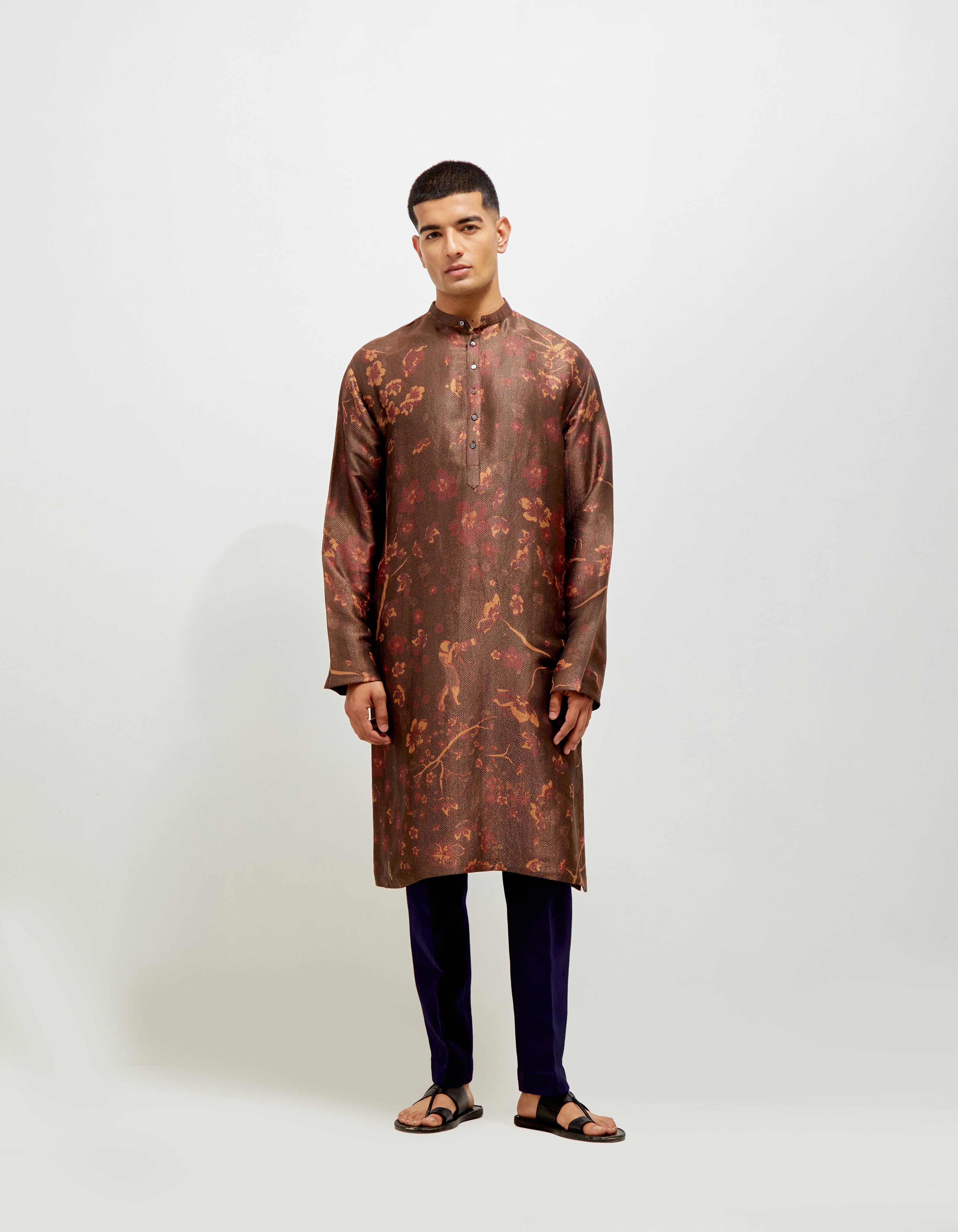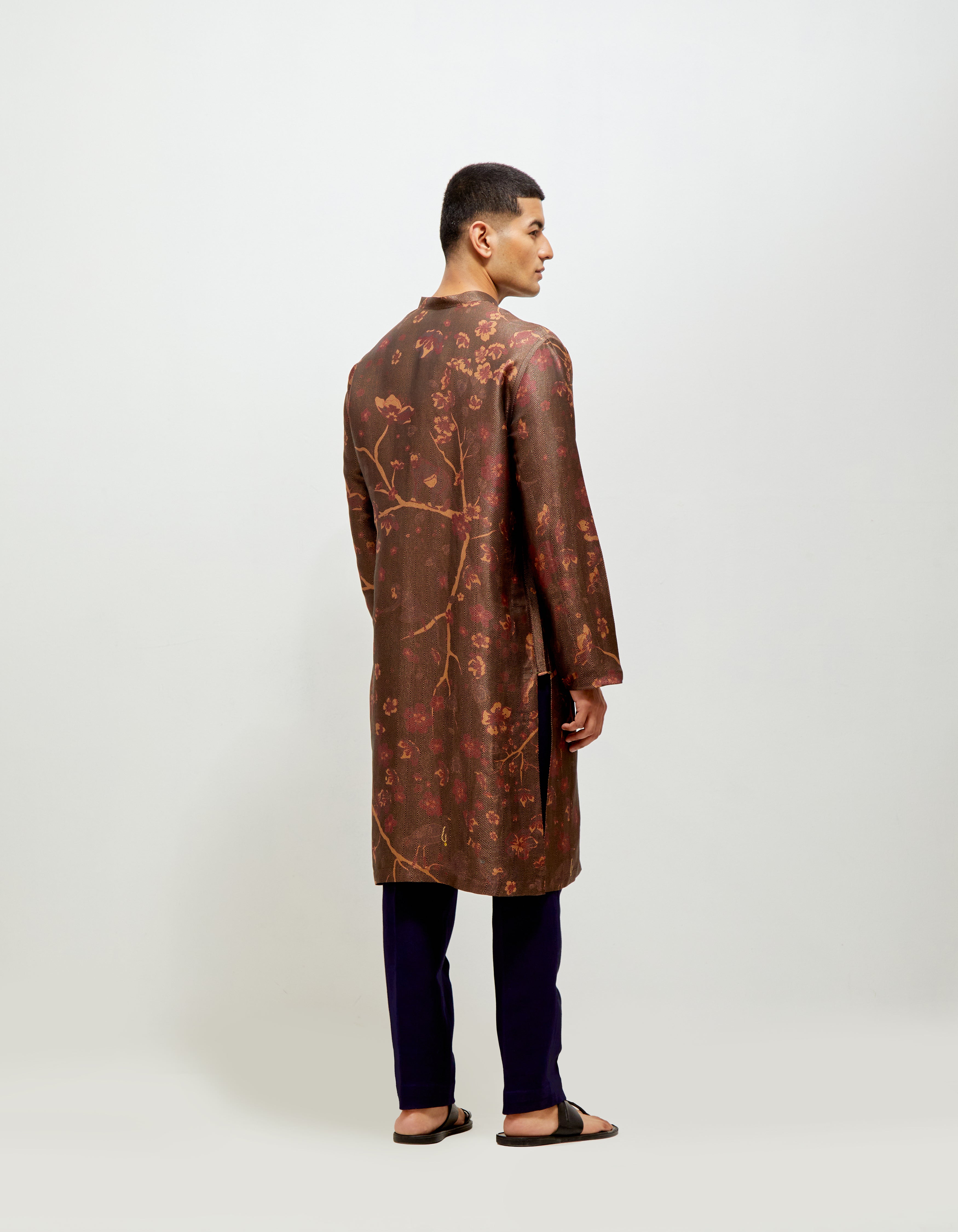 • SD Forest Blossom Bade Miyan Kurta D-Green Sik Brocade