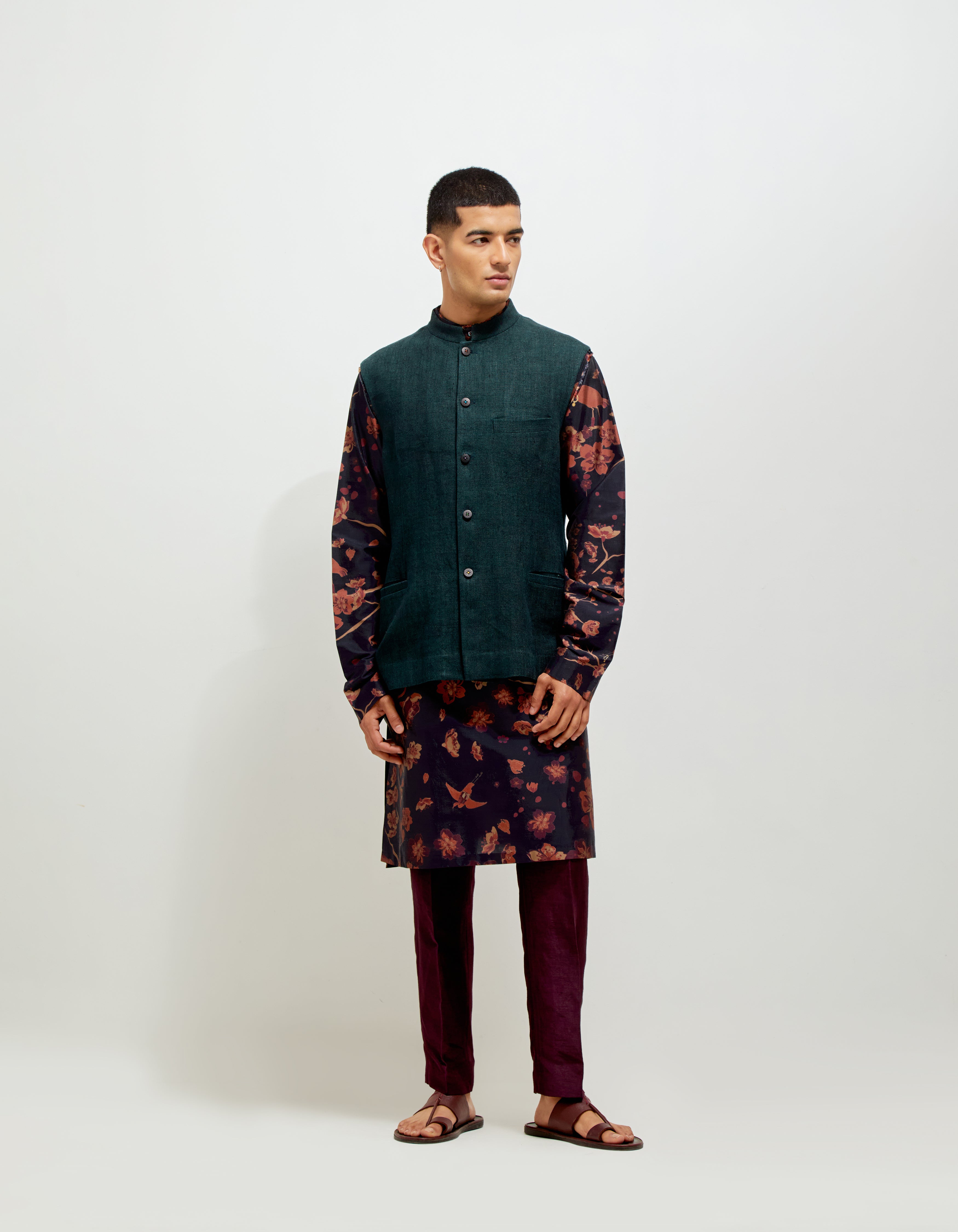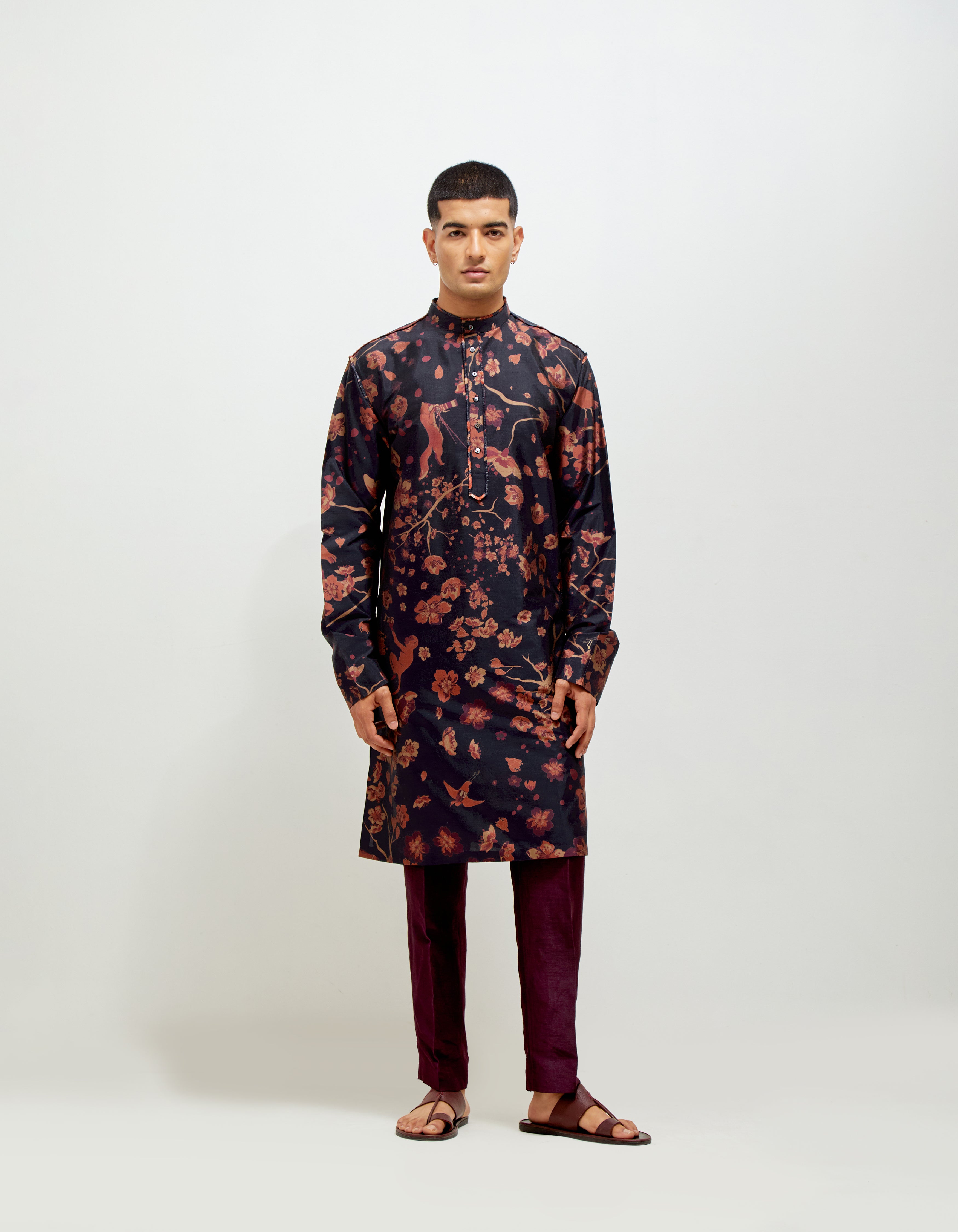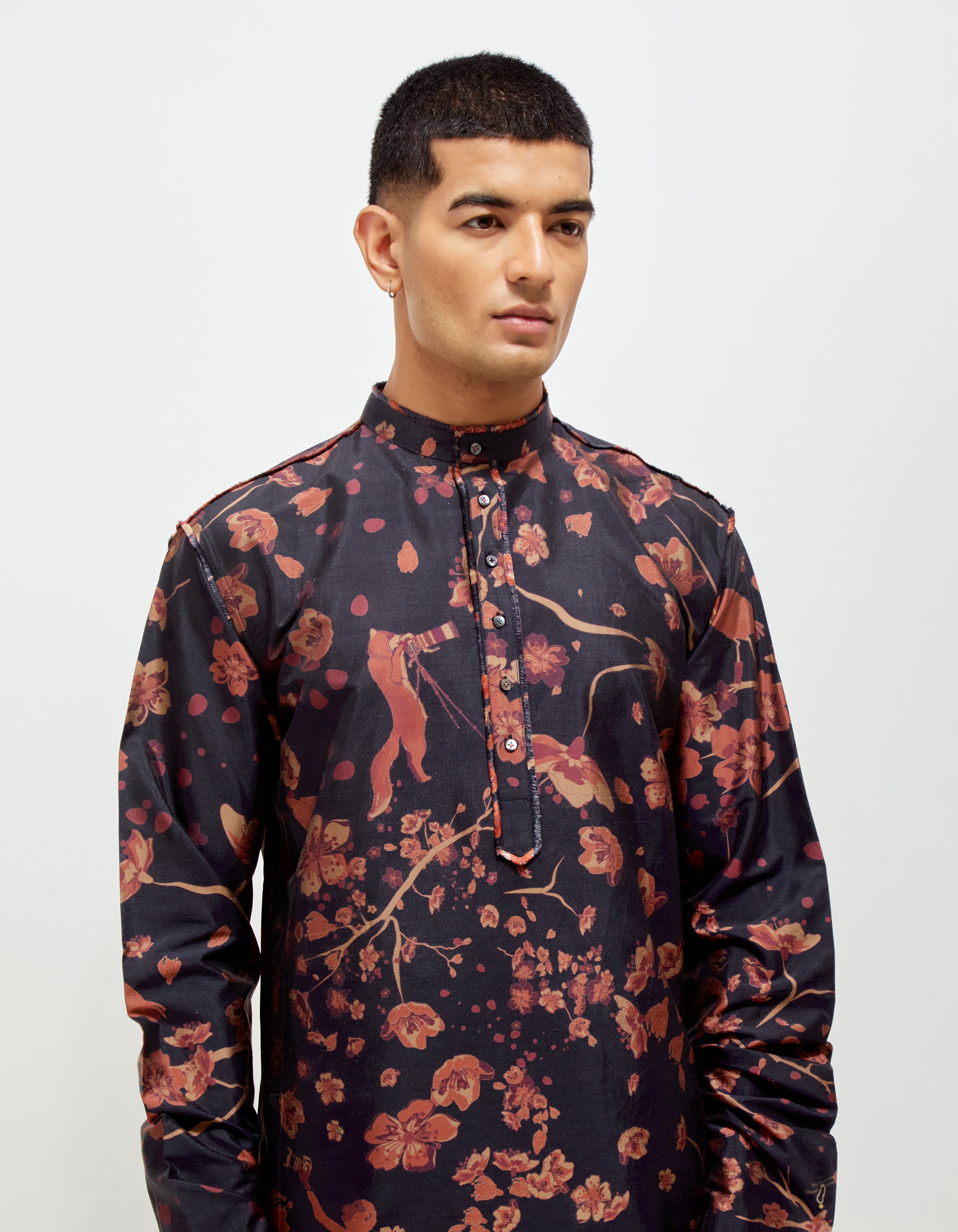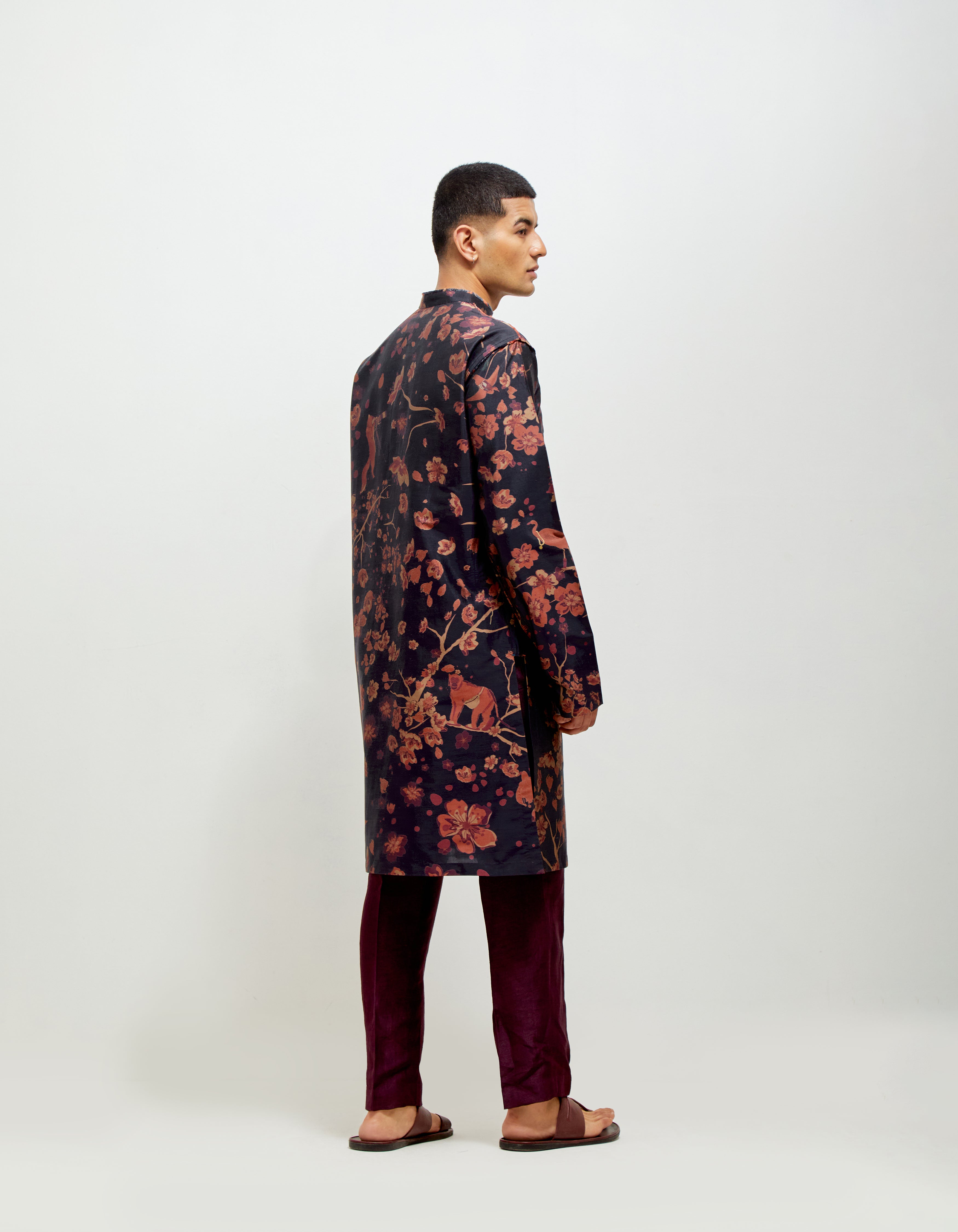 • SD Forest Blossom Bade Miyan Kurta Orange Navy Silk Check