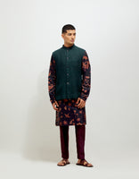 SD Forest Blossom Bade Miyan Kurta Orange Navy Silk Check
