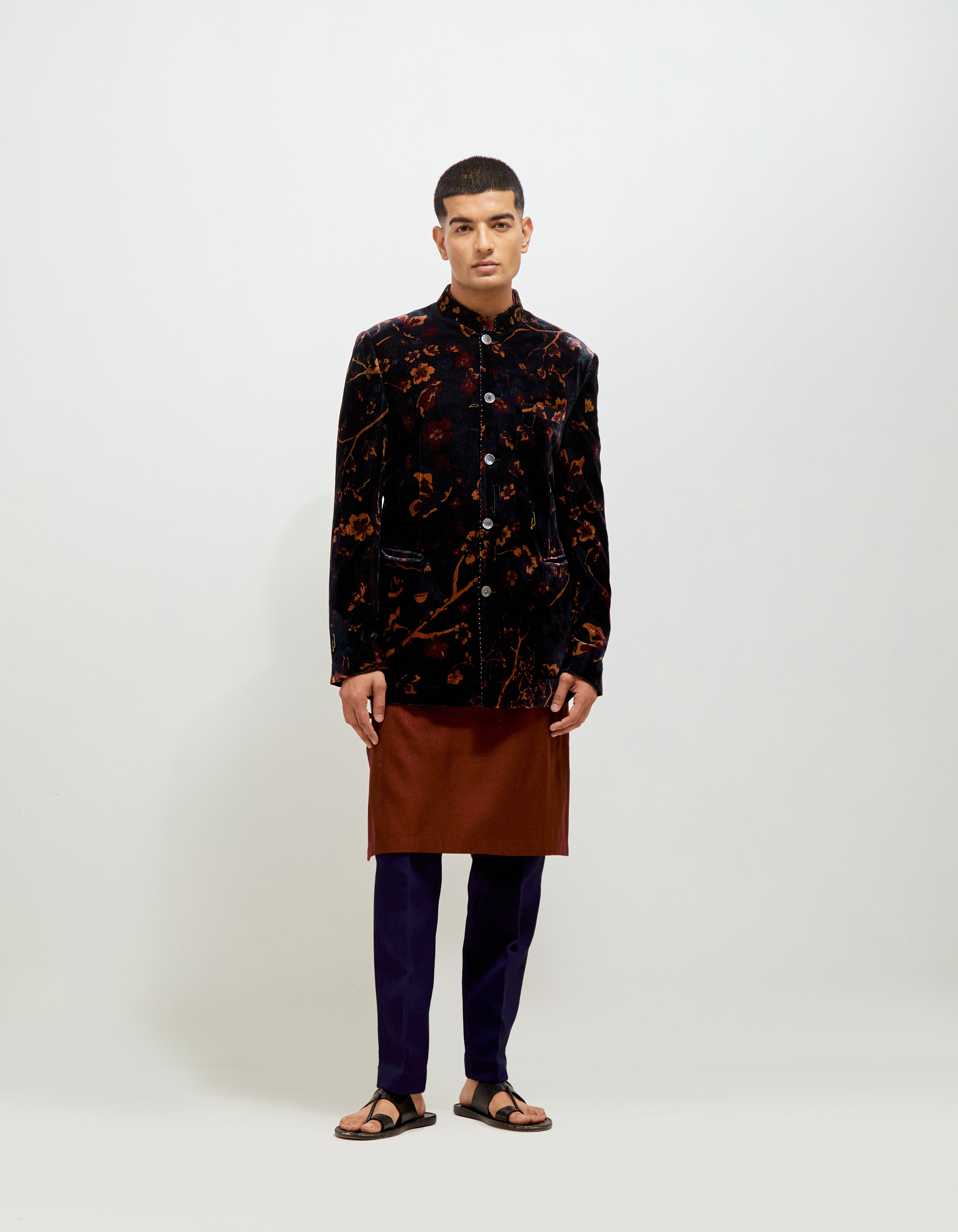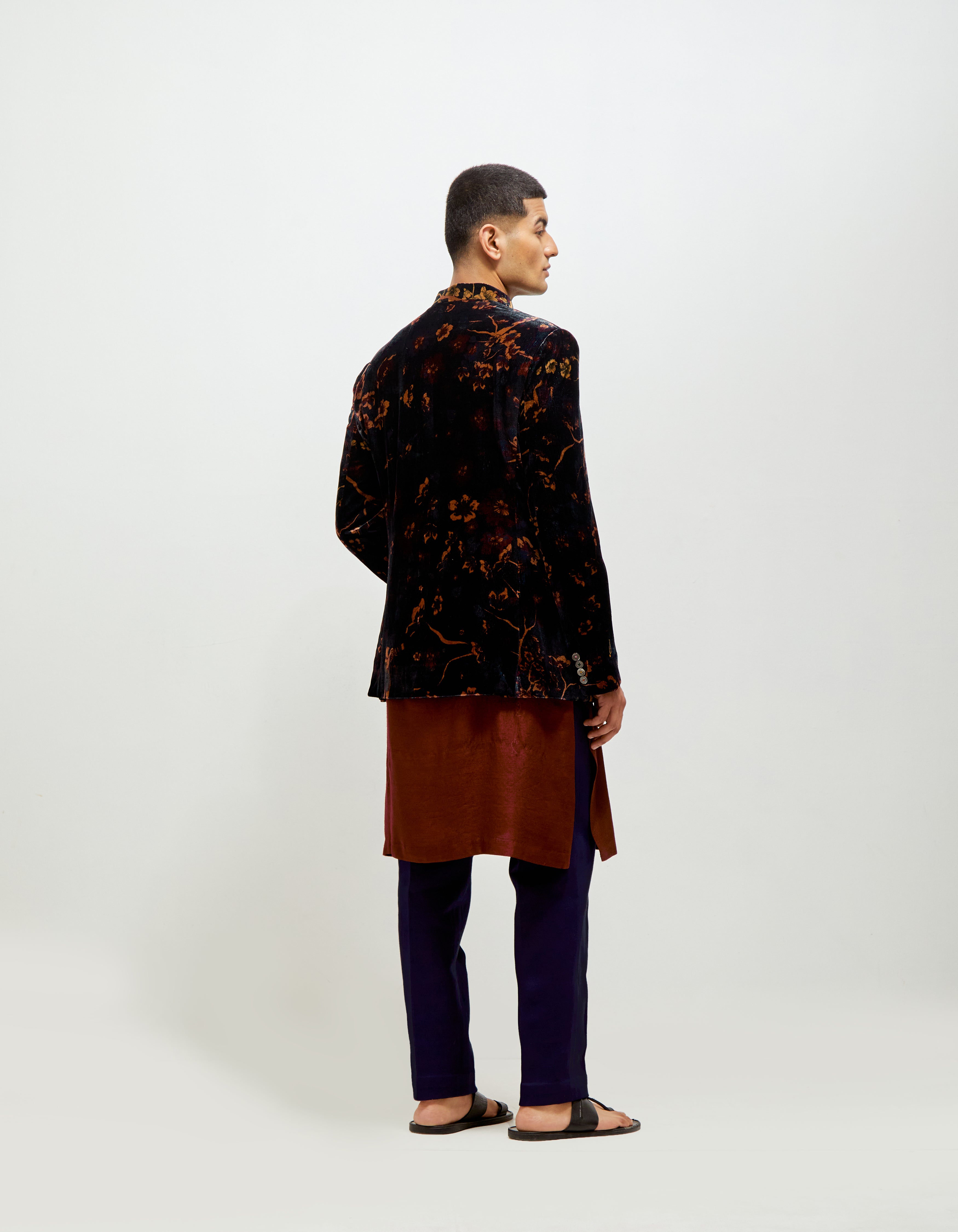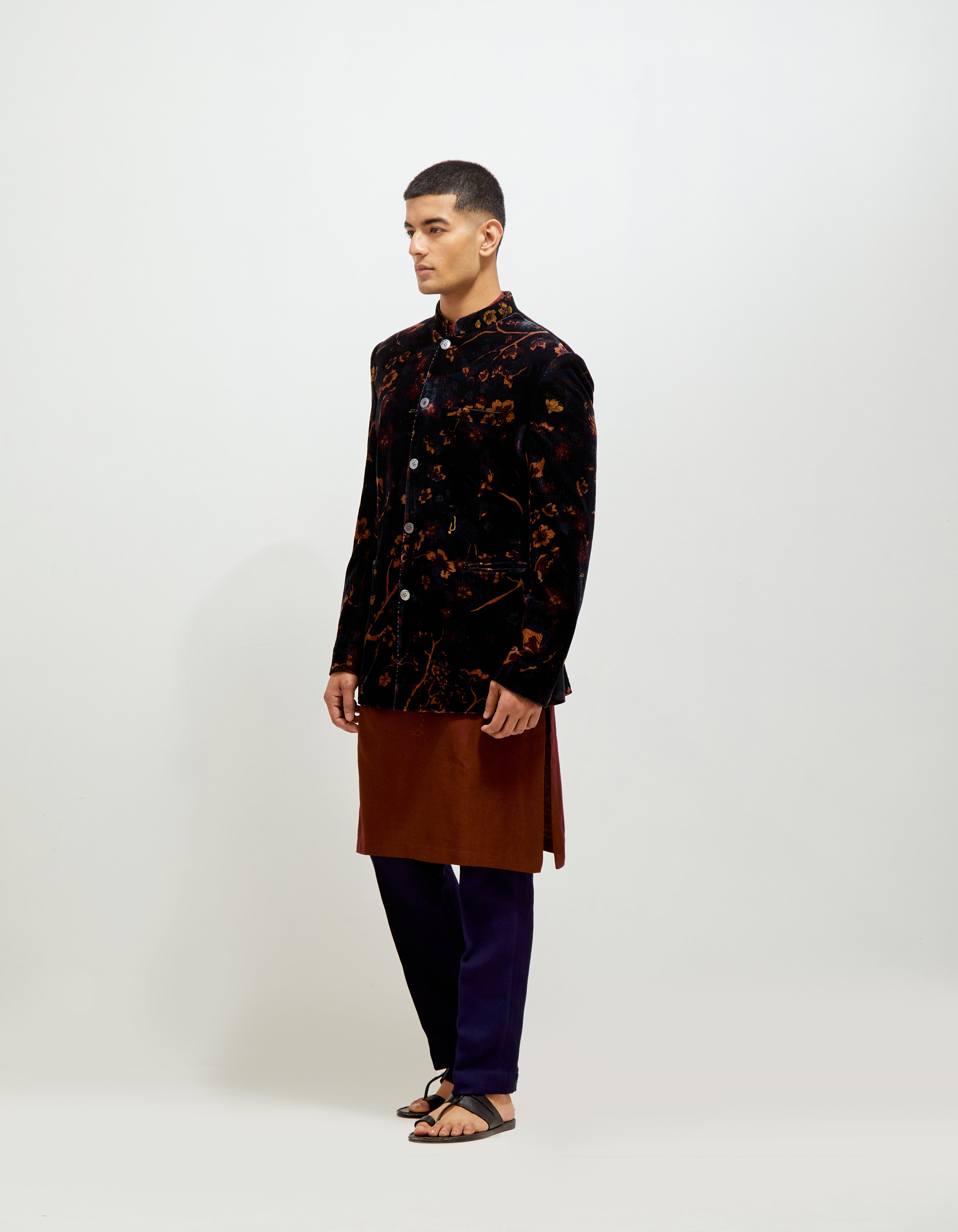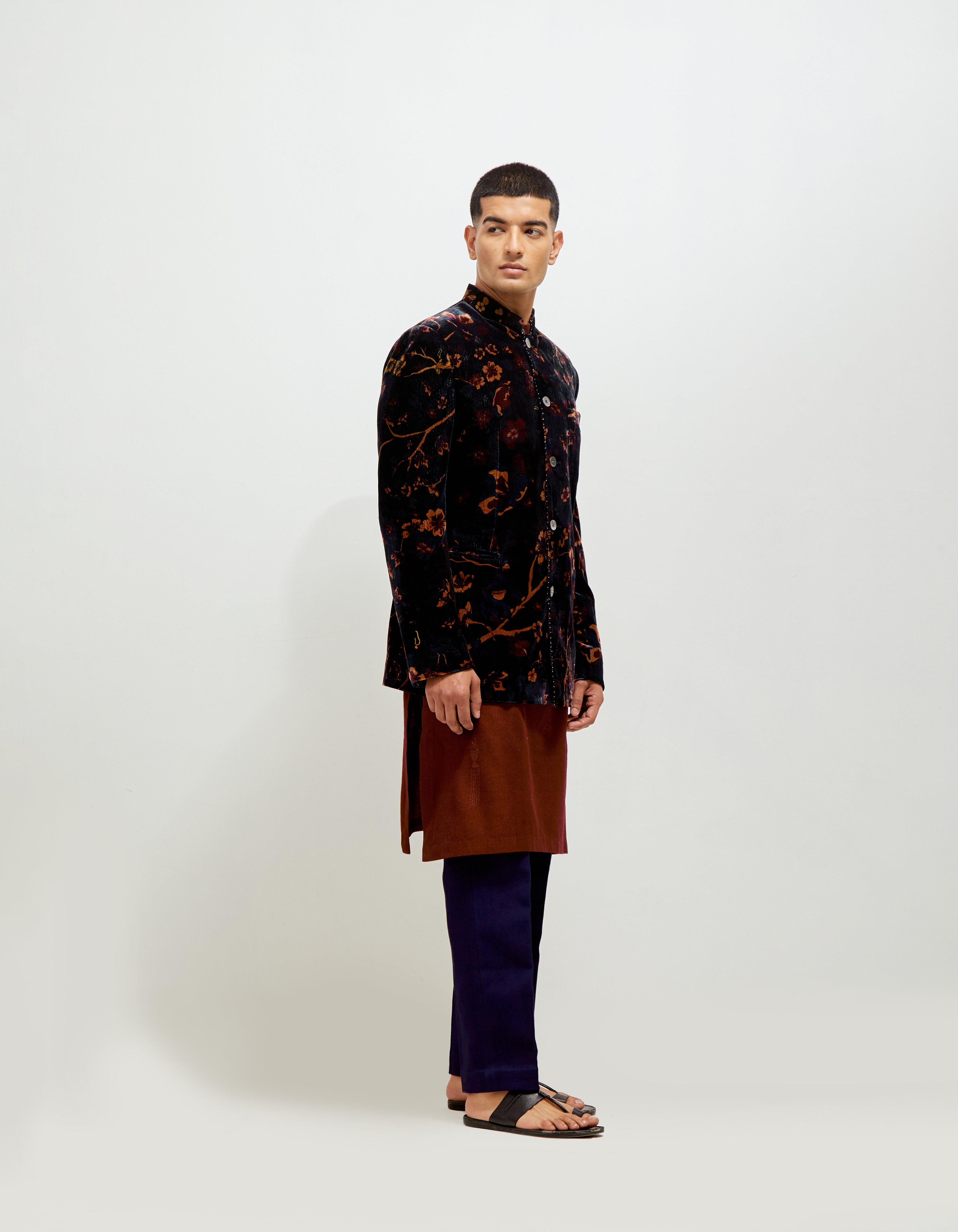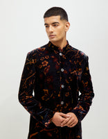 • SD Forest Blossom Bandhgala D-Green Silk Velvet
