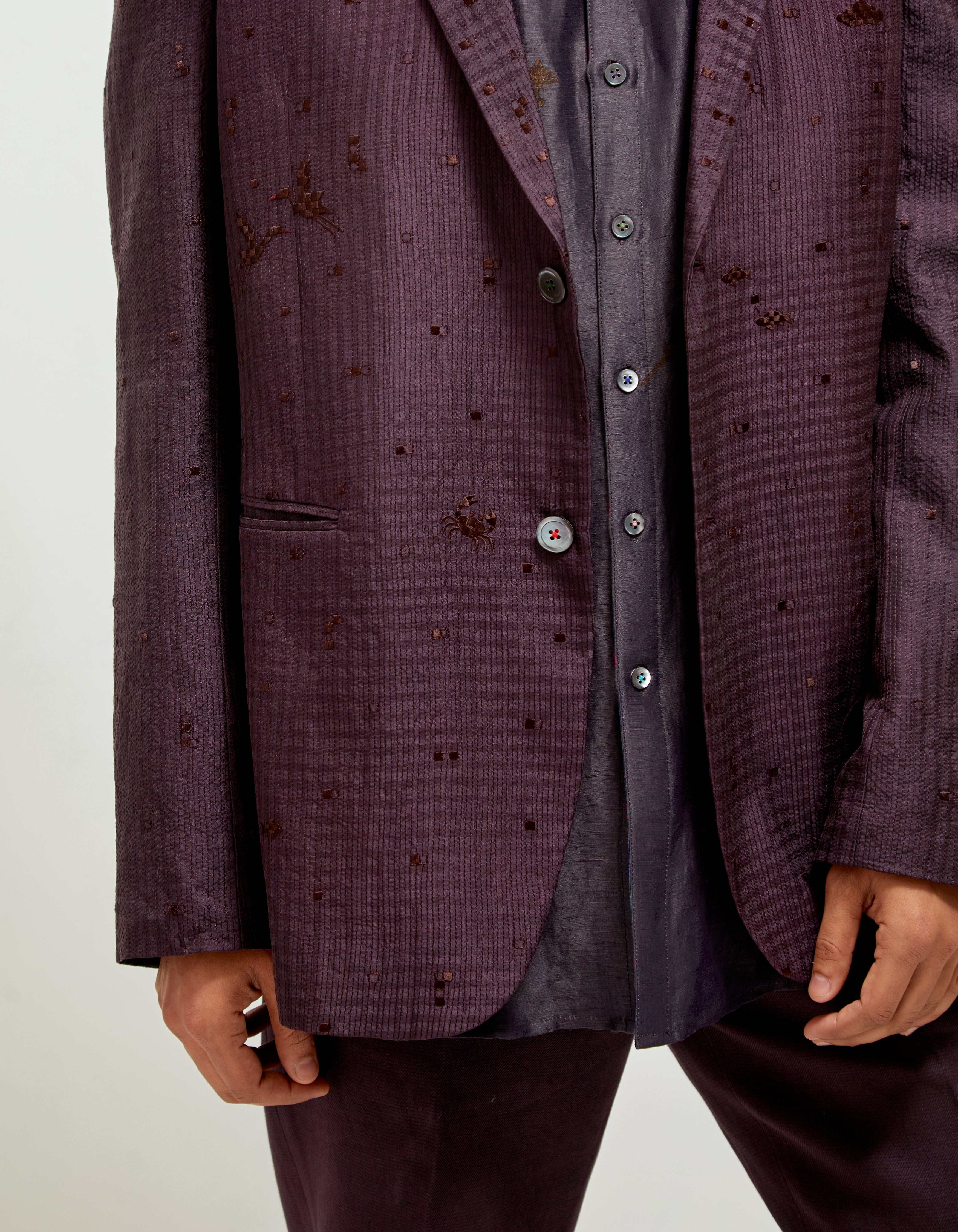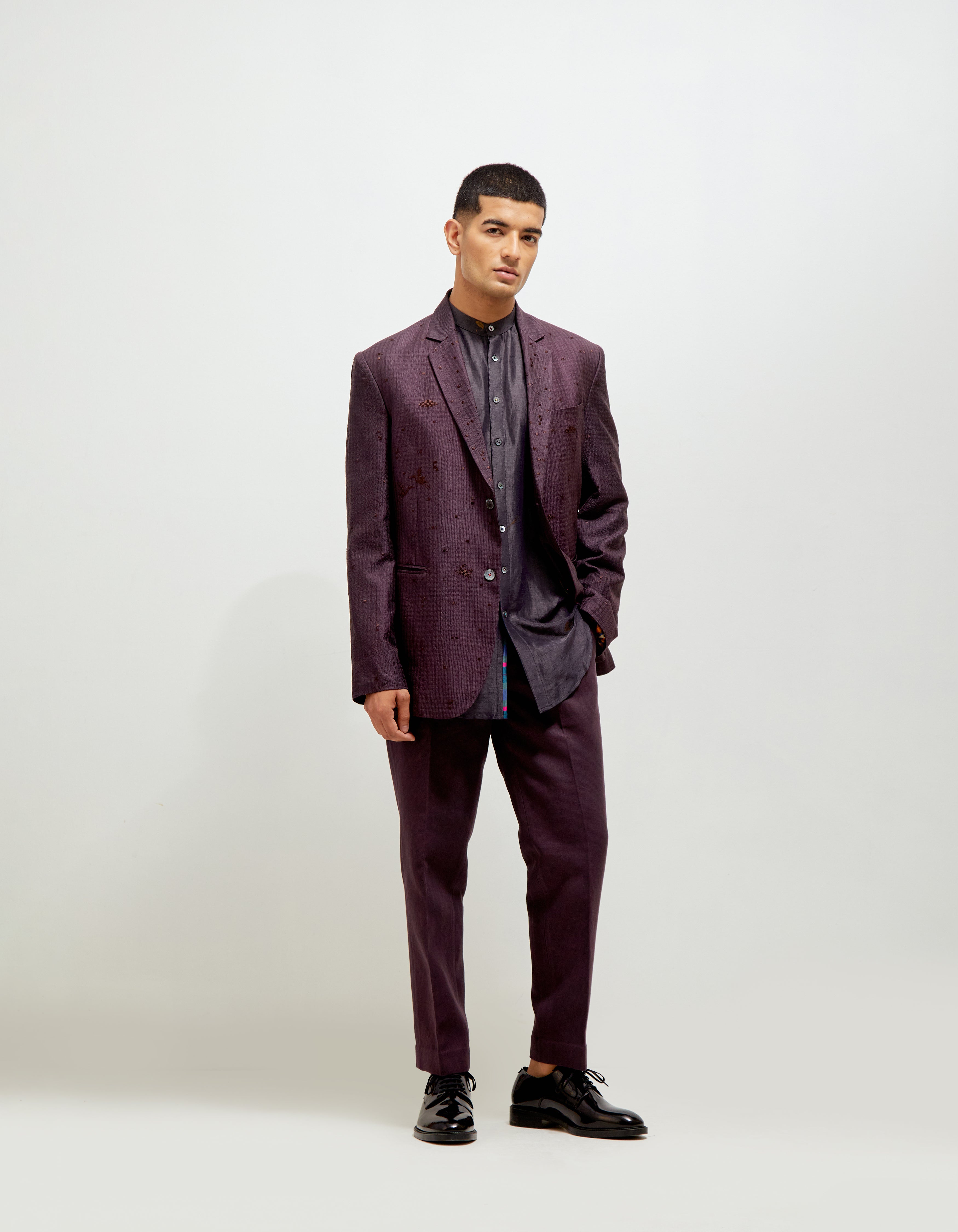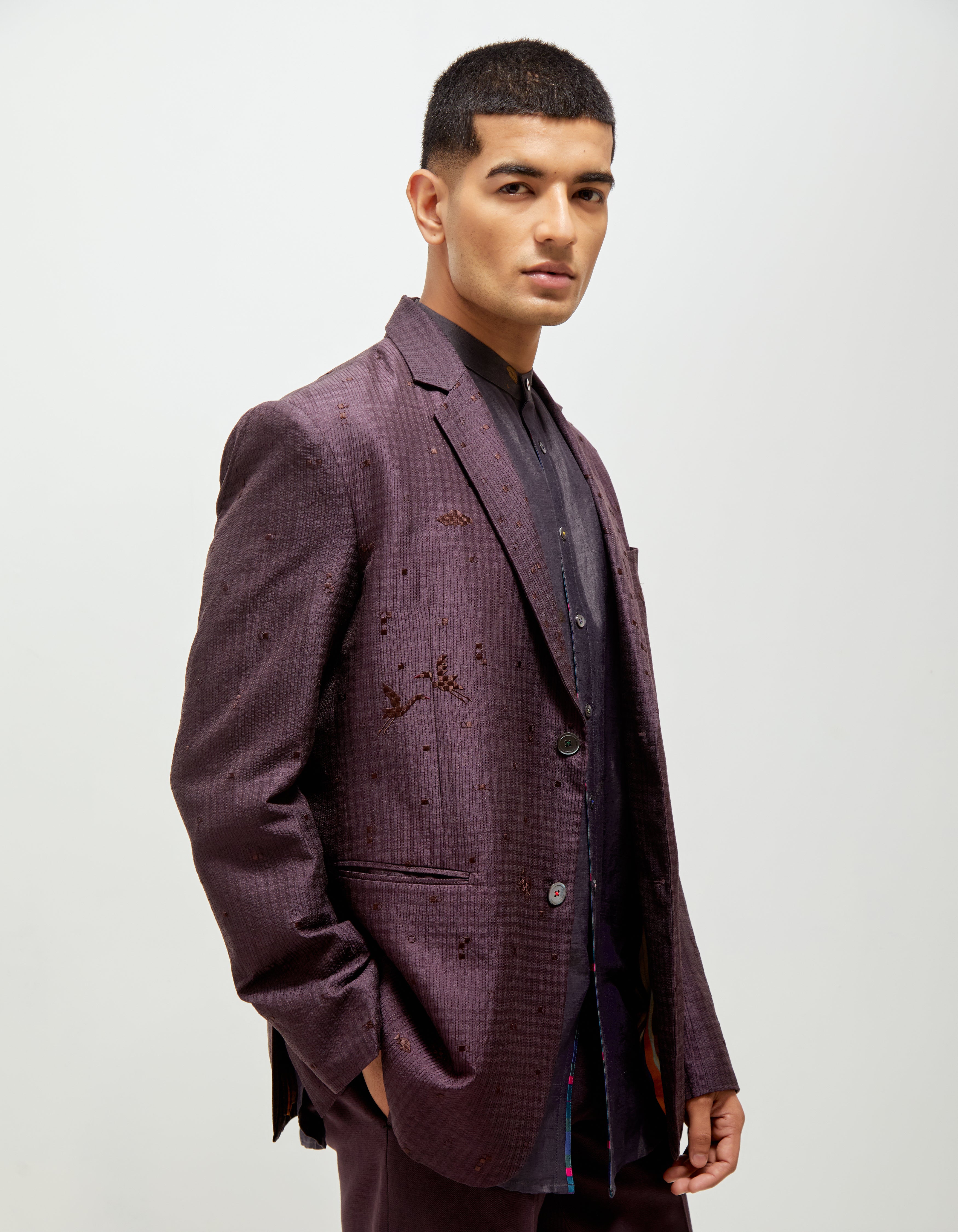 • SD Rana Blazer Emb Phulkari Black Berry Silk Check