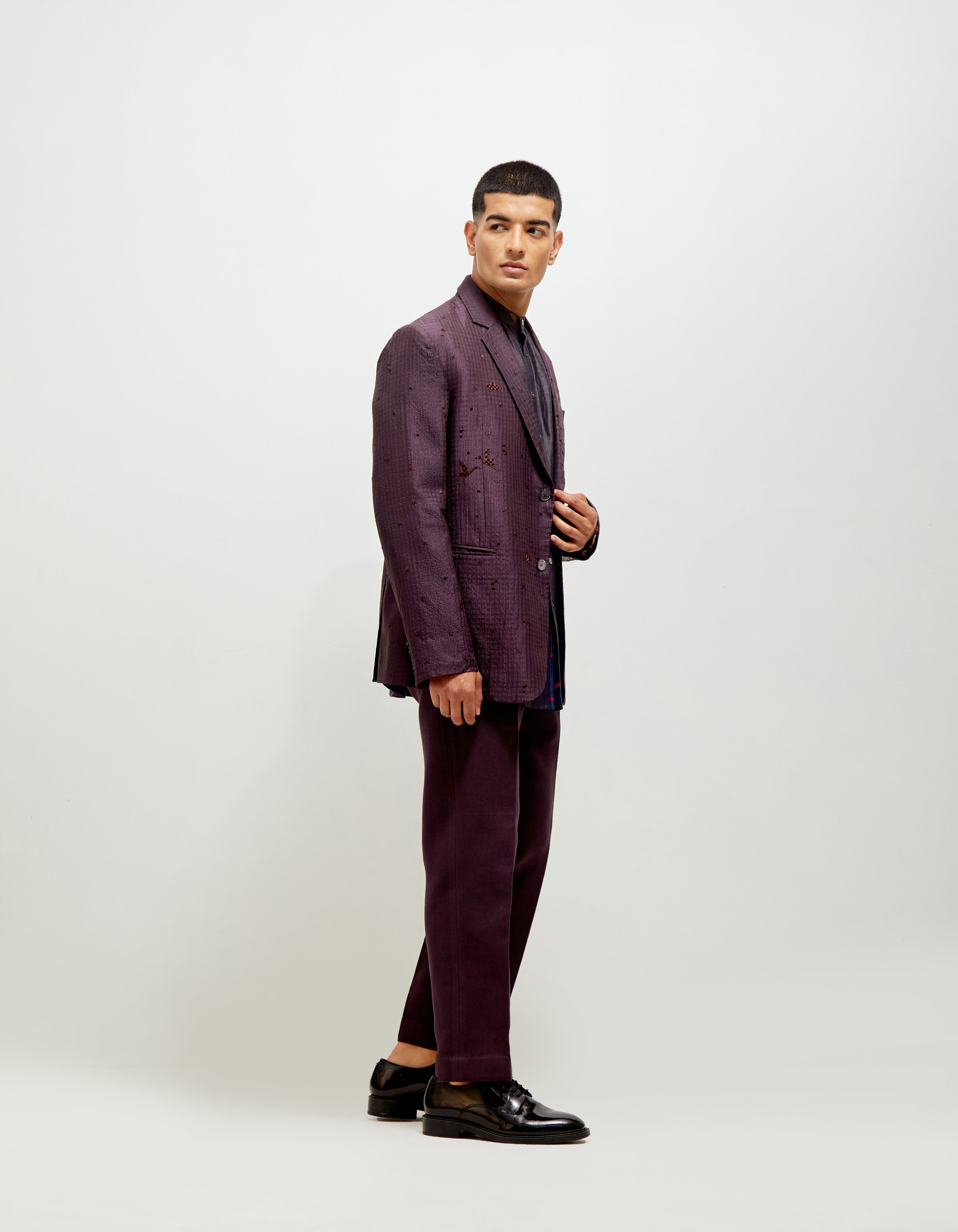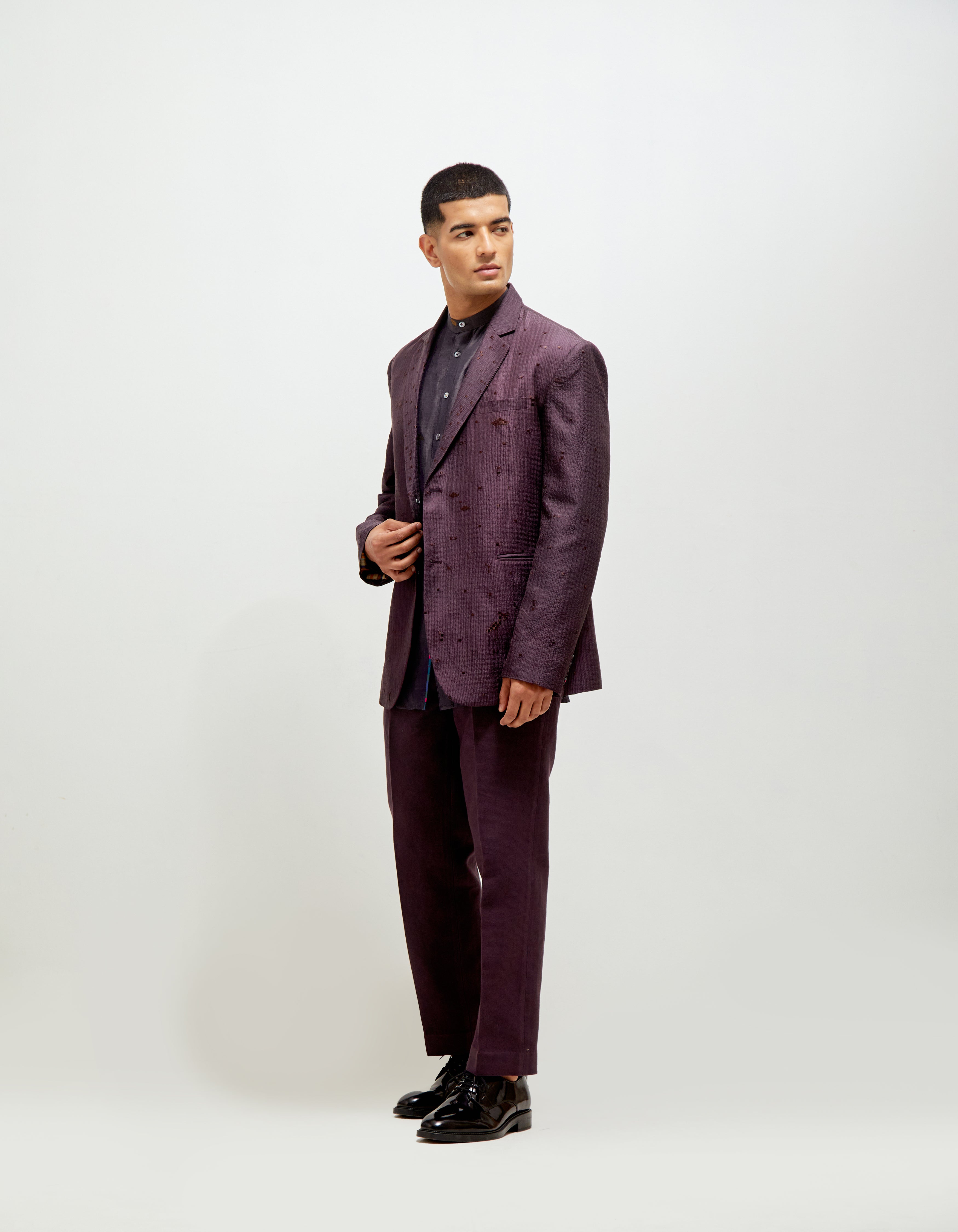 SD Rana Blazer Emb Phulkari Black Berry Silk Check