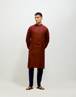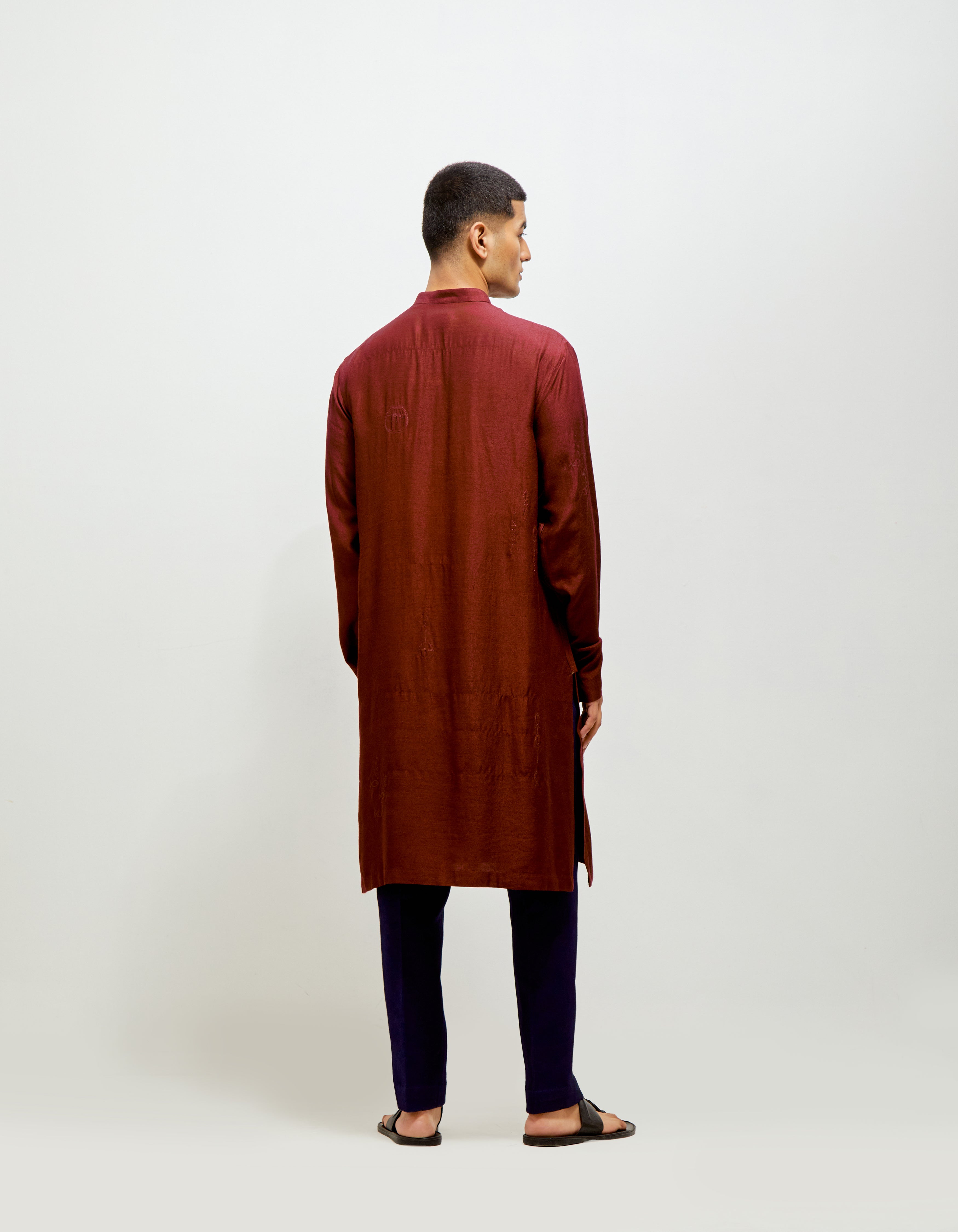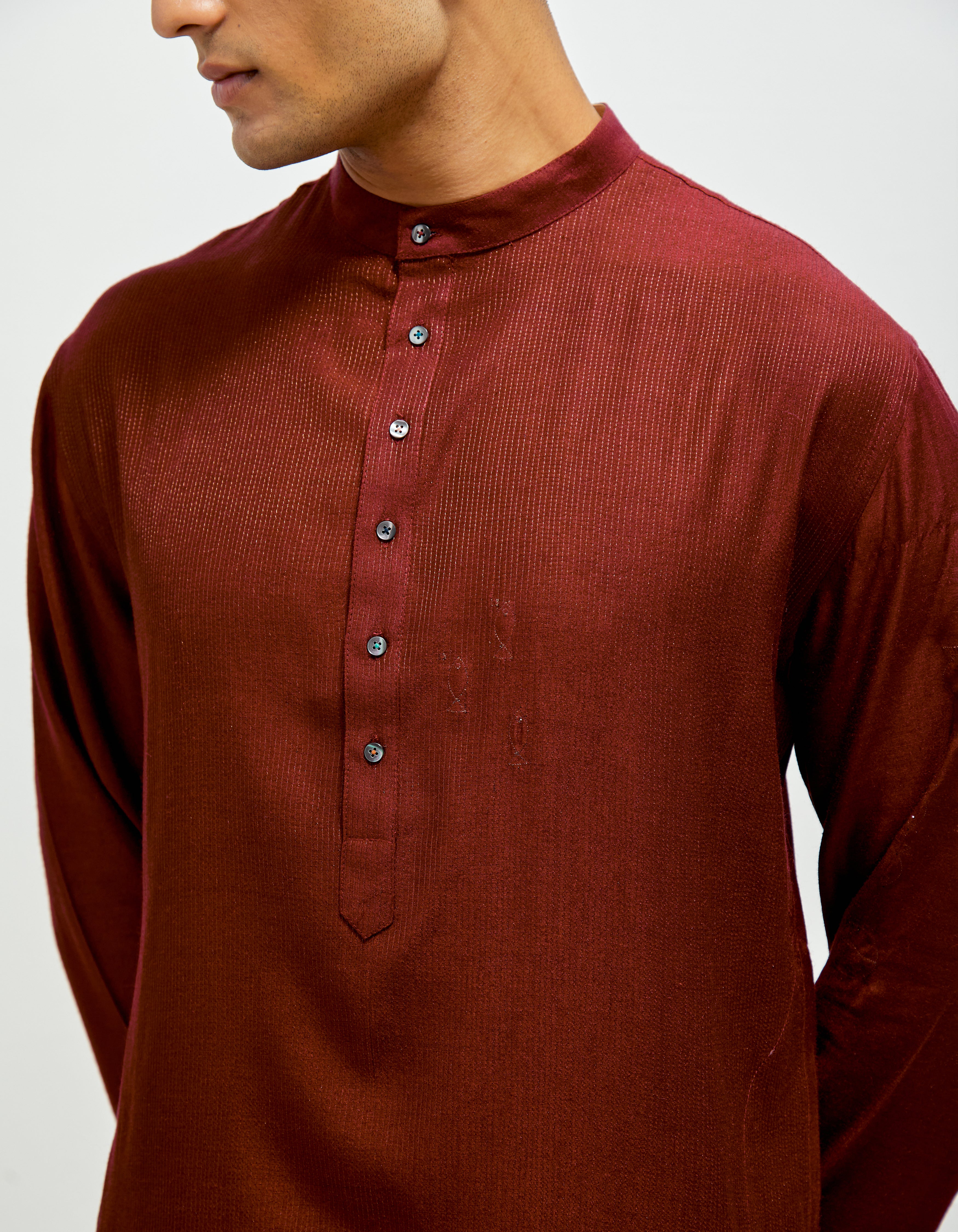 SD Roshan Bade Miyan Kurta Emb Burgandy Muga Satin