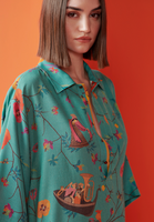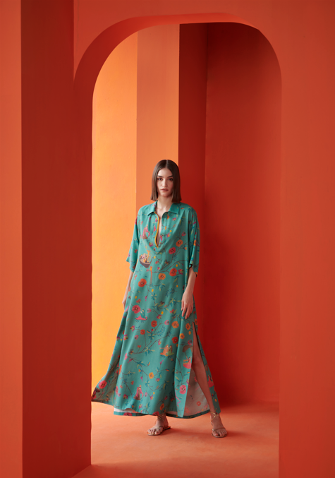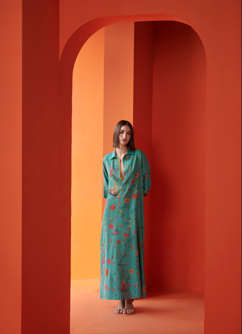 Kasturi Shirt Dress Muga Satin Aqua
