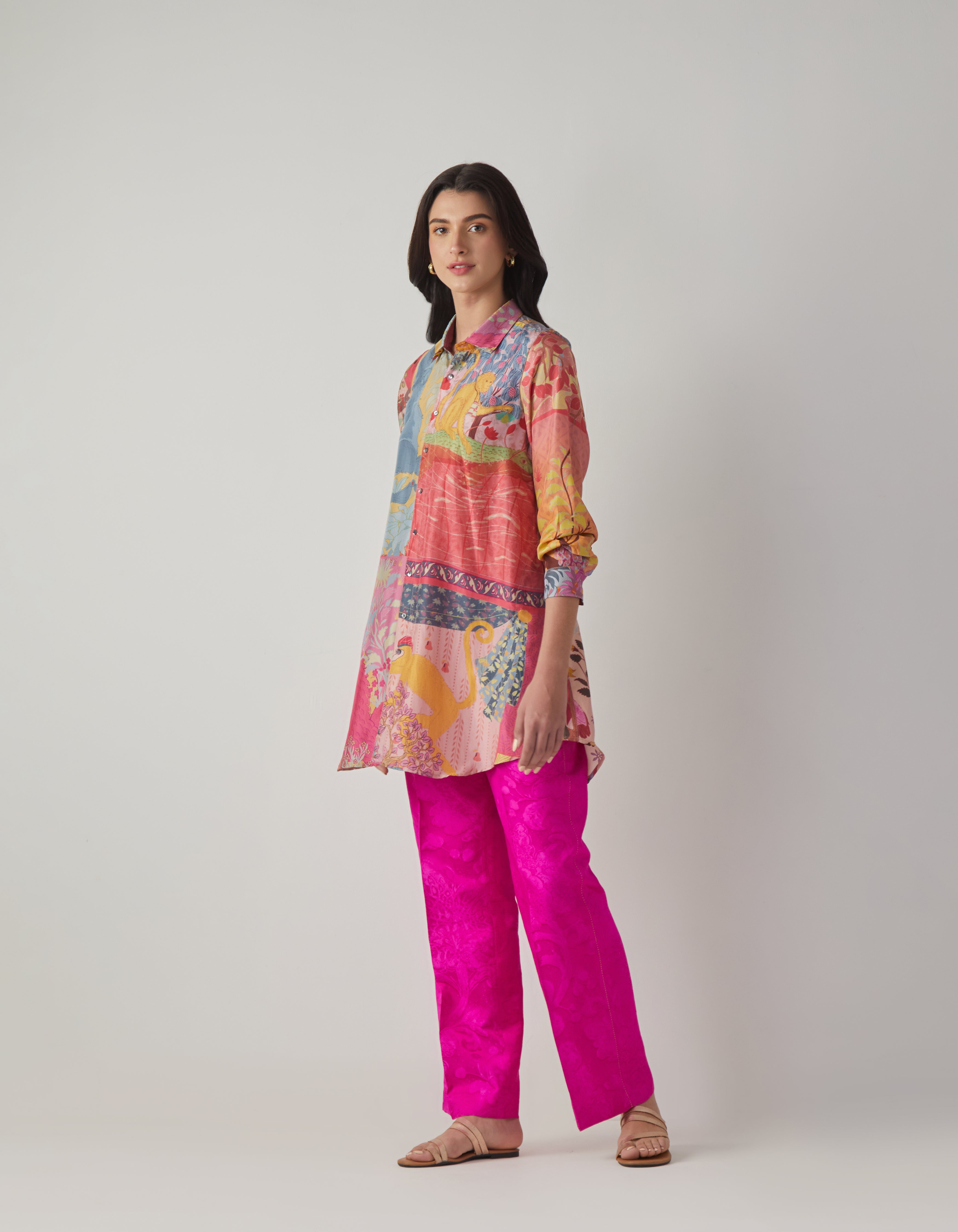 SD Azaad Trousers Fuchsia Pink Silk Damask