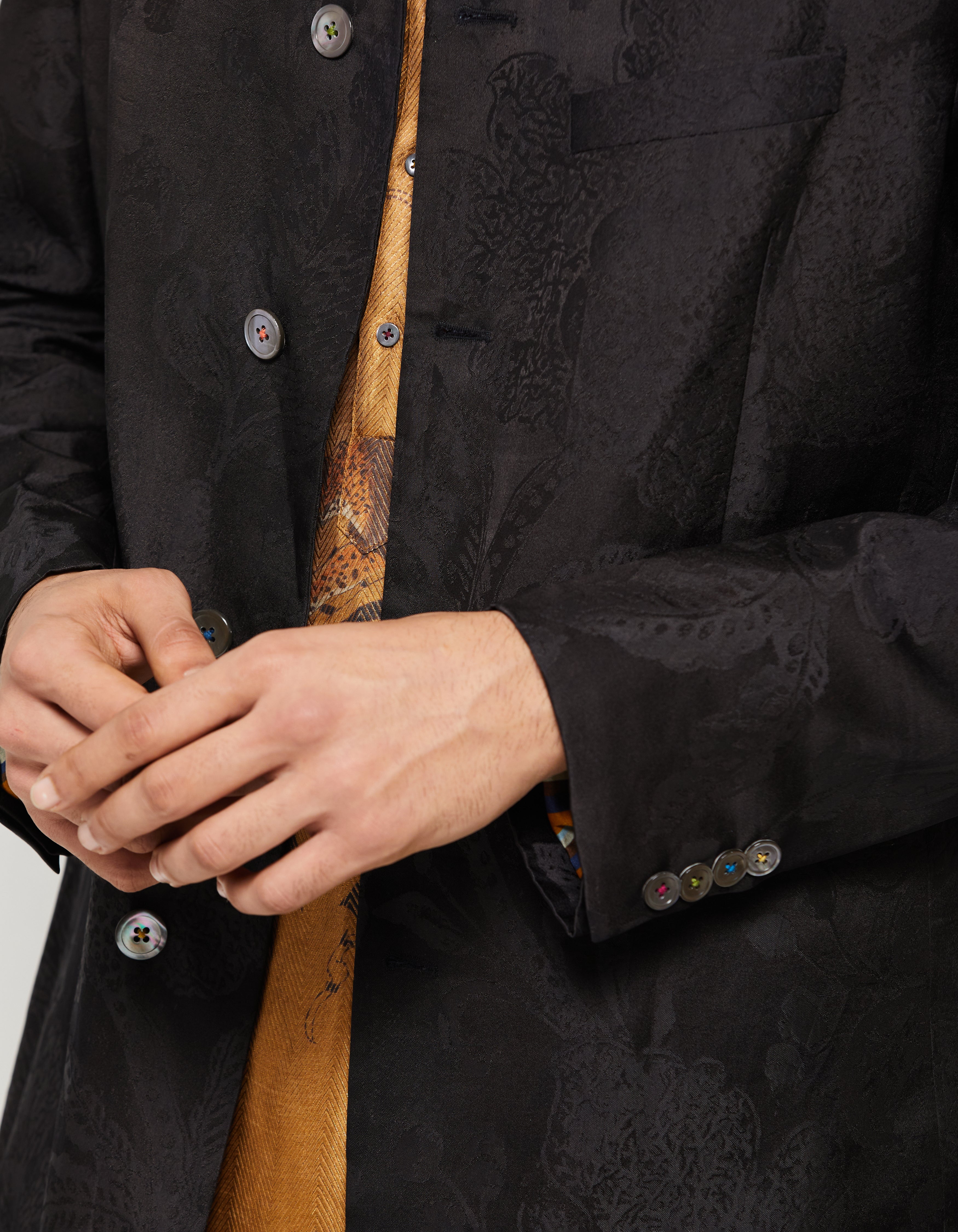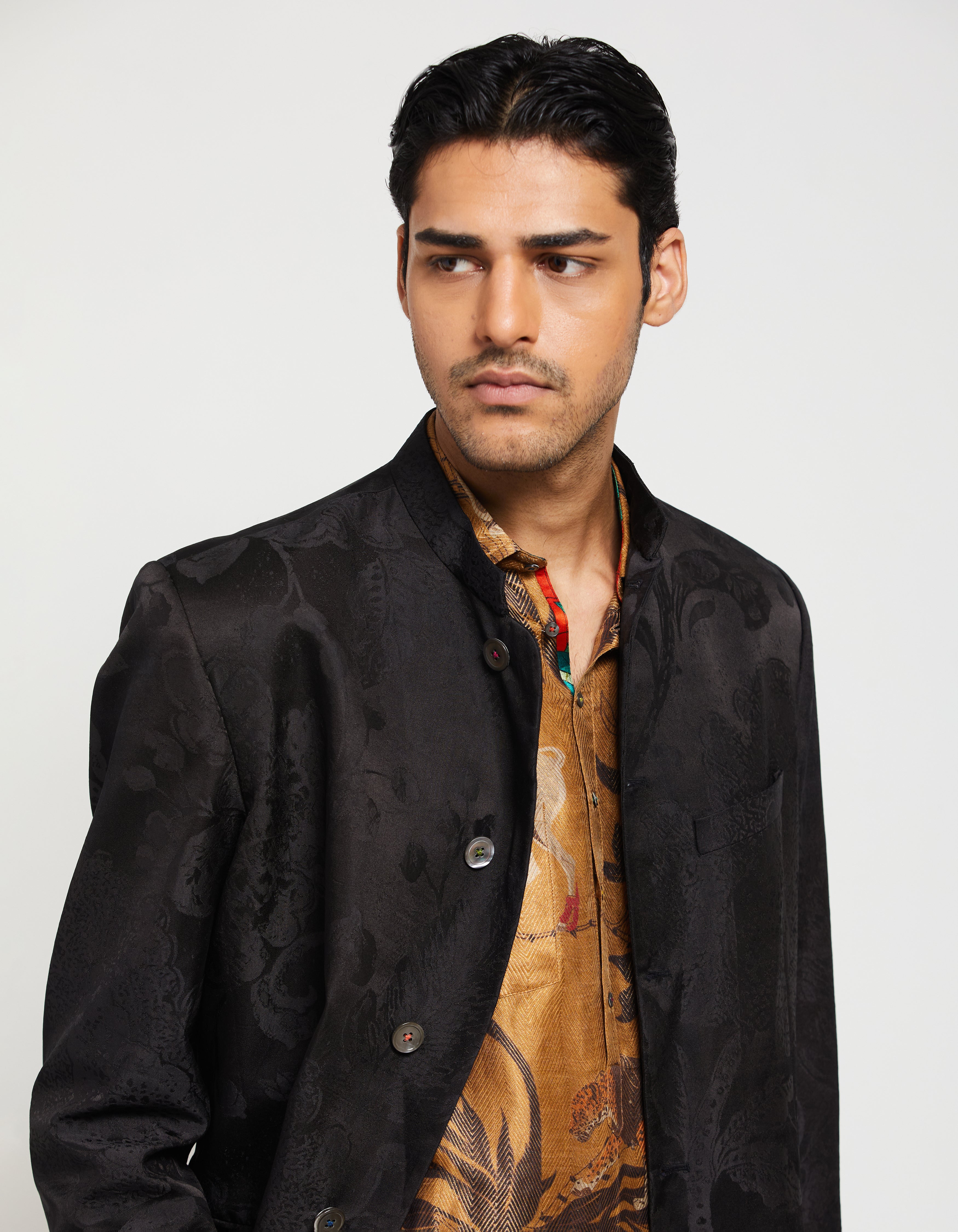 • SD Bandhgala Black Silk Damask