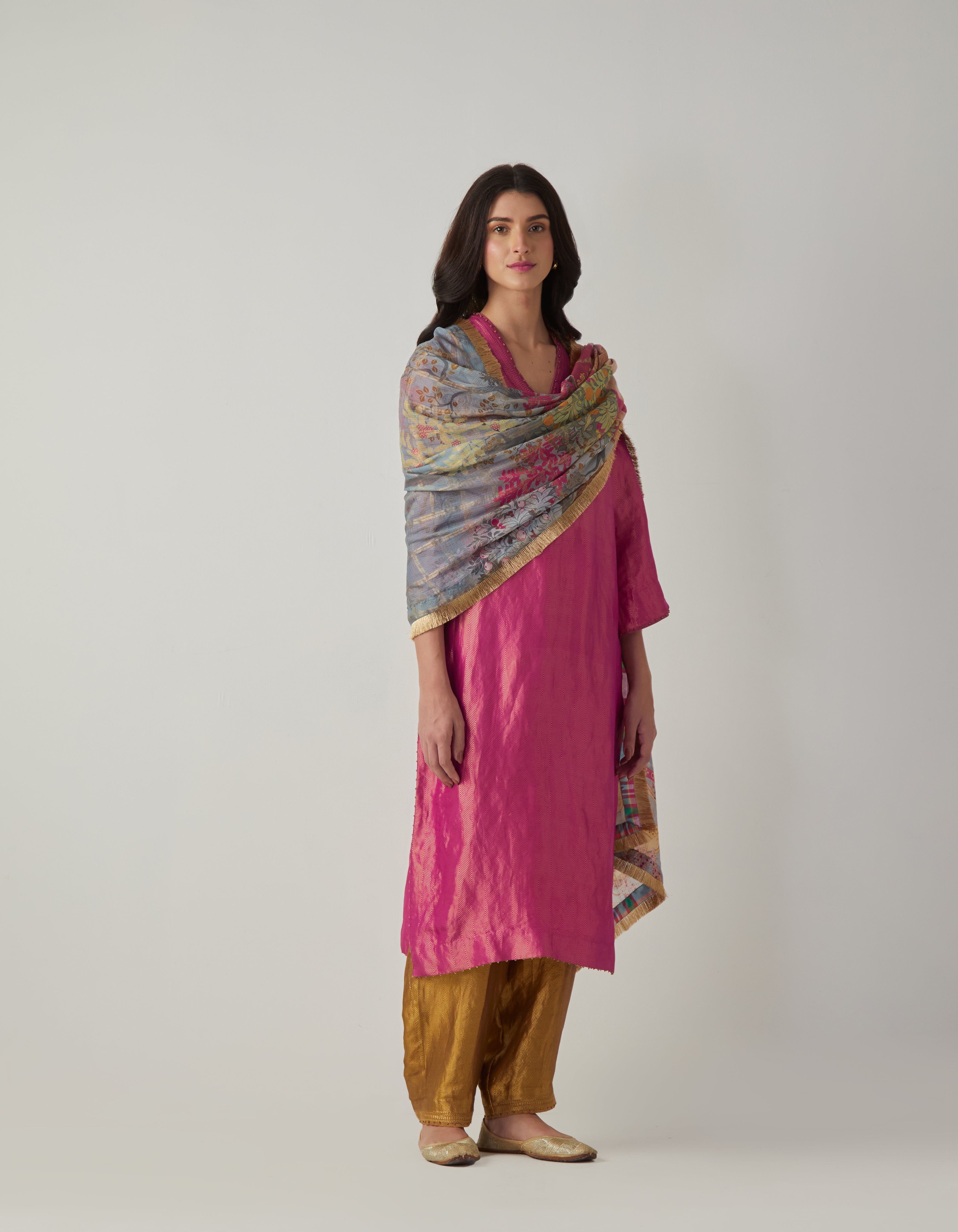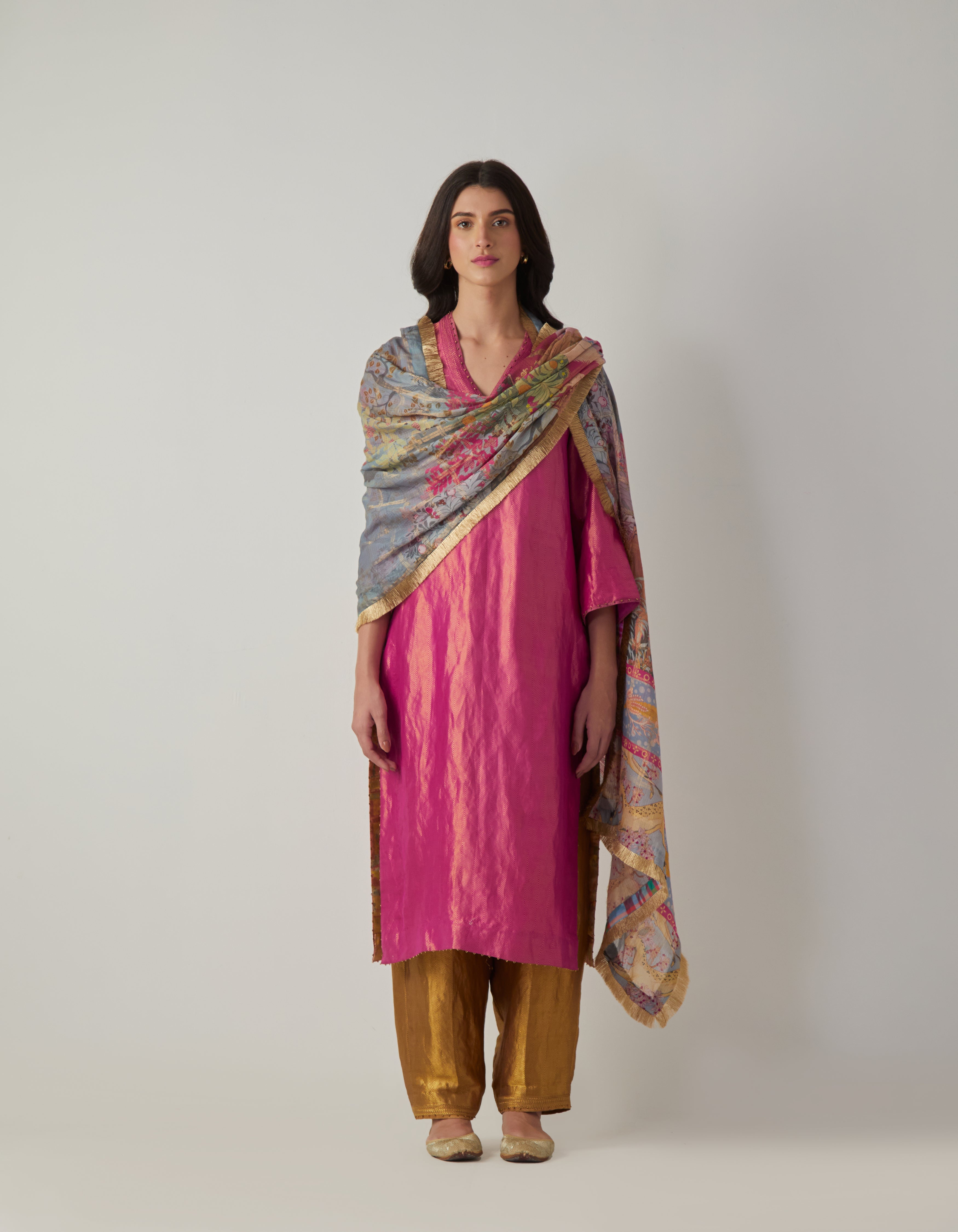 • SD Damini Kurta Fuchsia Pink Silk Brocade Zig Zag