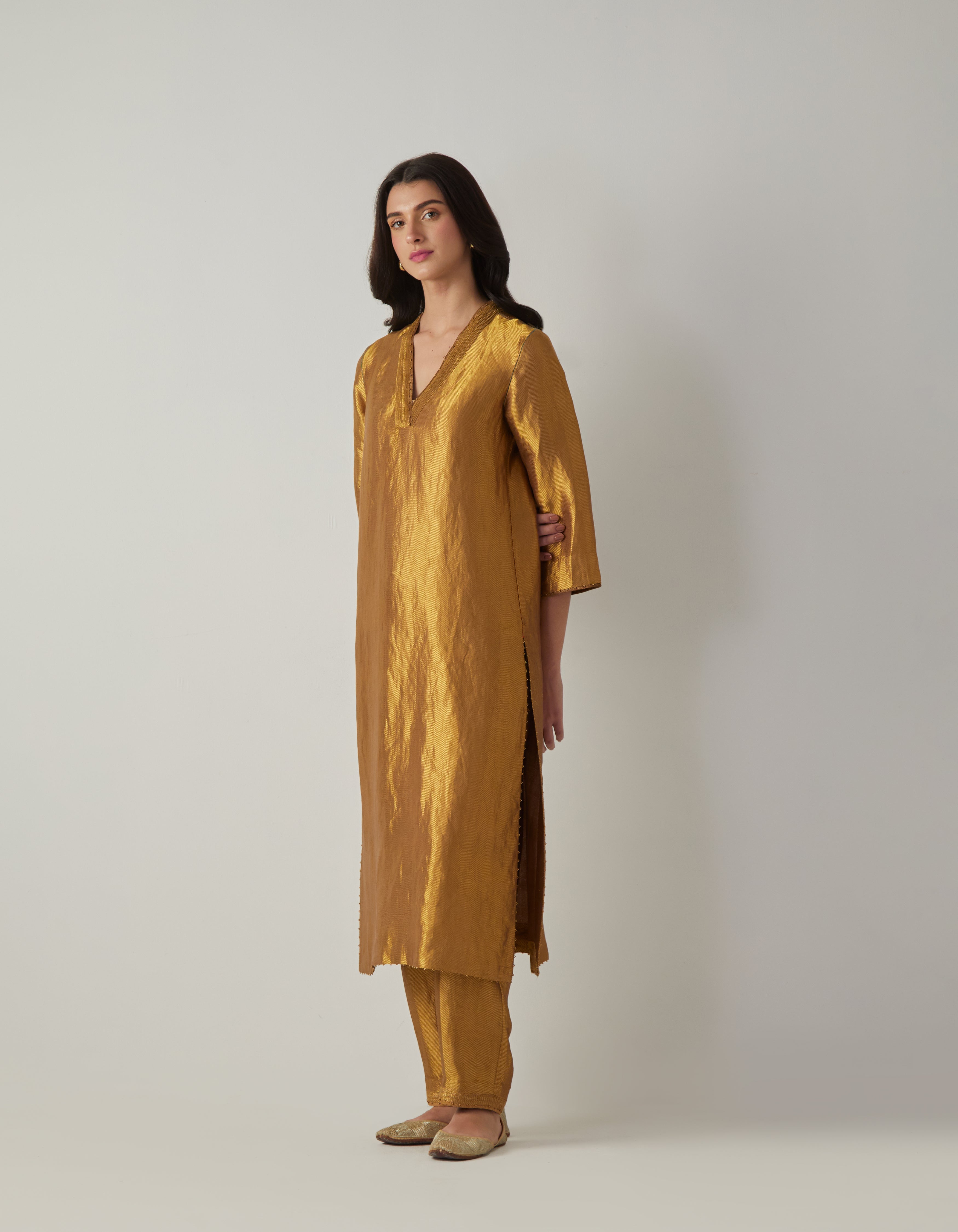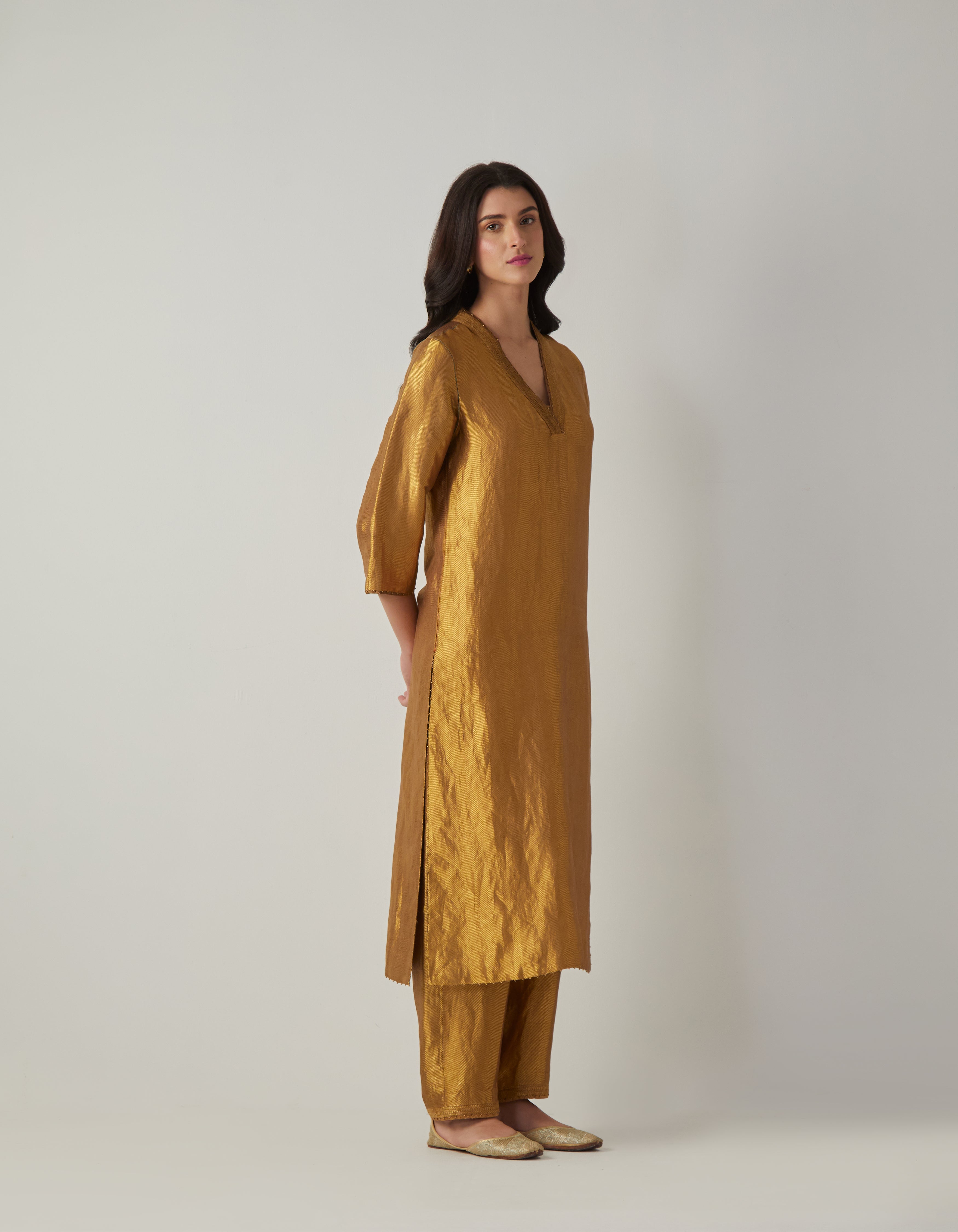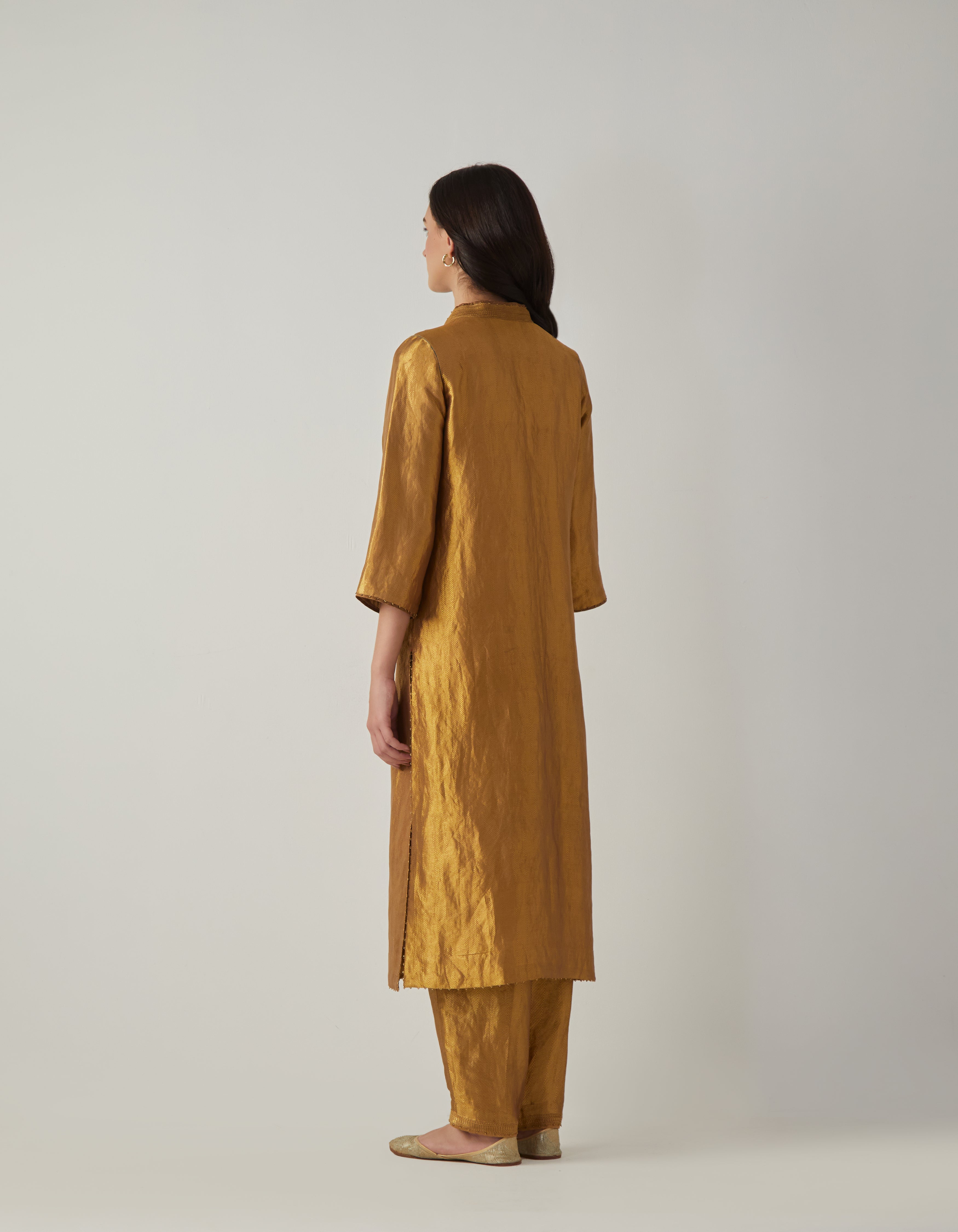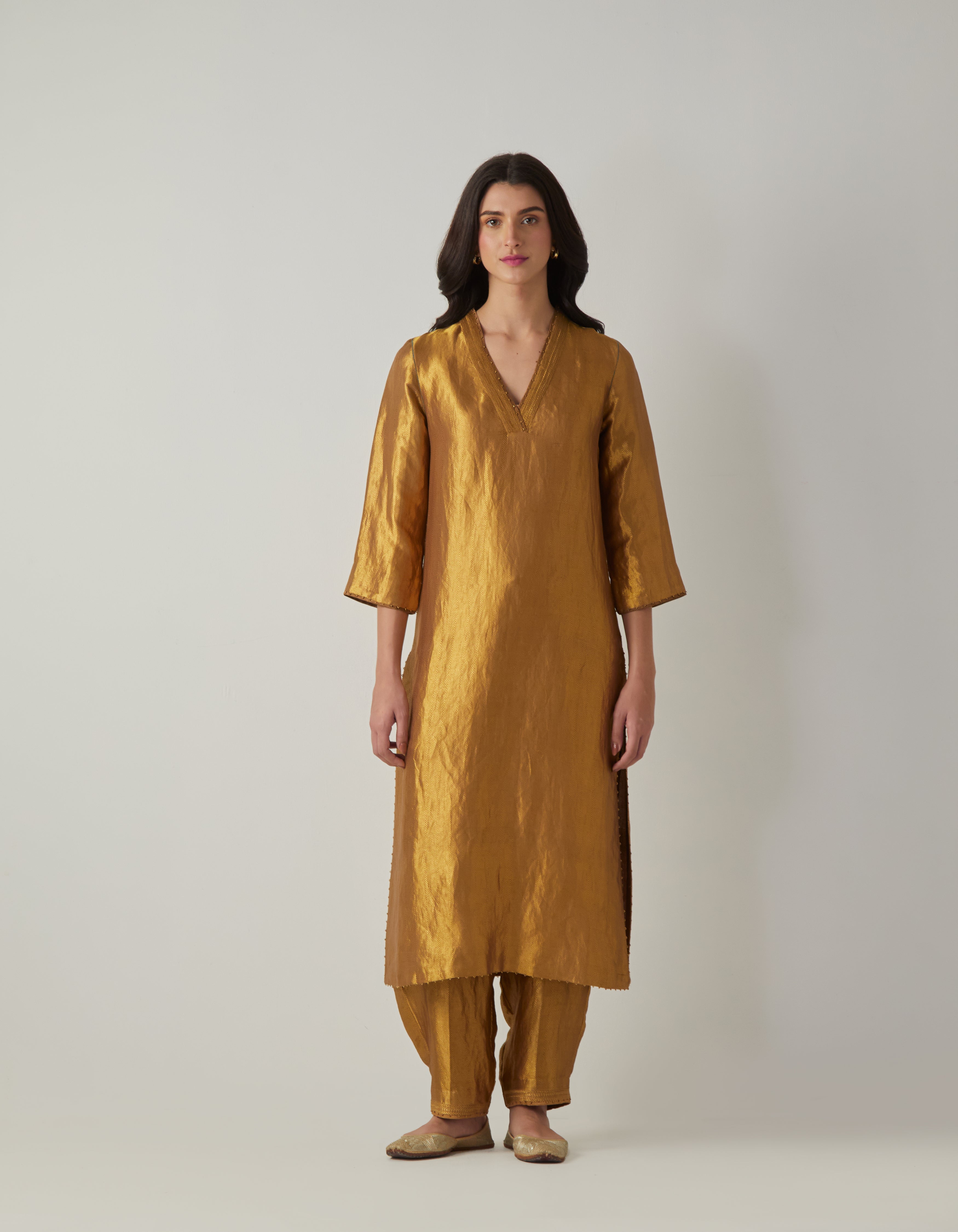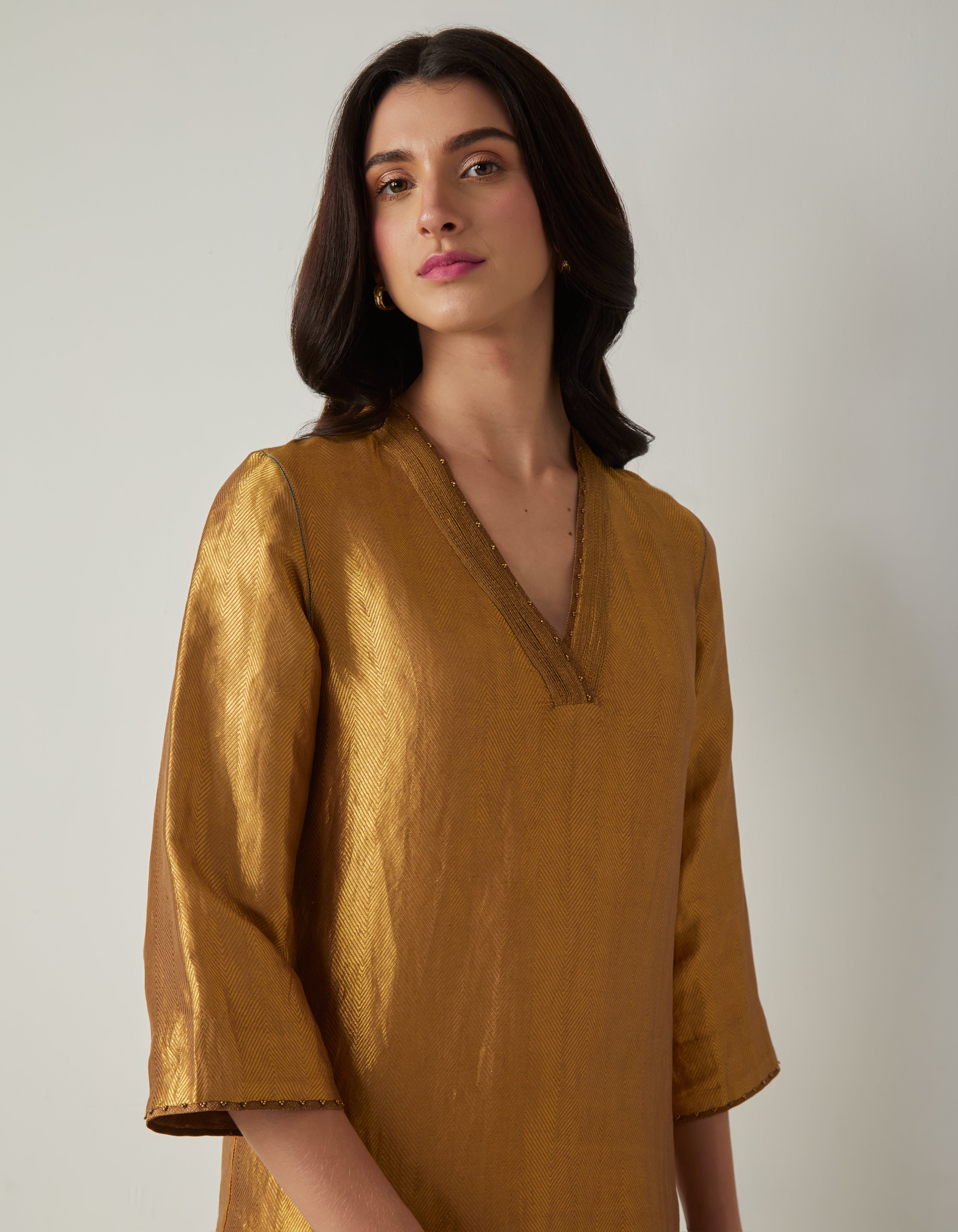 • SD Damini Kurta Gold Silk Brocade Zig Zag