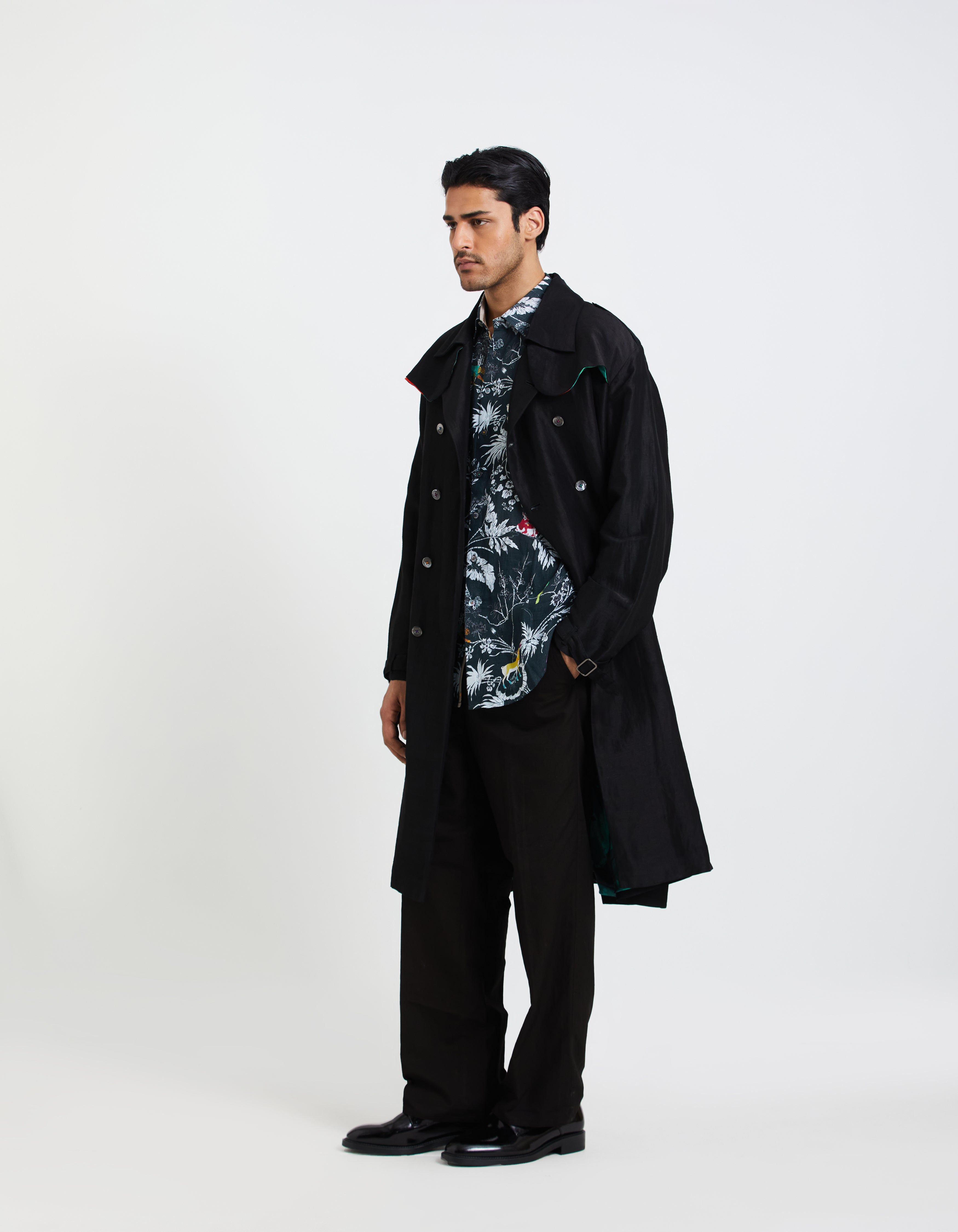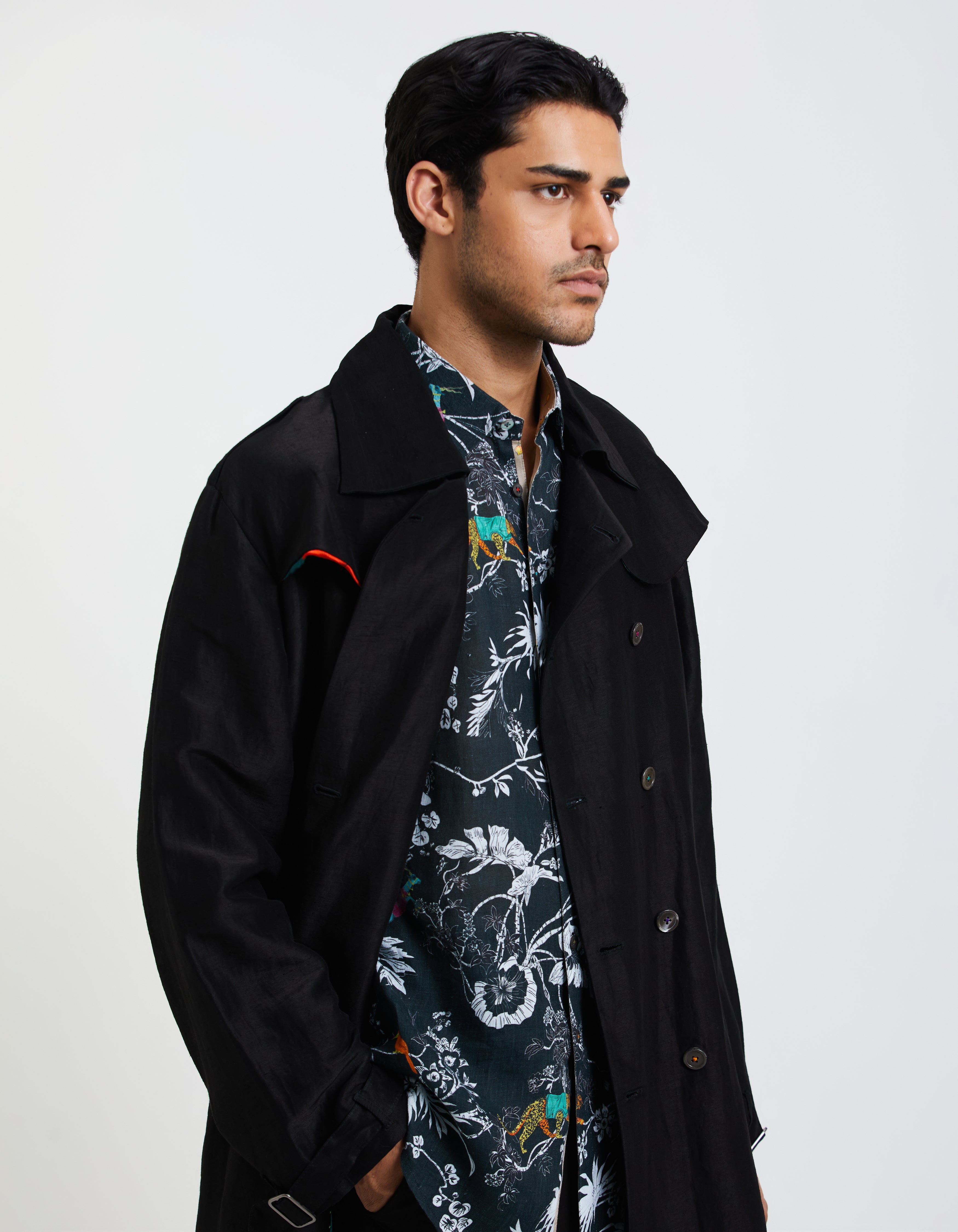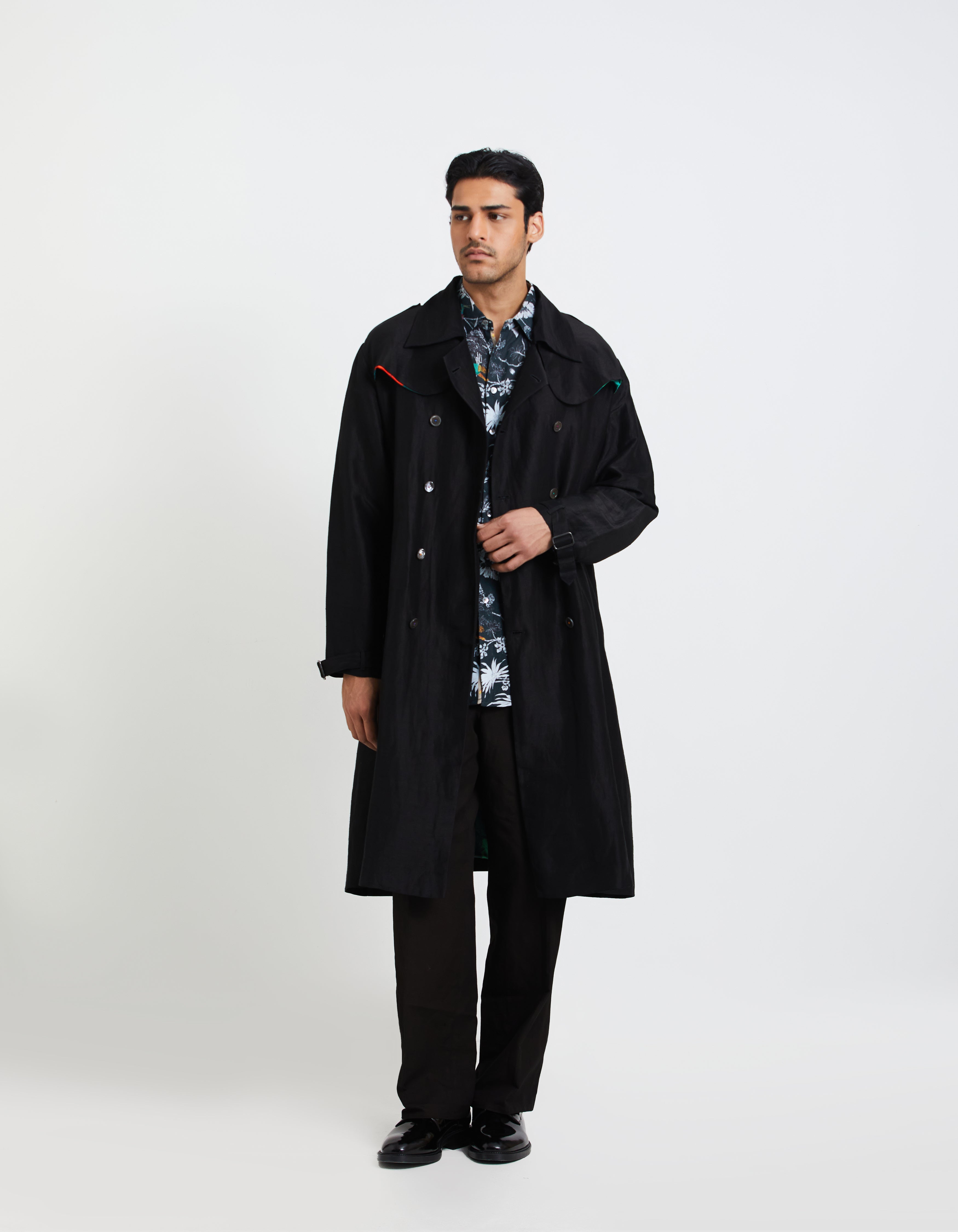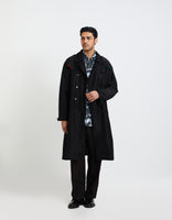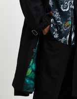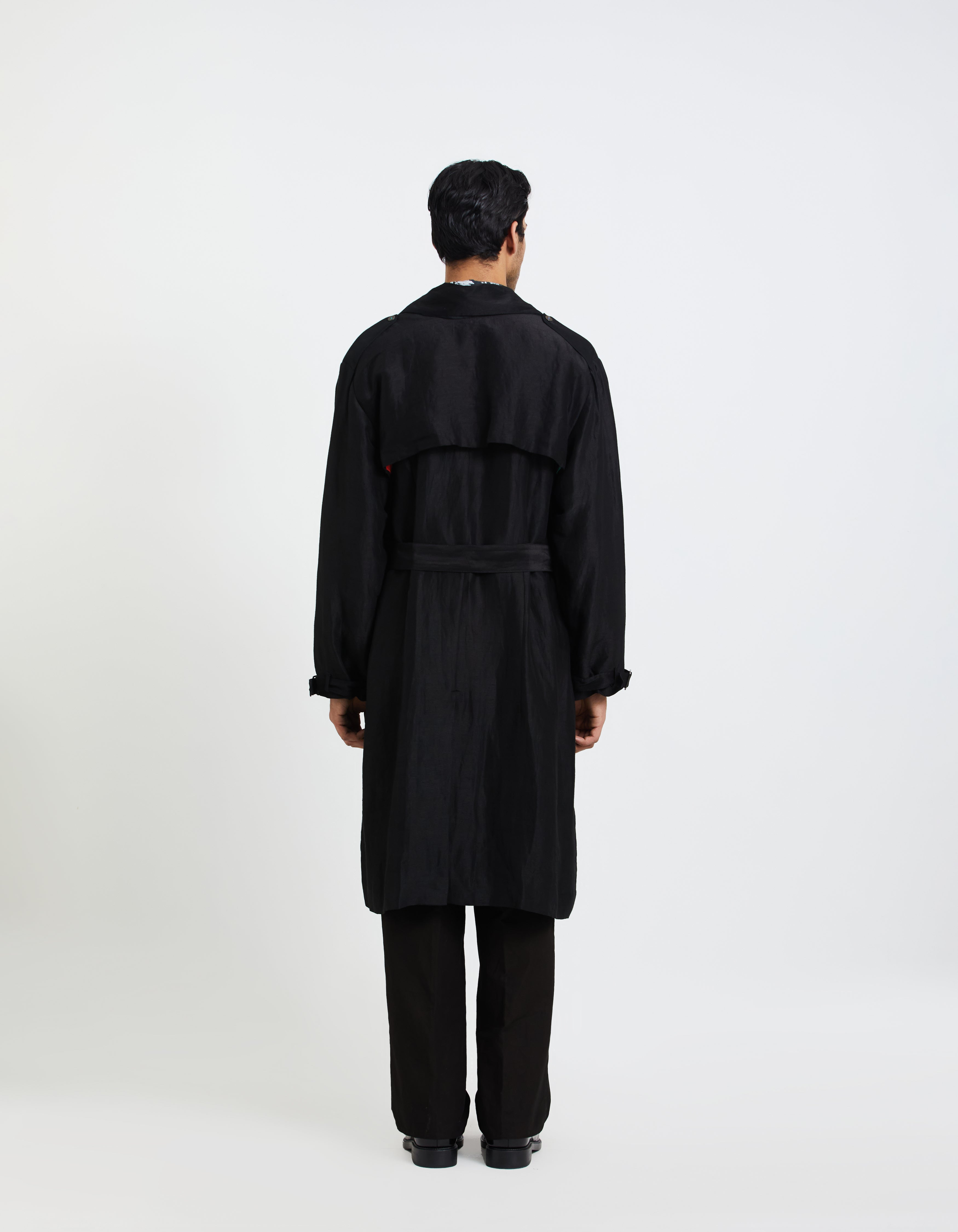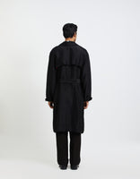 SD Flap Trench Coat Black Satin Linen