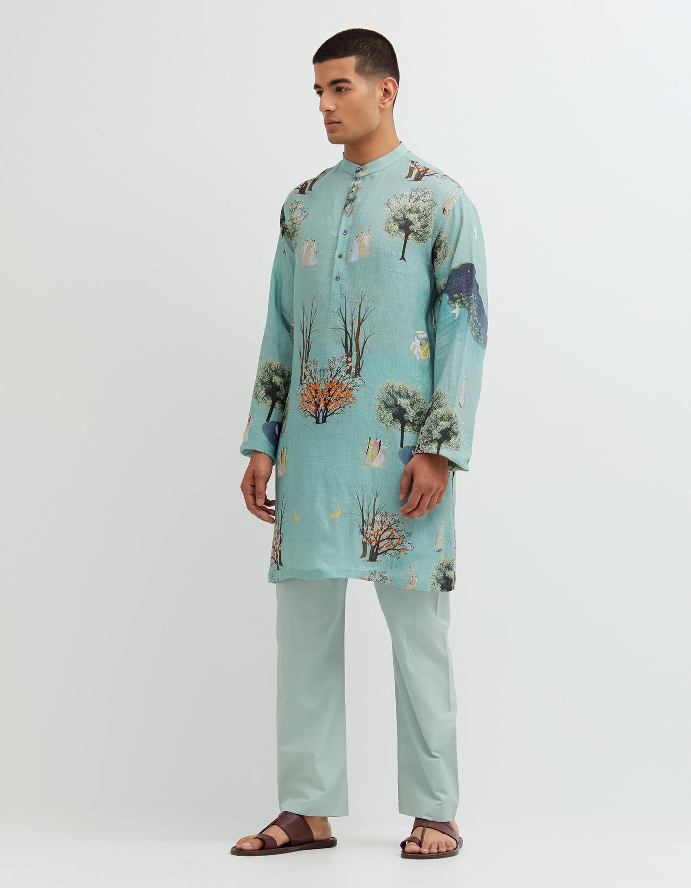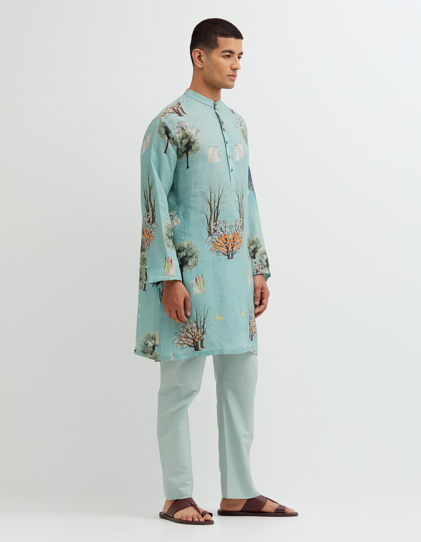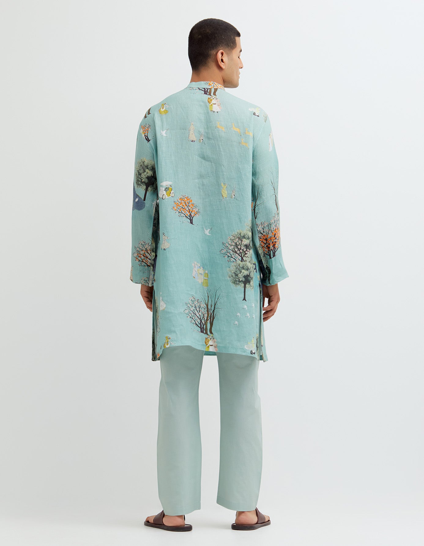 SD Golfer Bade Miyan Kurta Linen Turquoise
