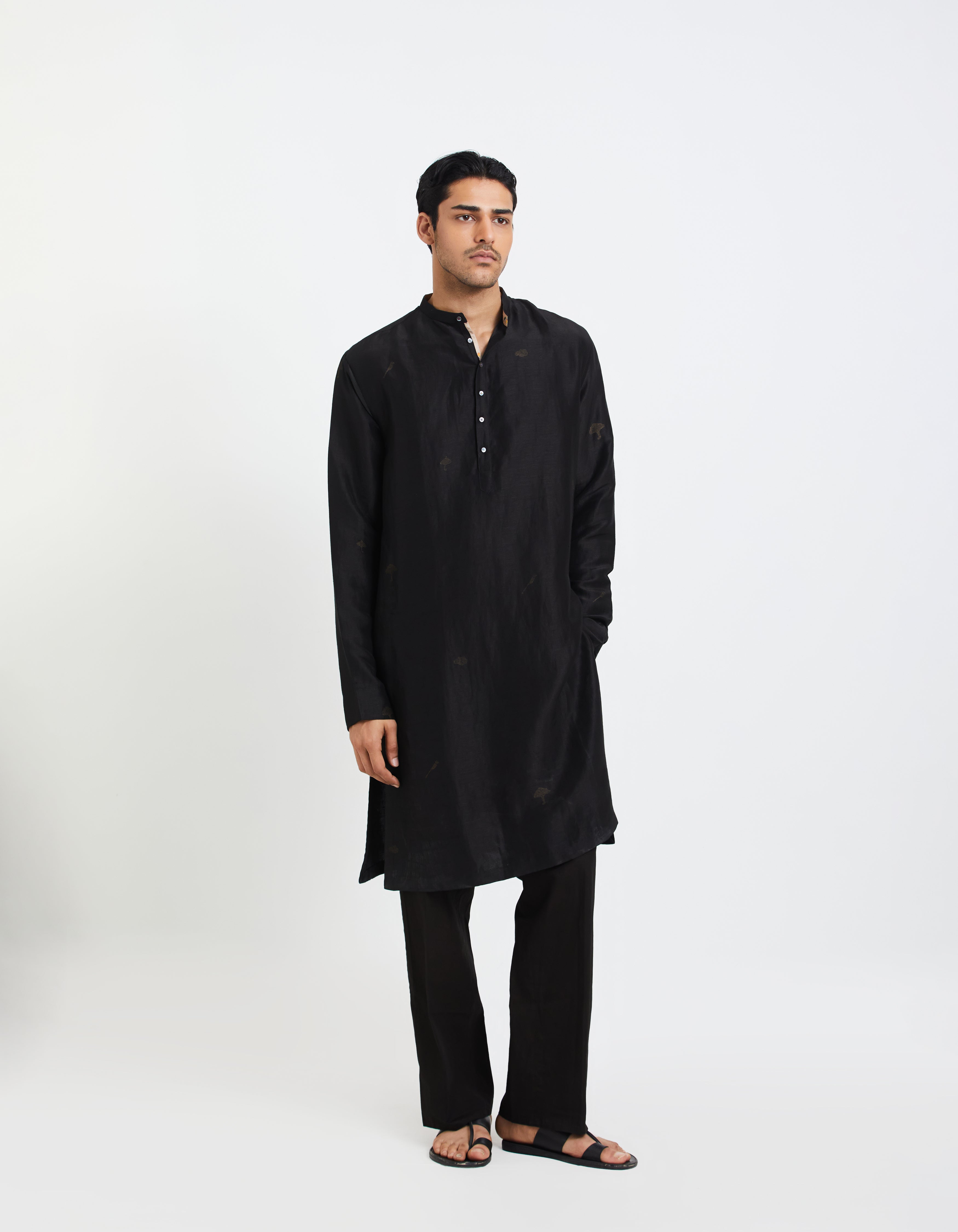 SD Jugnoo Kurta Black Satin Linen