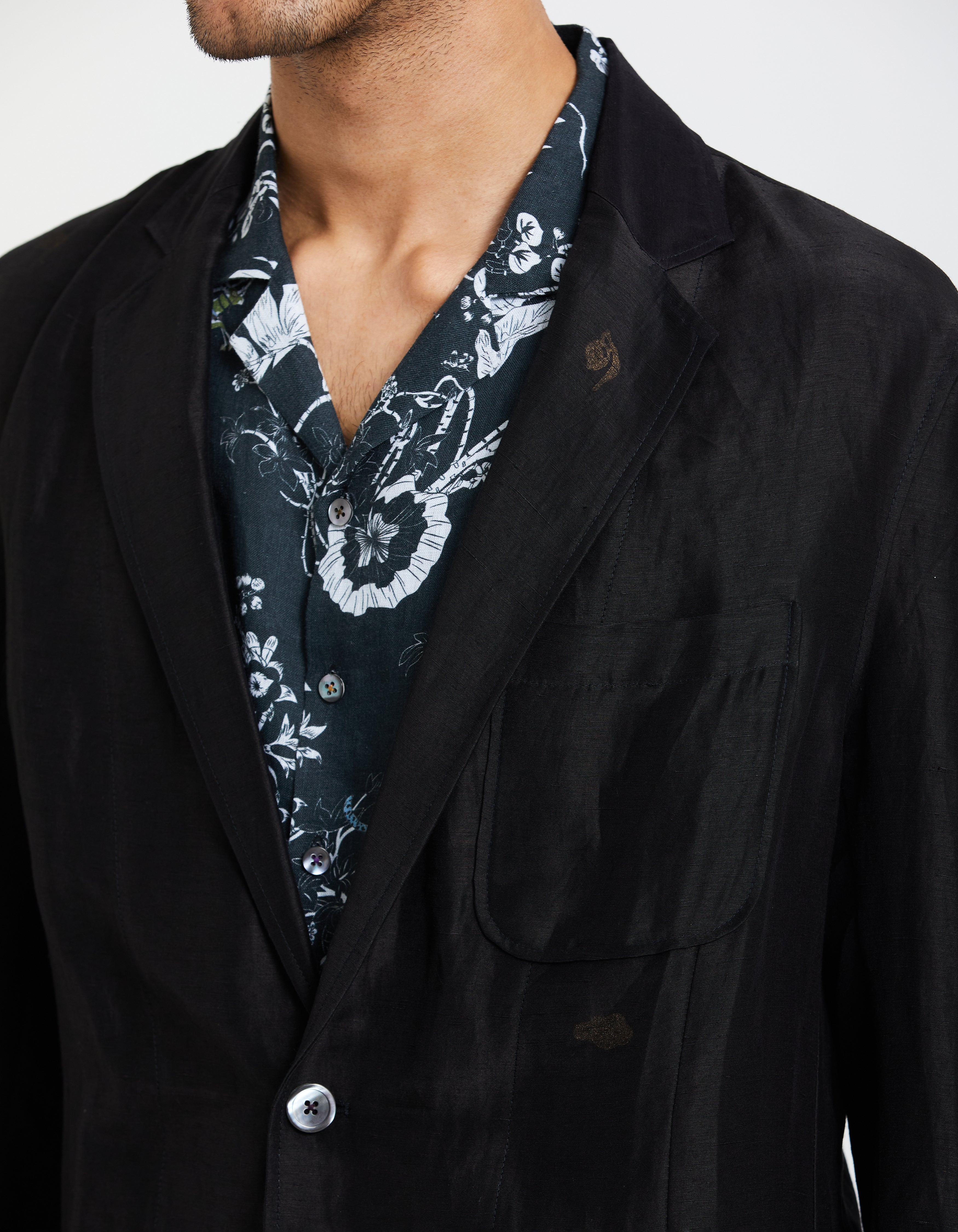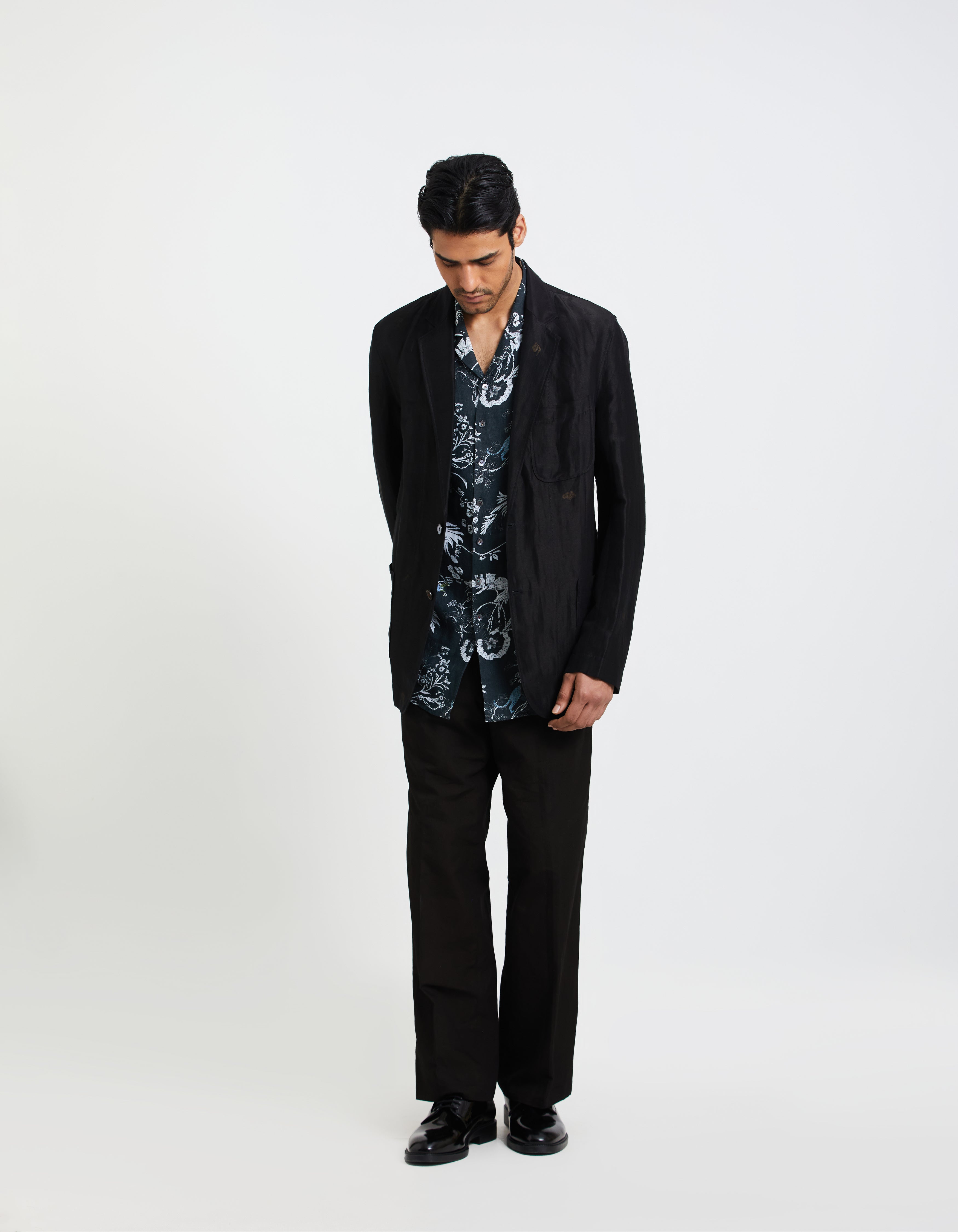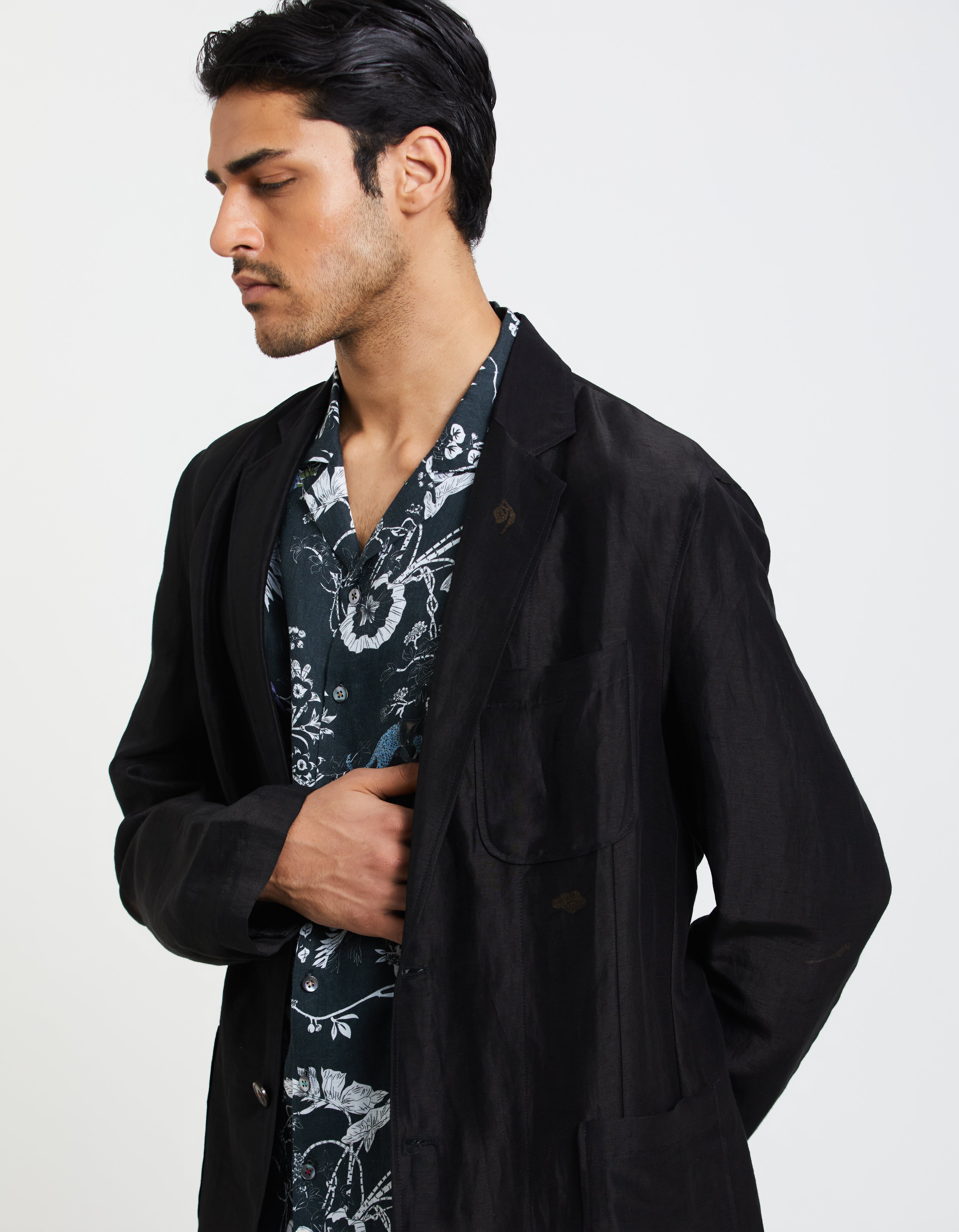 • SD Jugnoo Rana Blazer Black Satin Linen