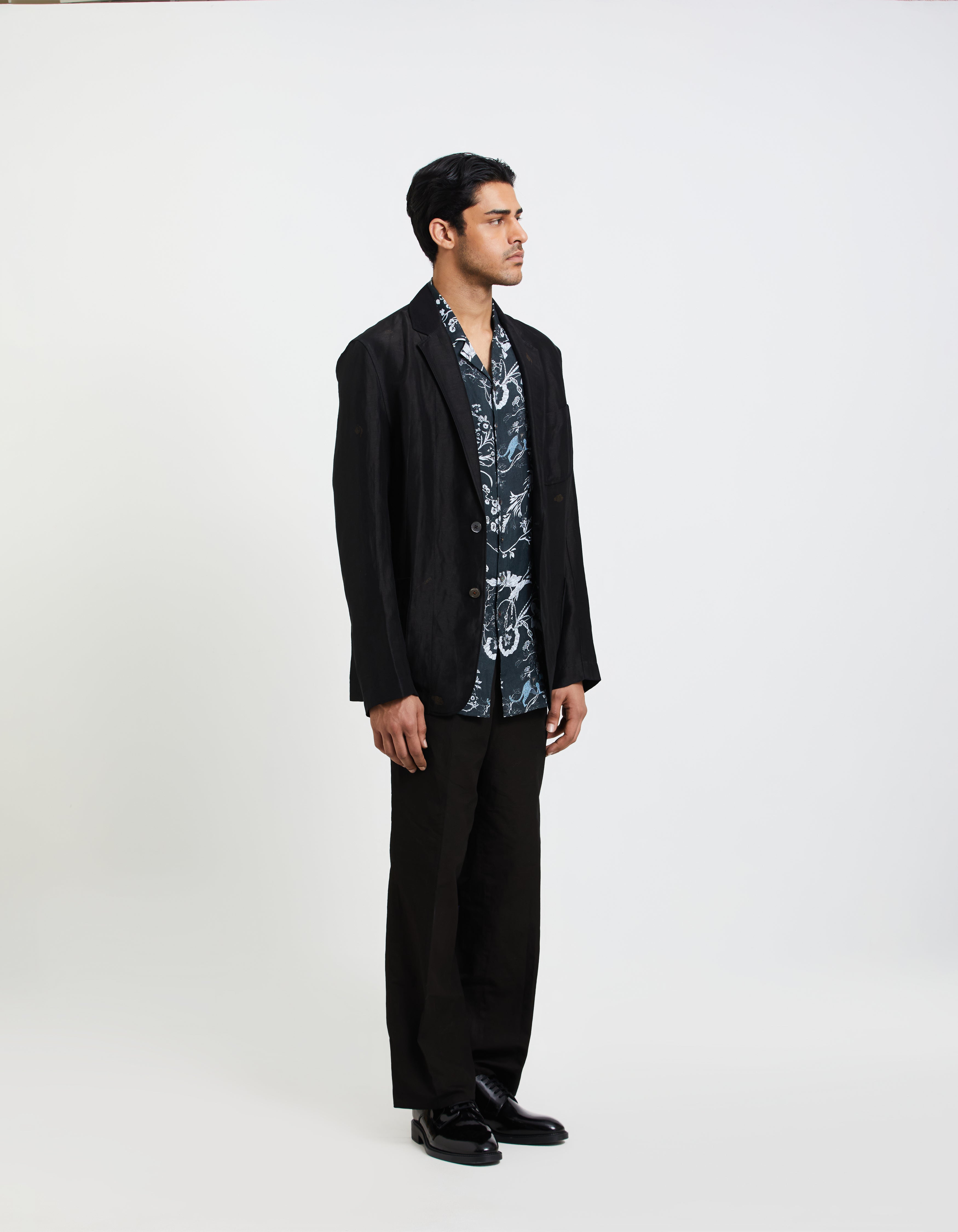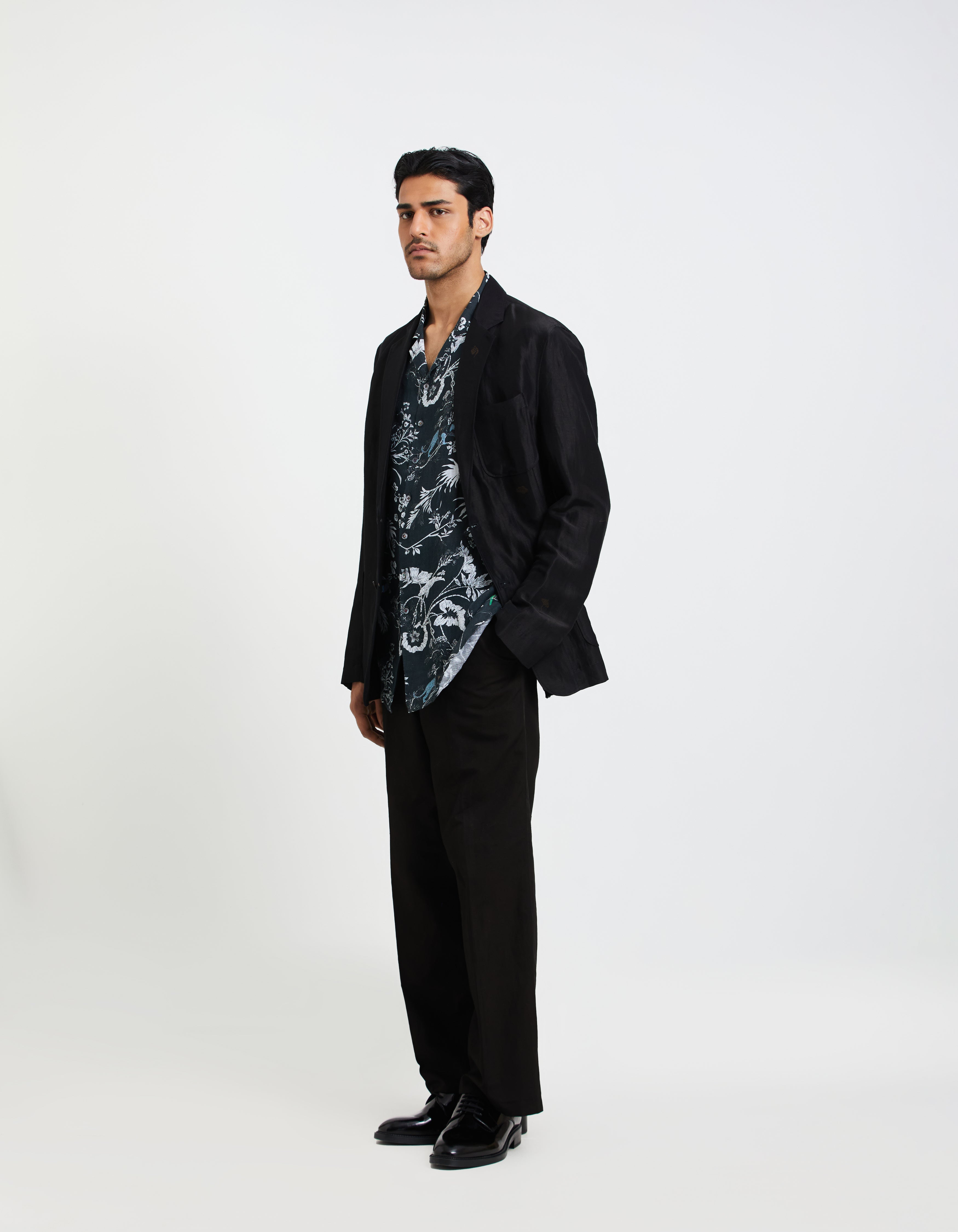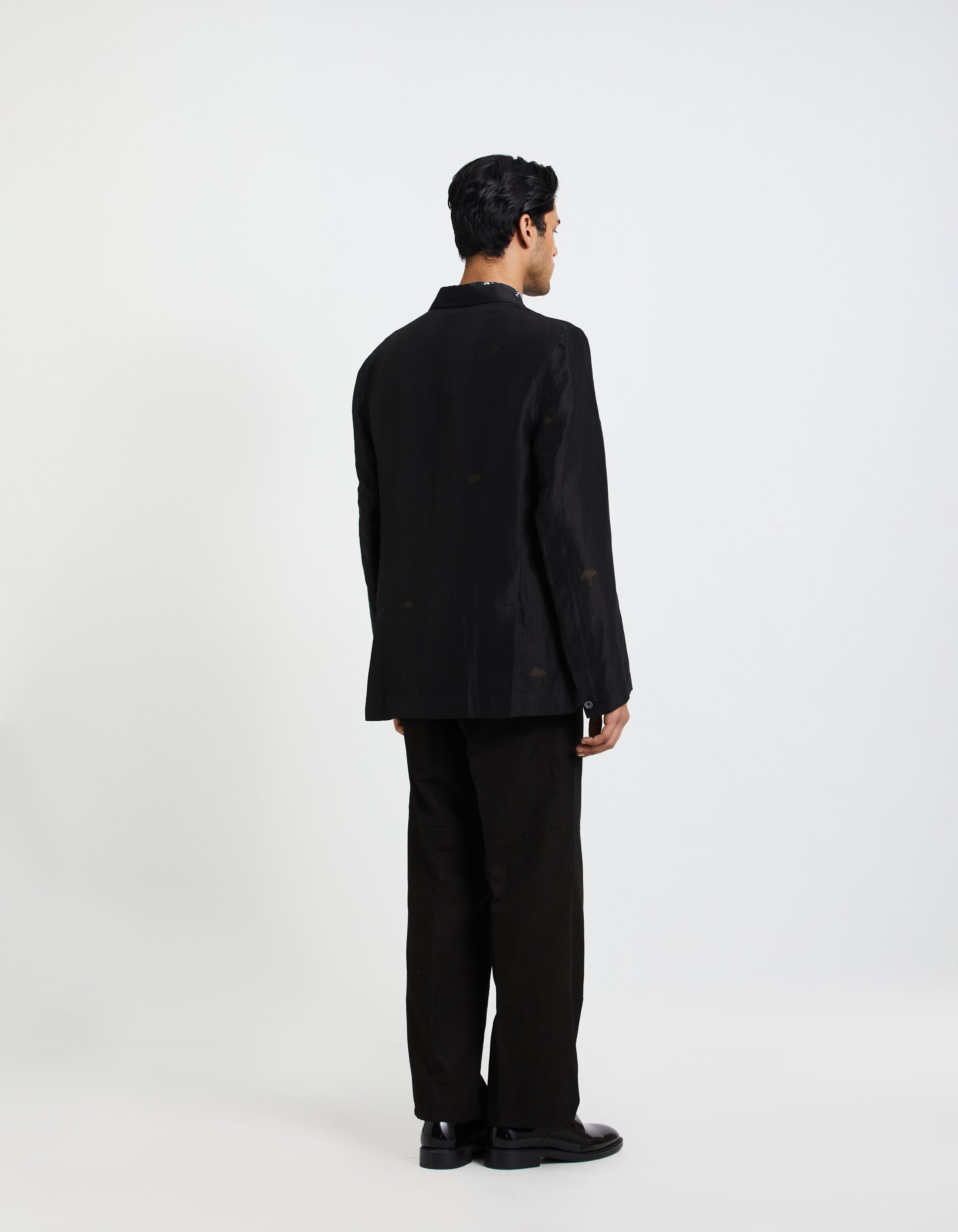 • SD Jugnoo Rana Blazer Black Satin Linen