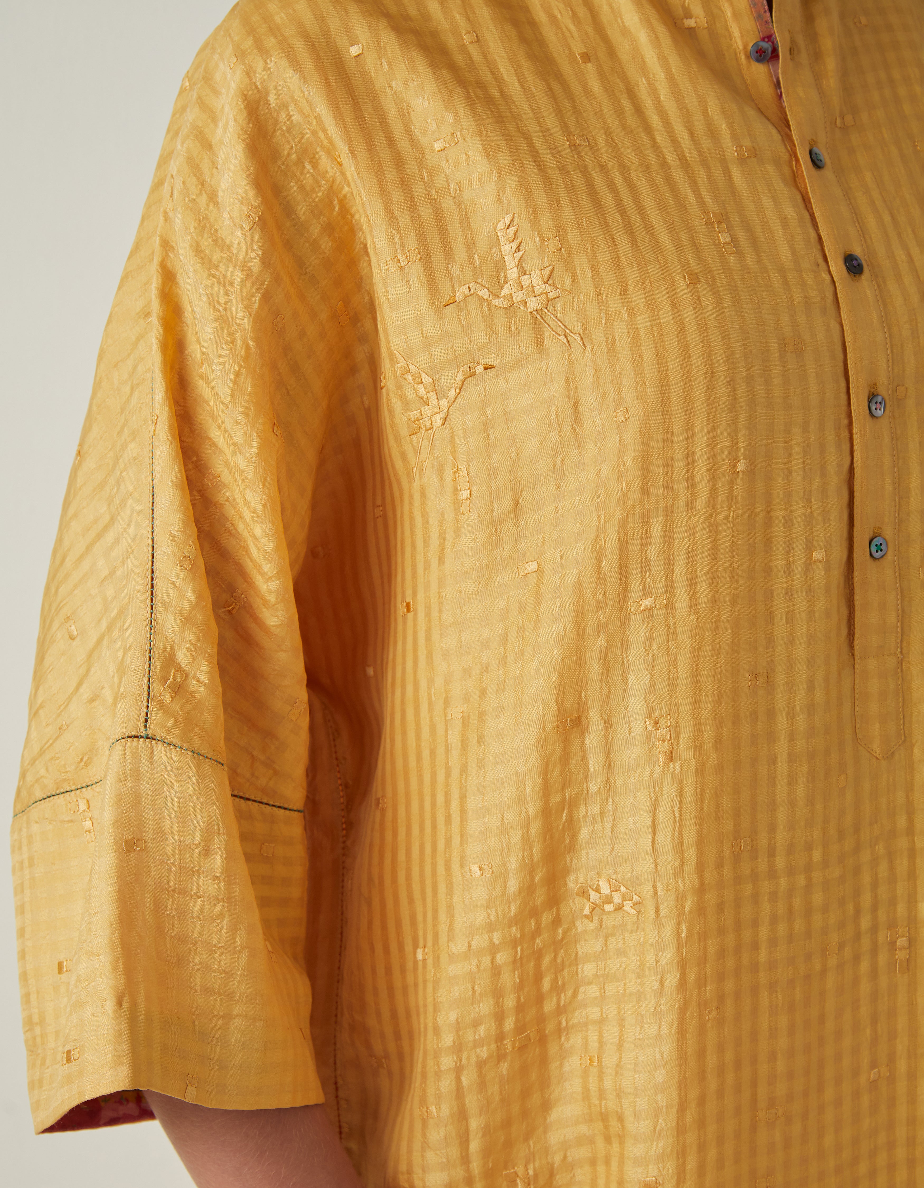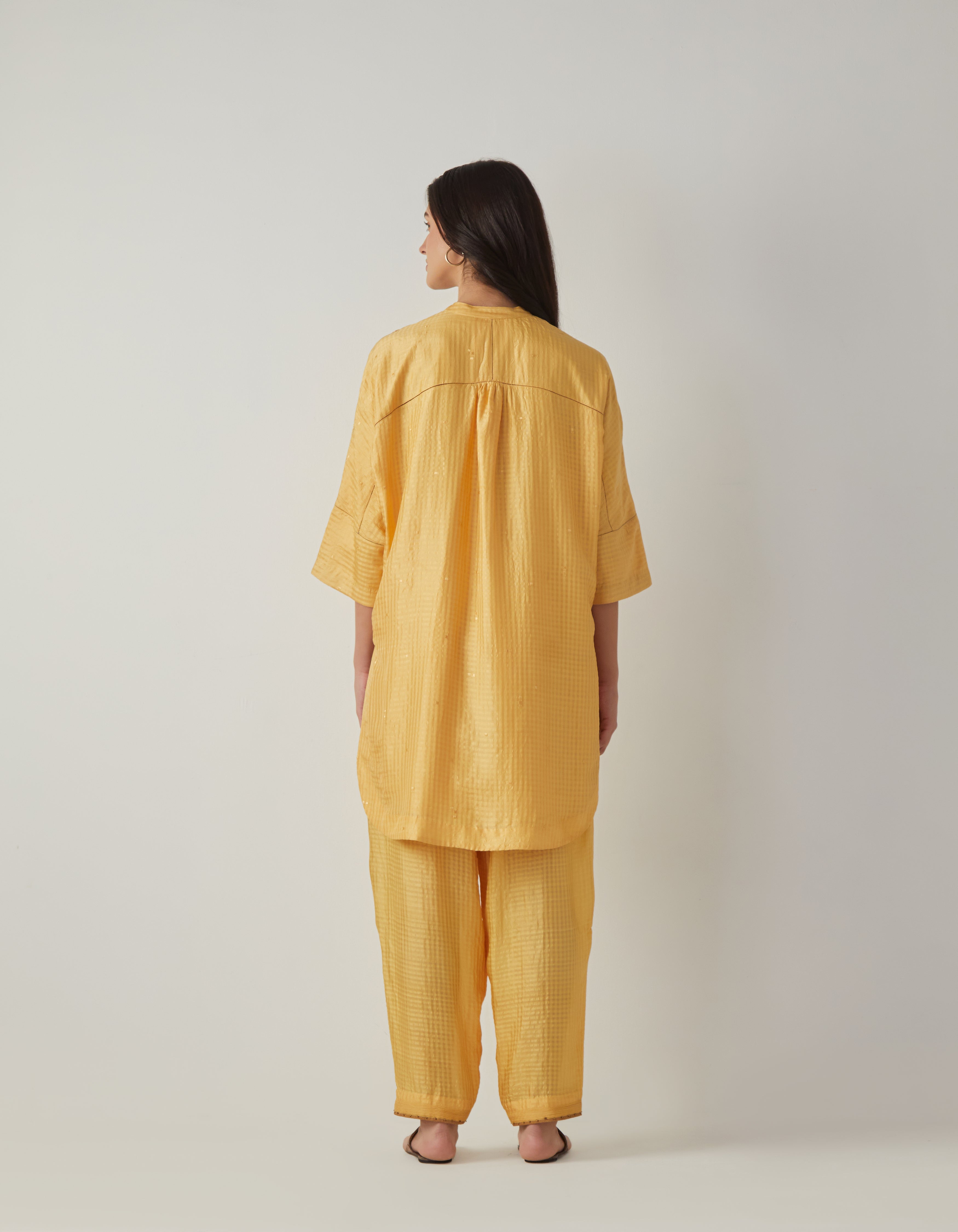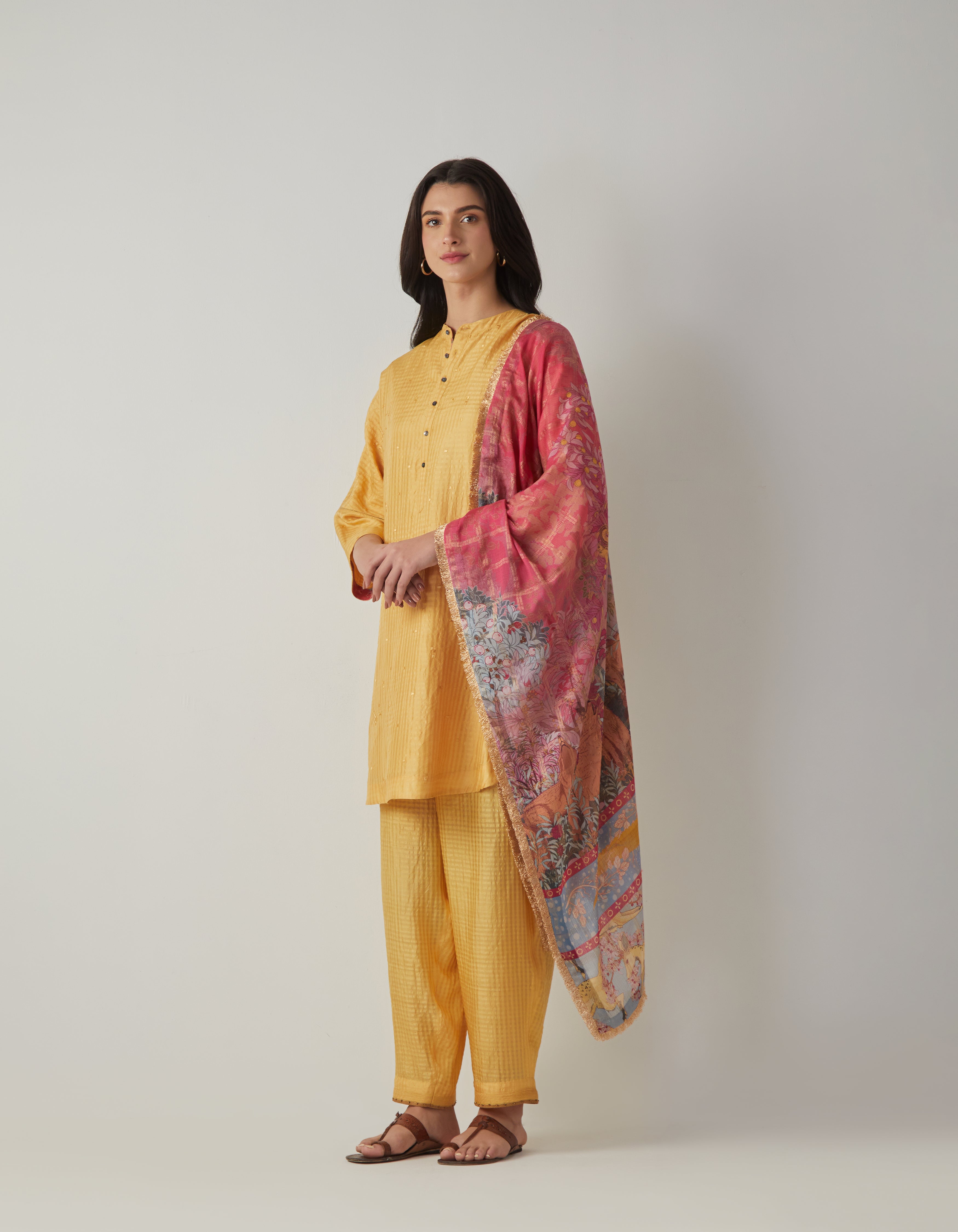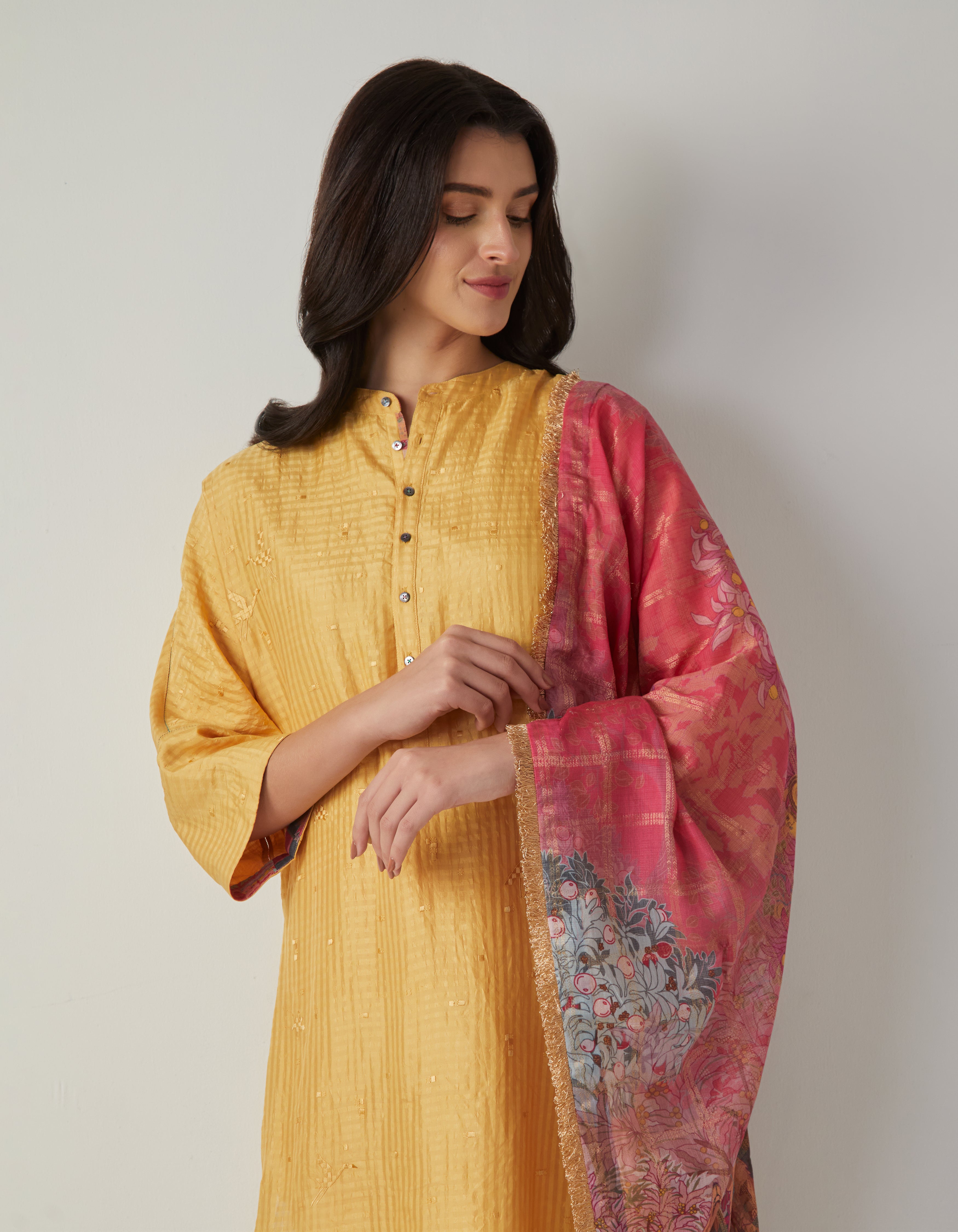 • SD Noor Kurta (Emb) Mustard Silk Check