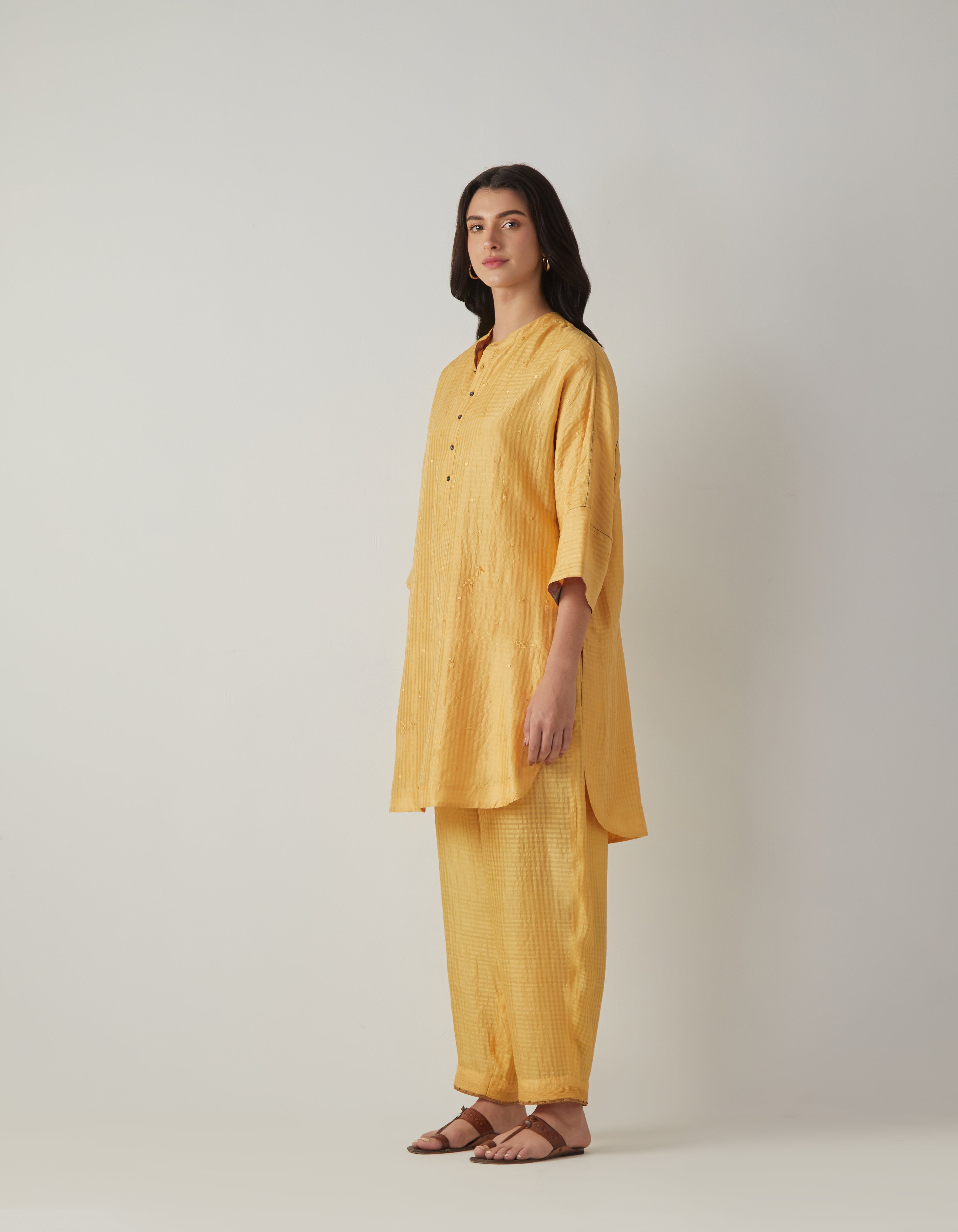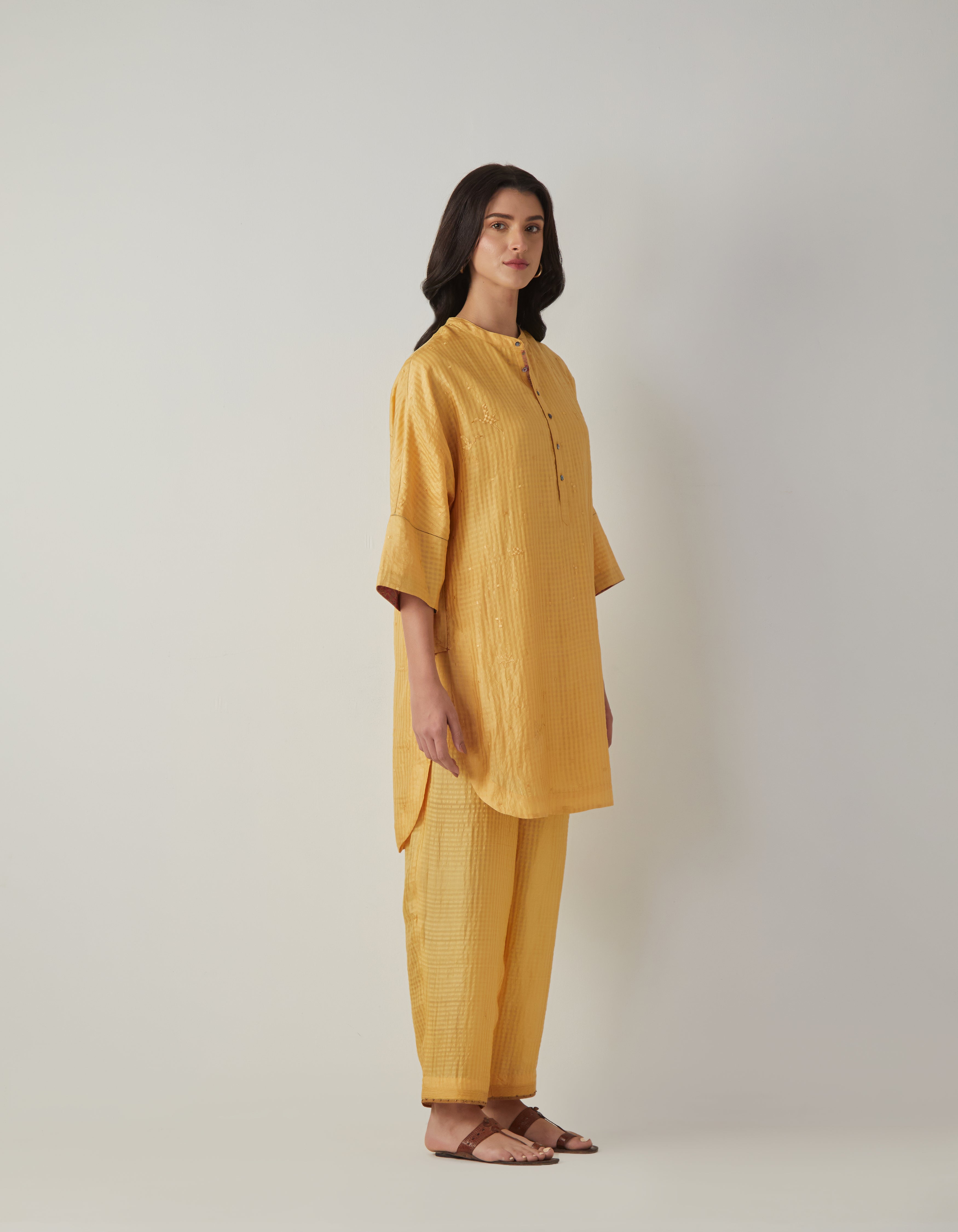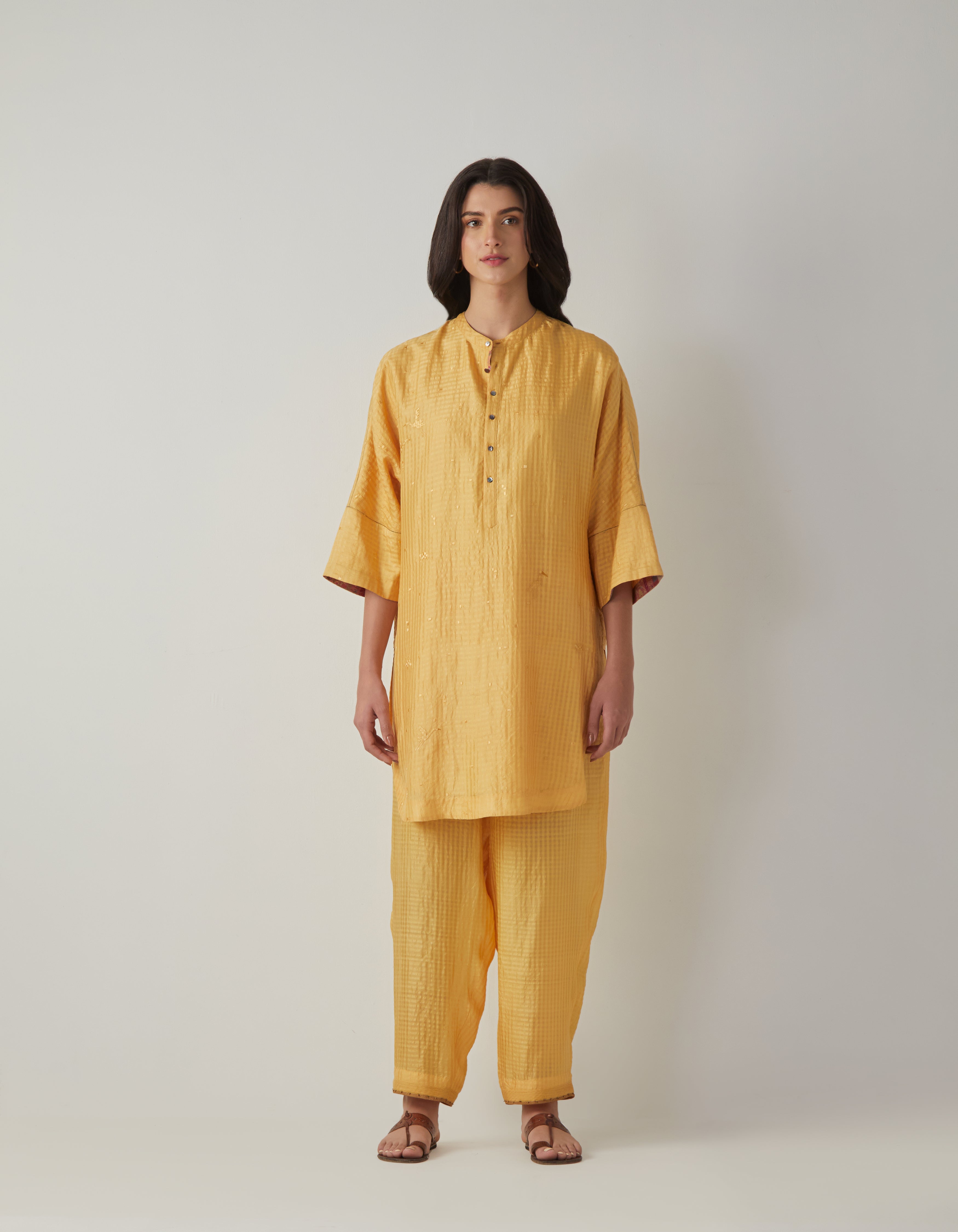 SD Noor Kurta (Emb) Mustard Silk Check