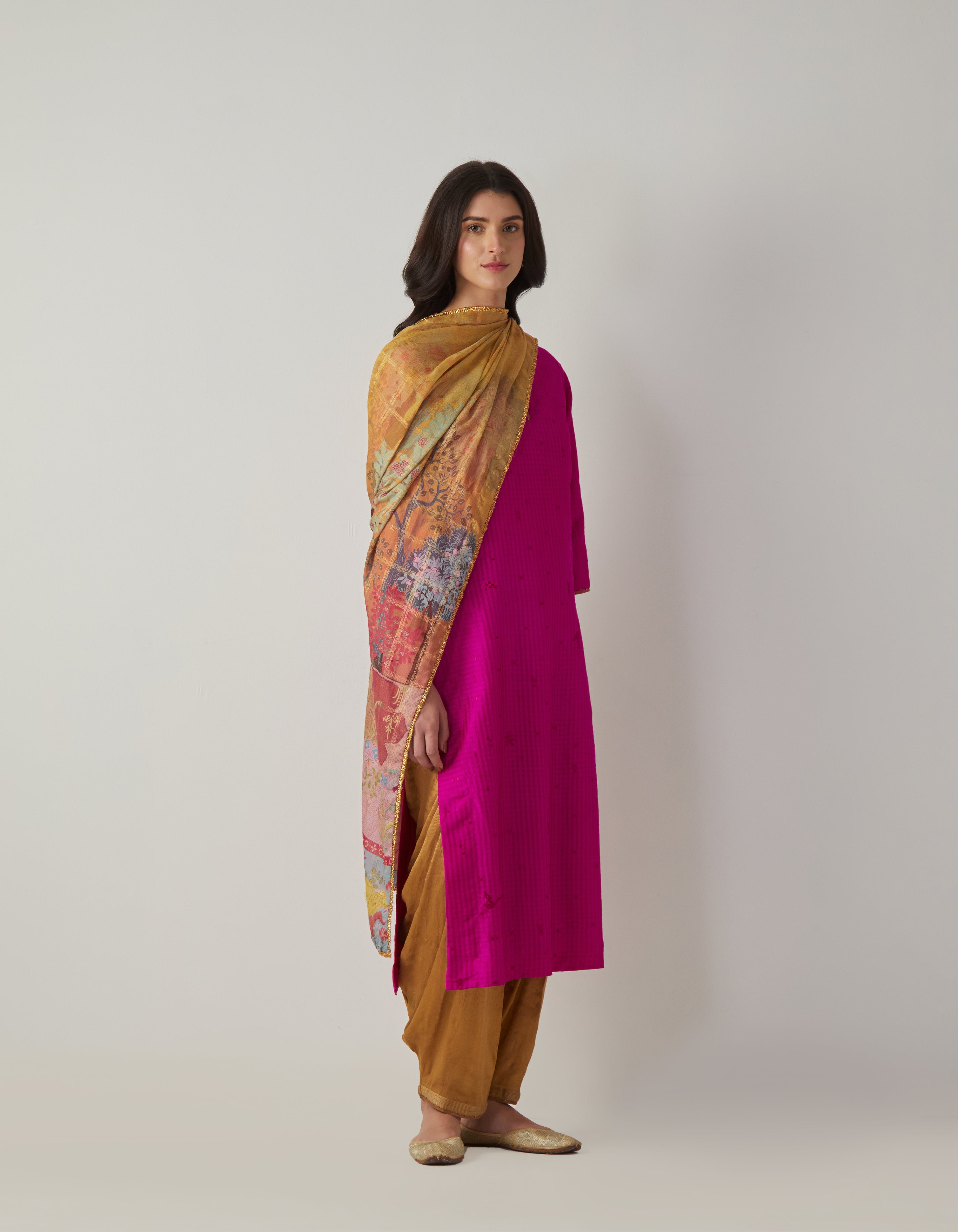 • SD Panchatantra Dupatta Rose Chanderi Silk
