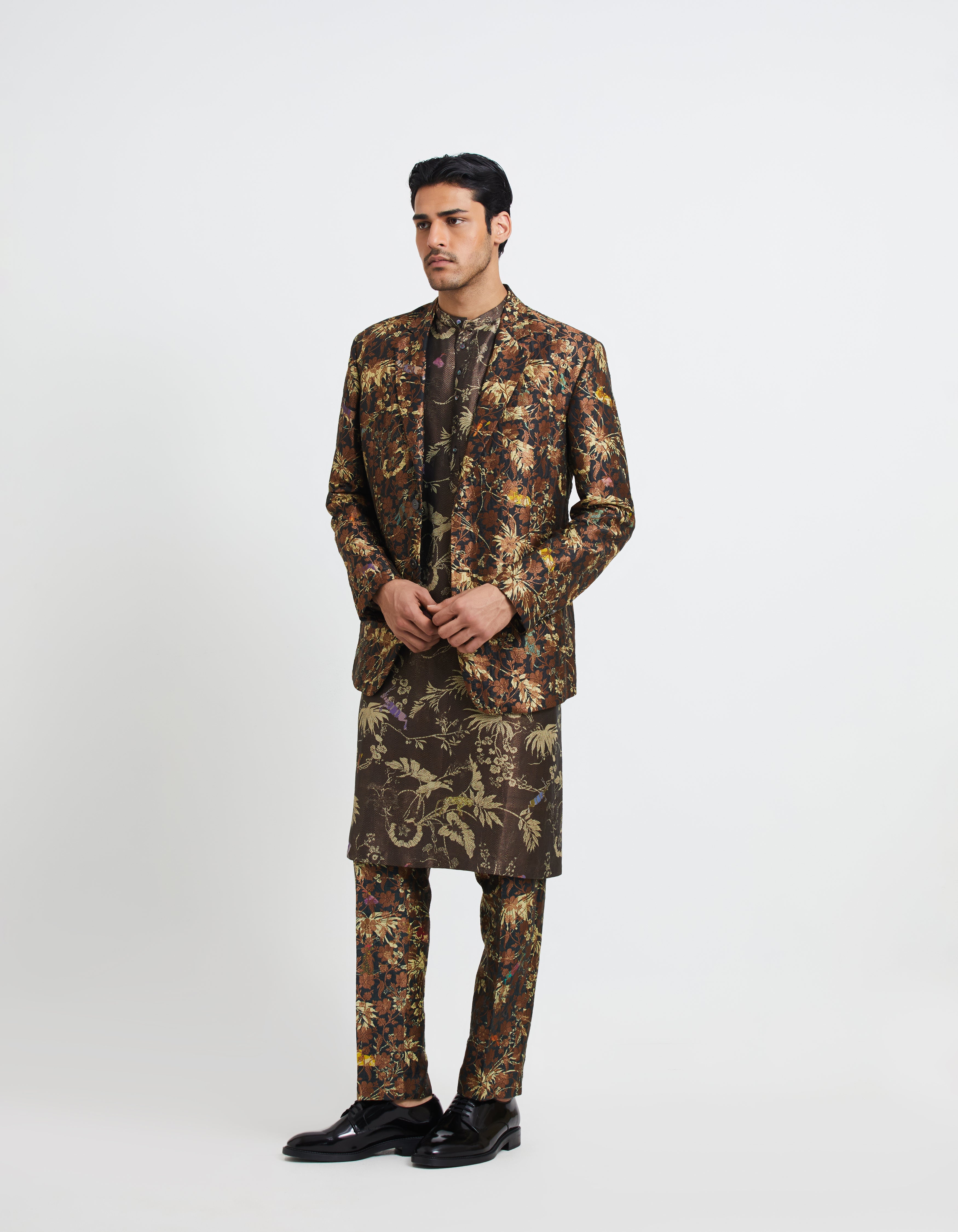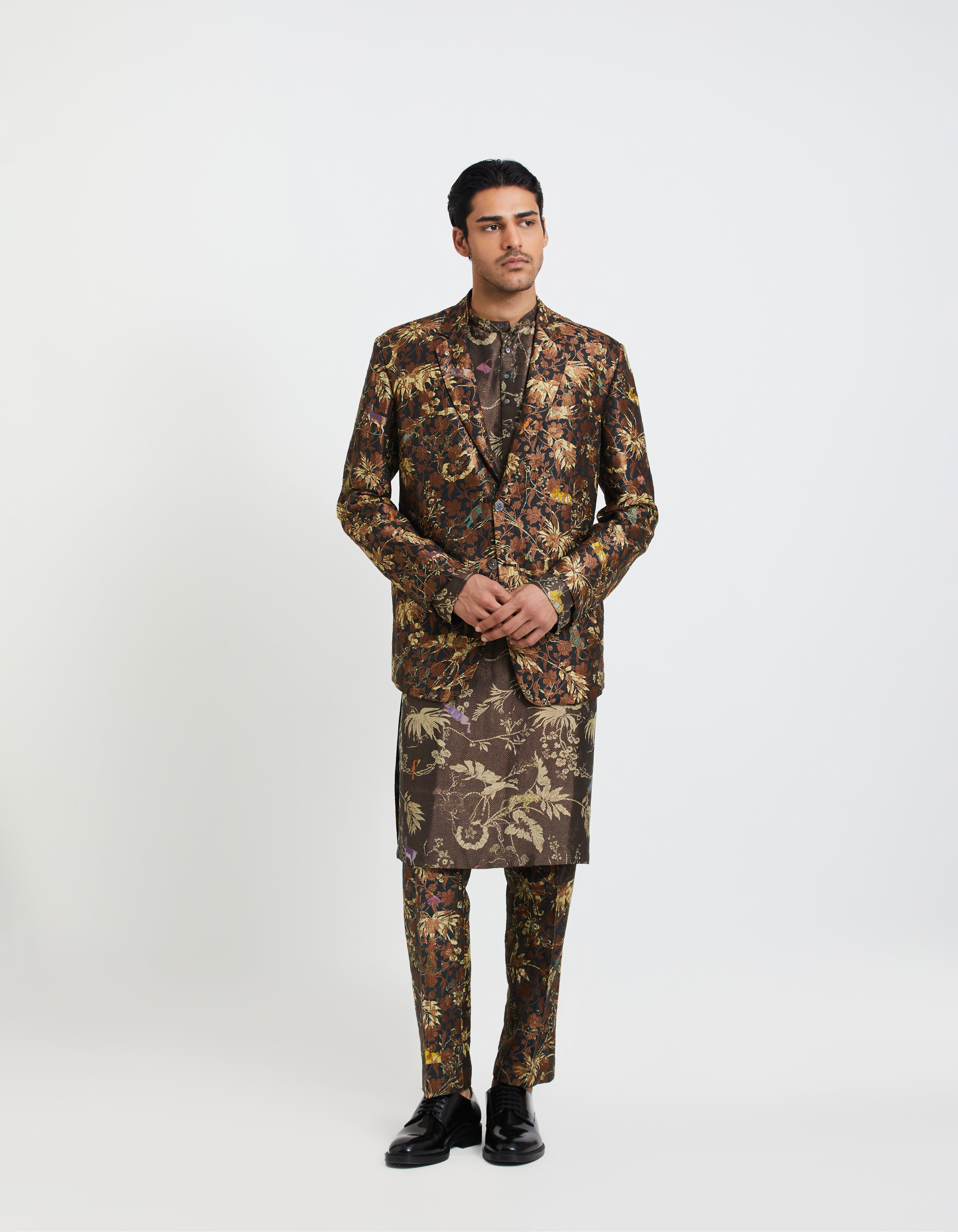 SD Rainforest Bade Miyan Kurta Black Silk Brocade Zig Zag
