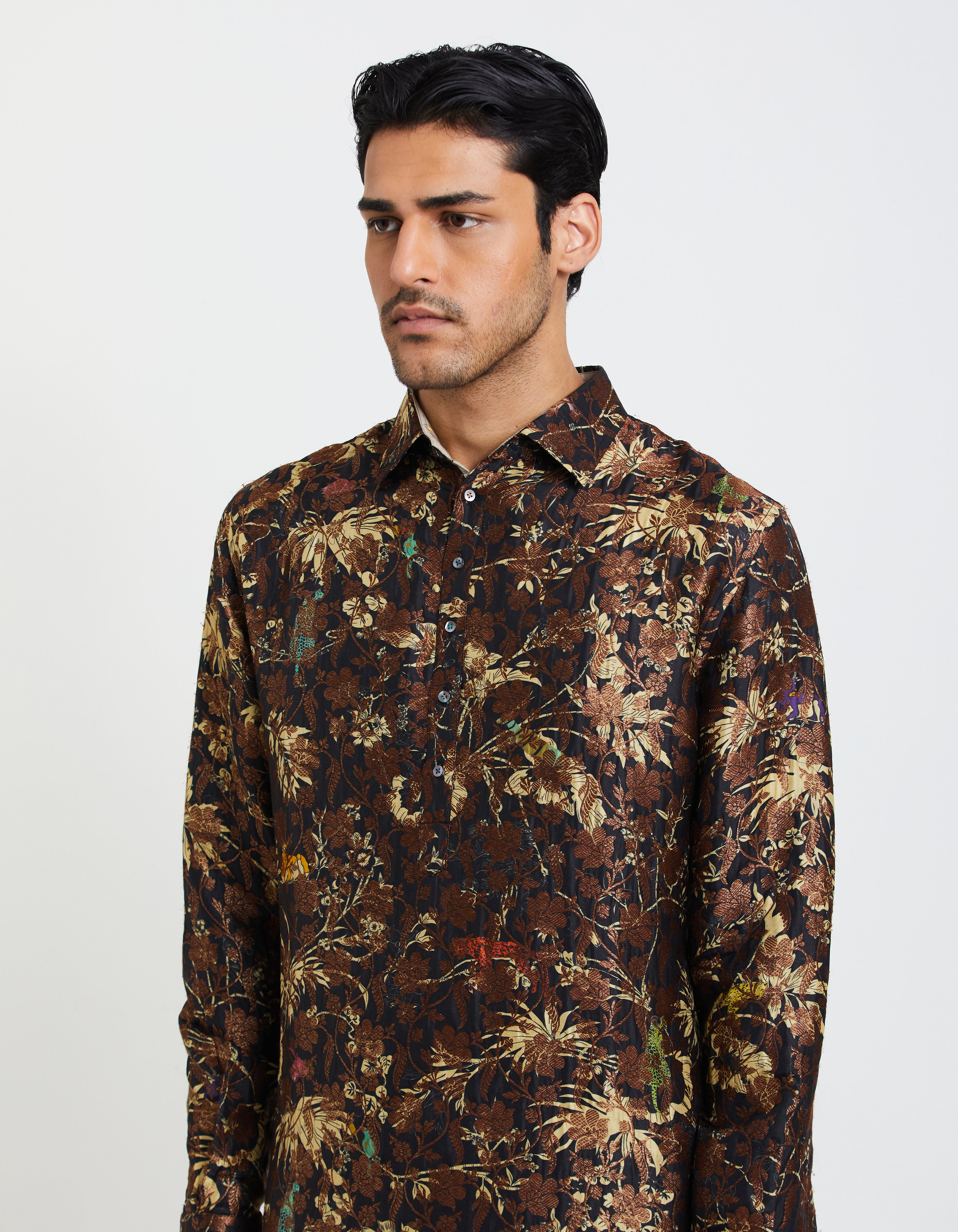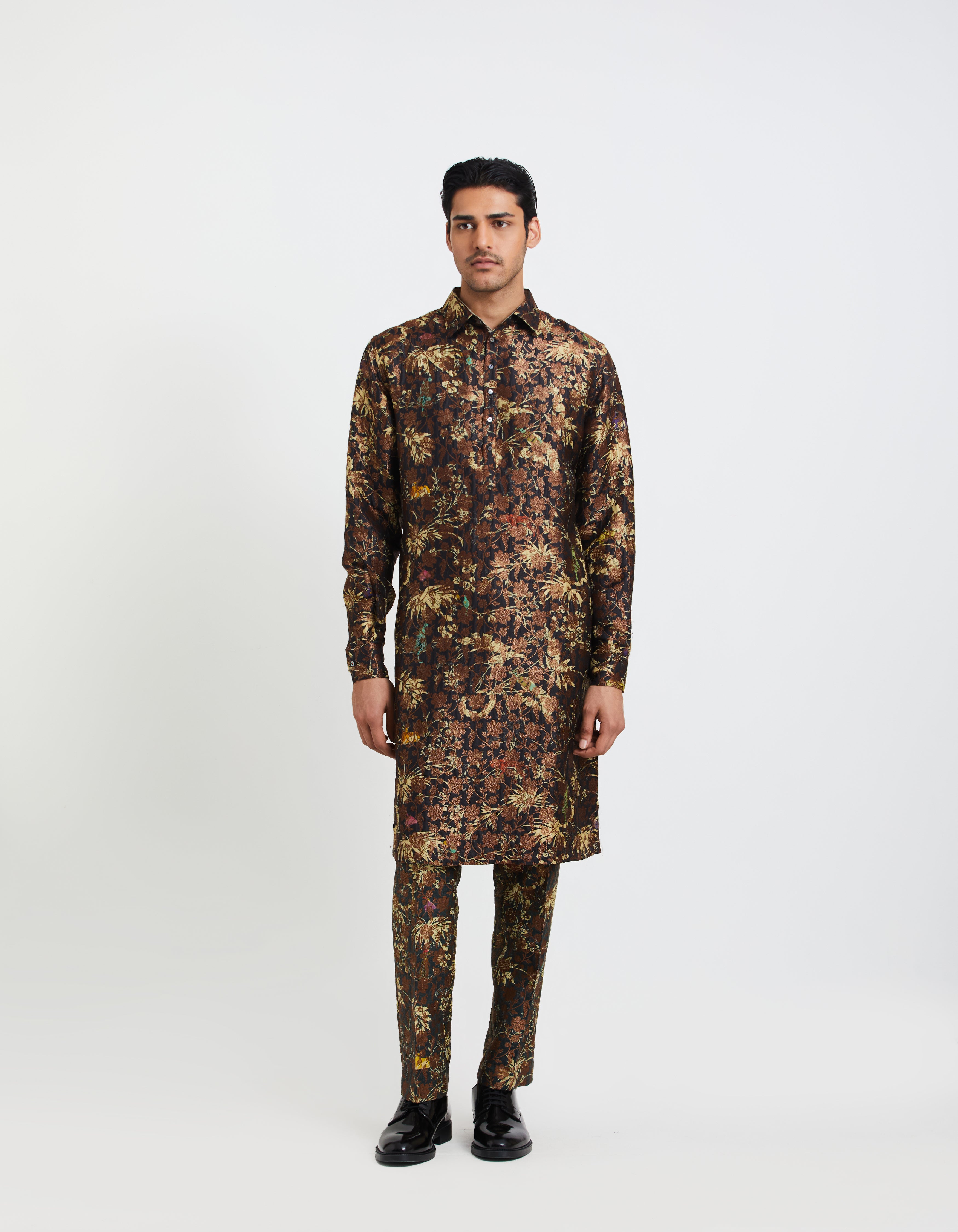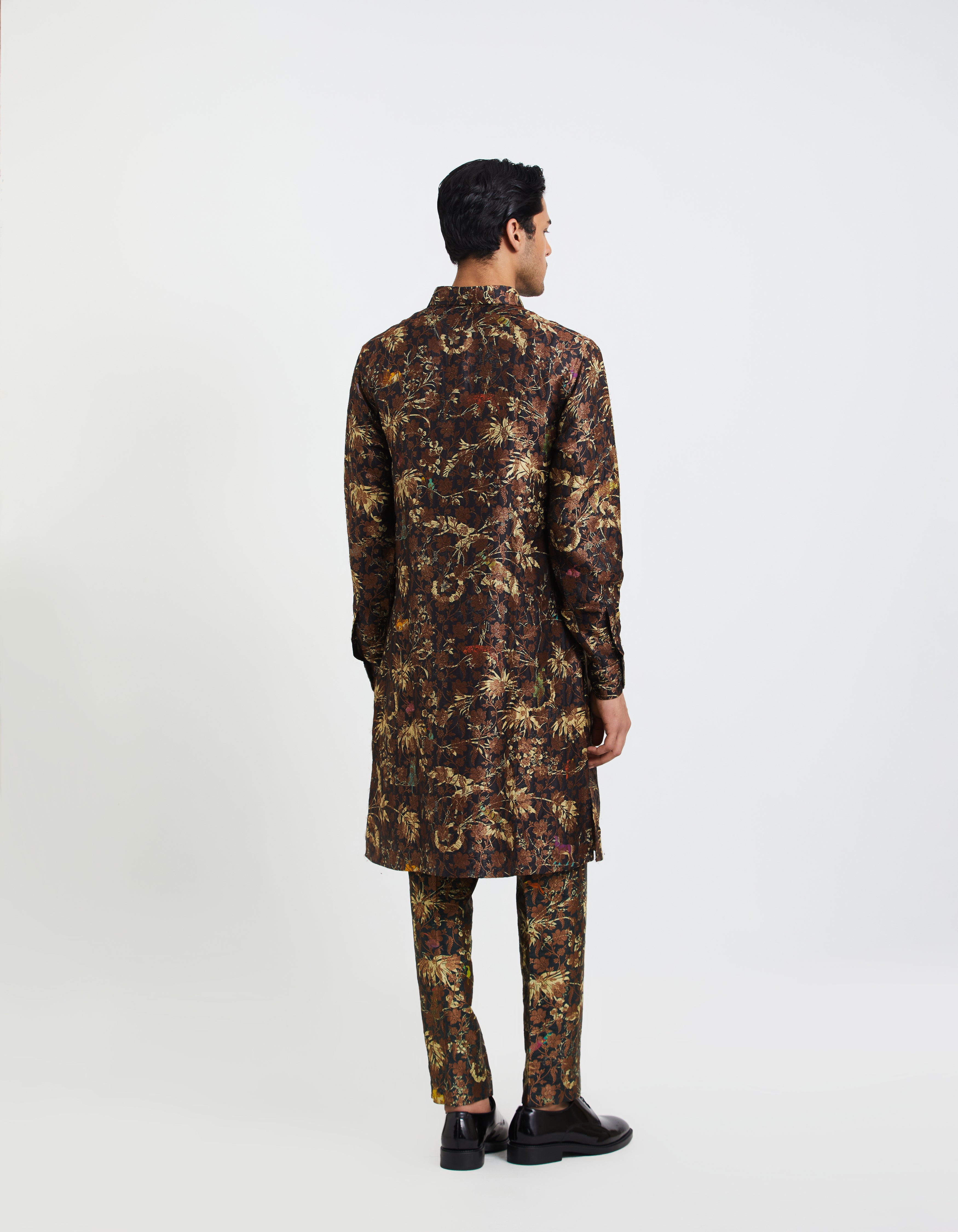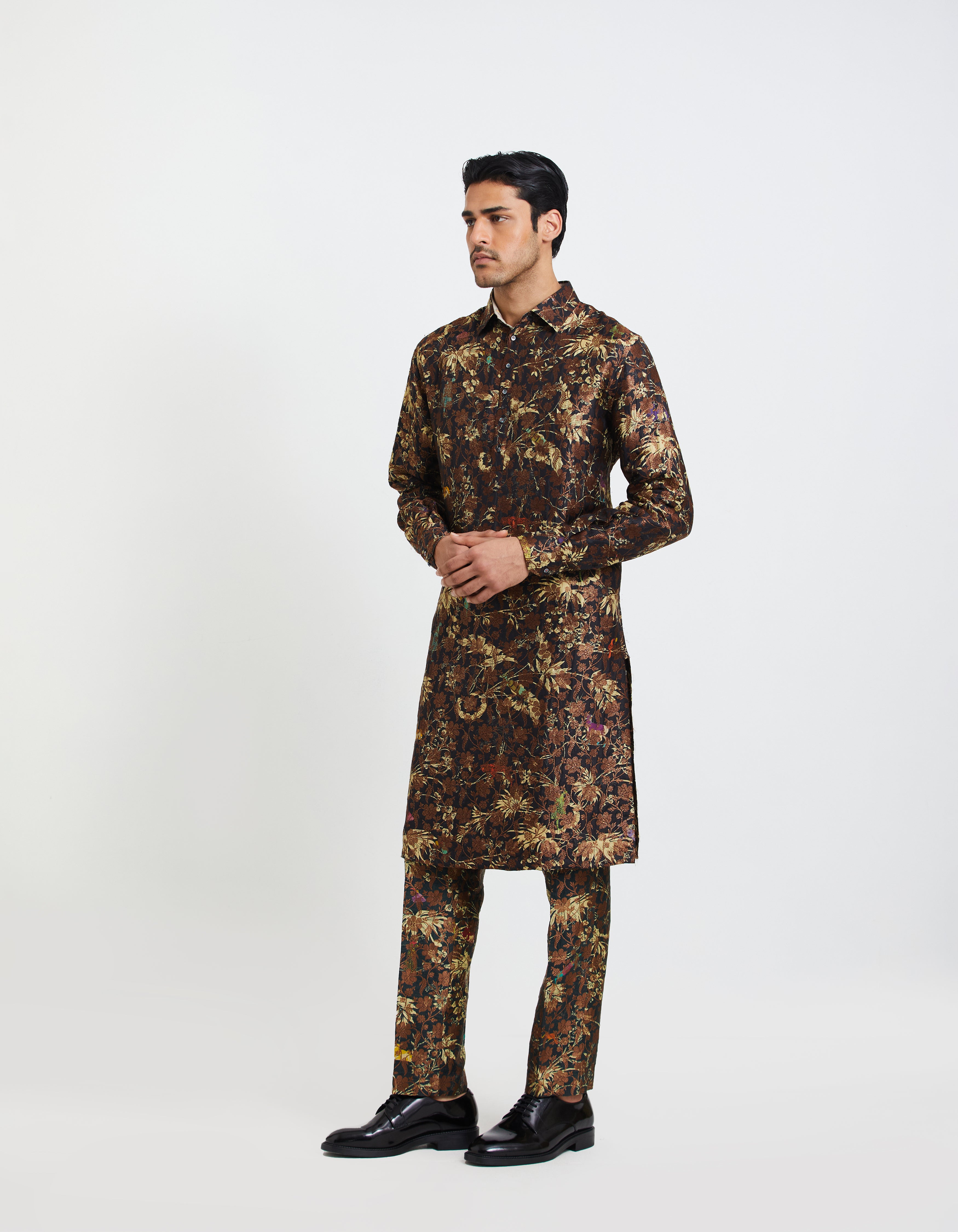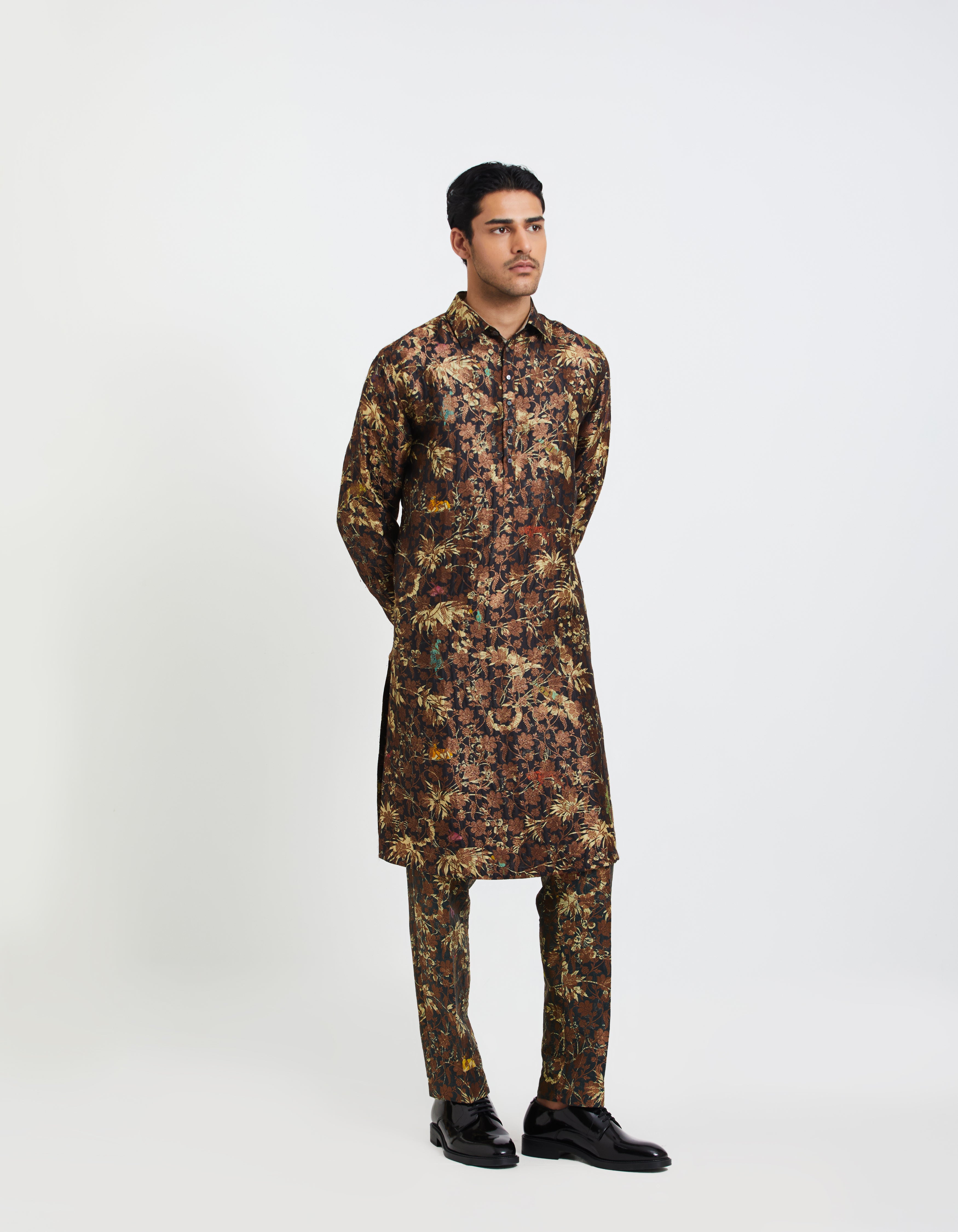 • SD Rainforest Pathani Bullet Kurta Black Silk Brocade