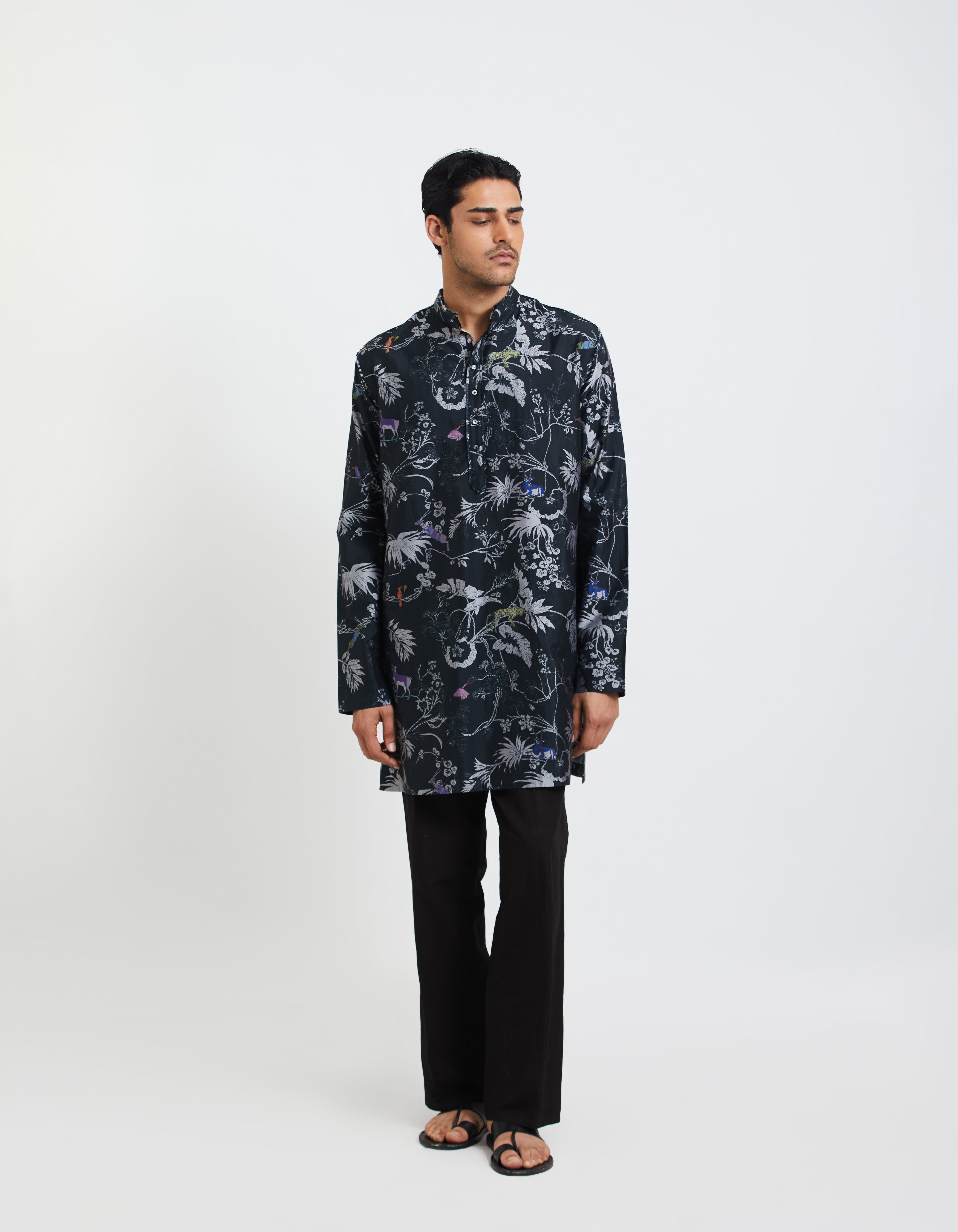 • SD Rainforest Raw Edge Chhote Miyan Kurta Black Silk Dupion