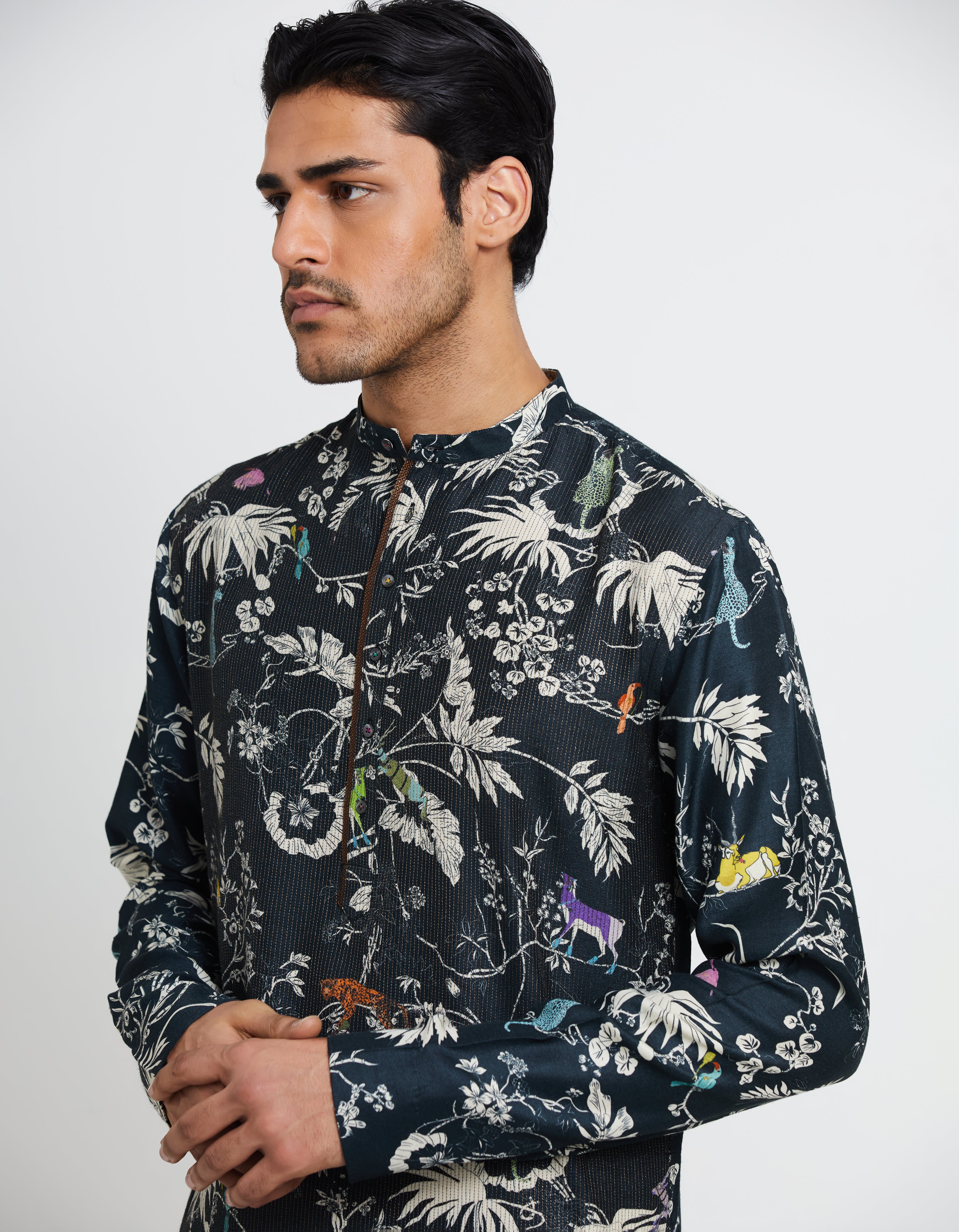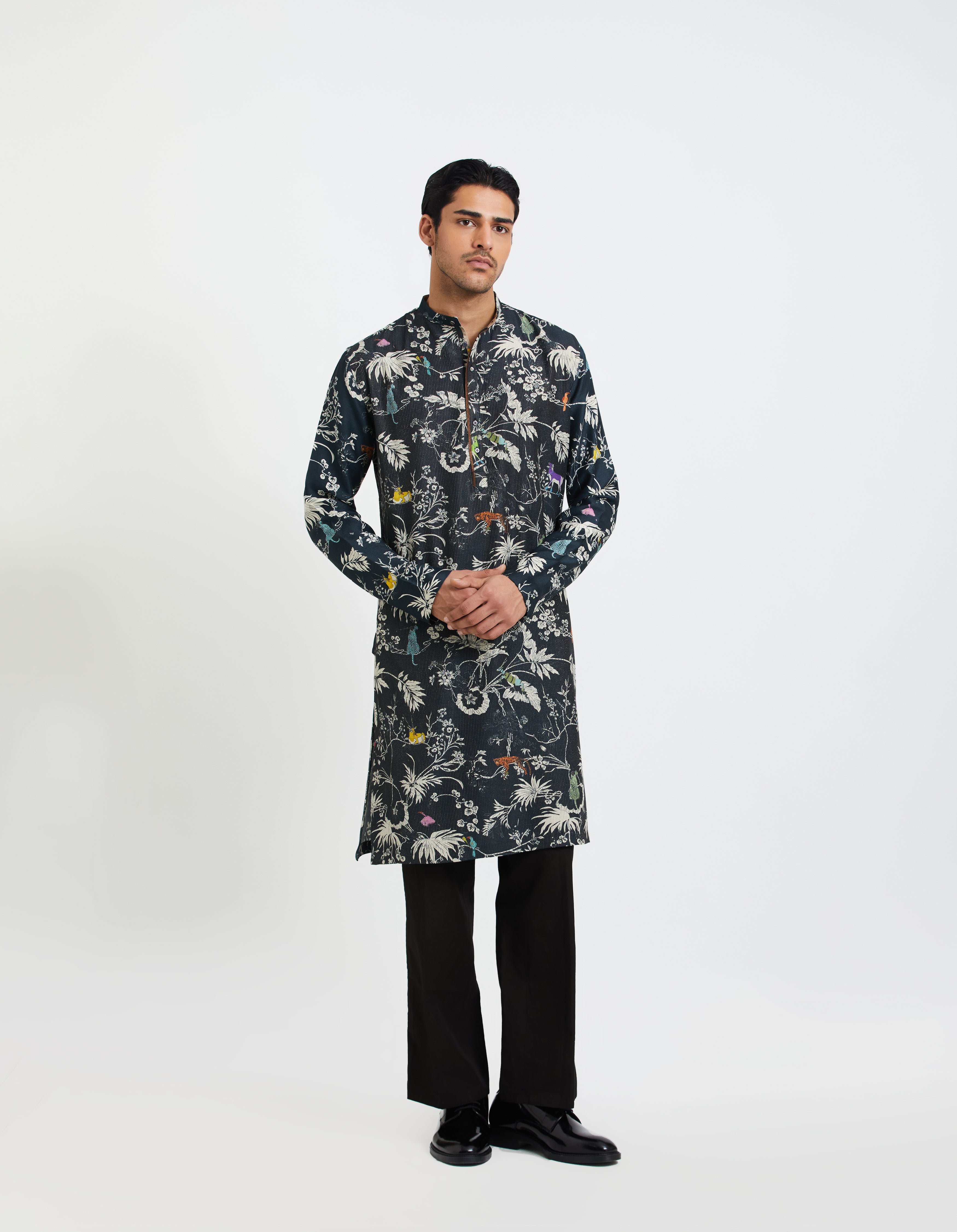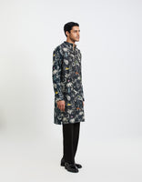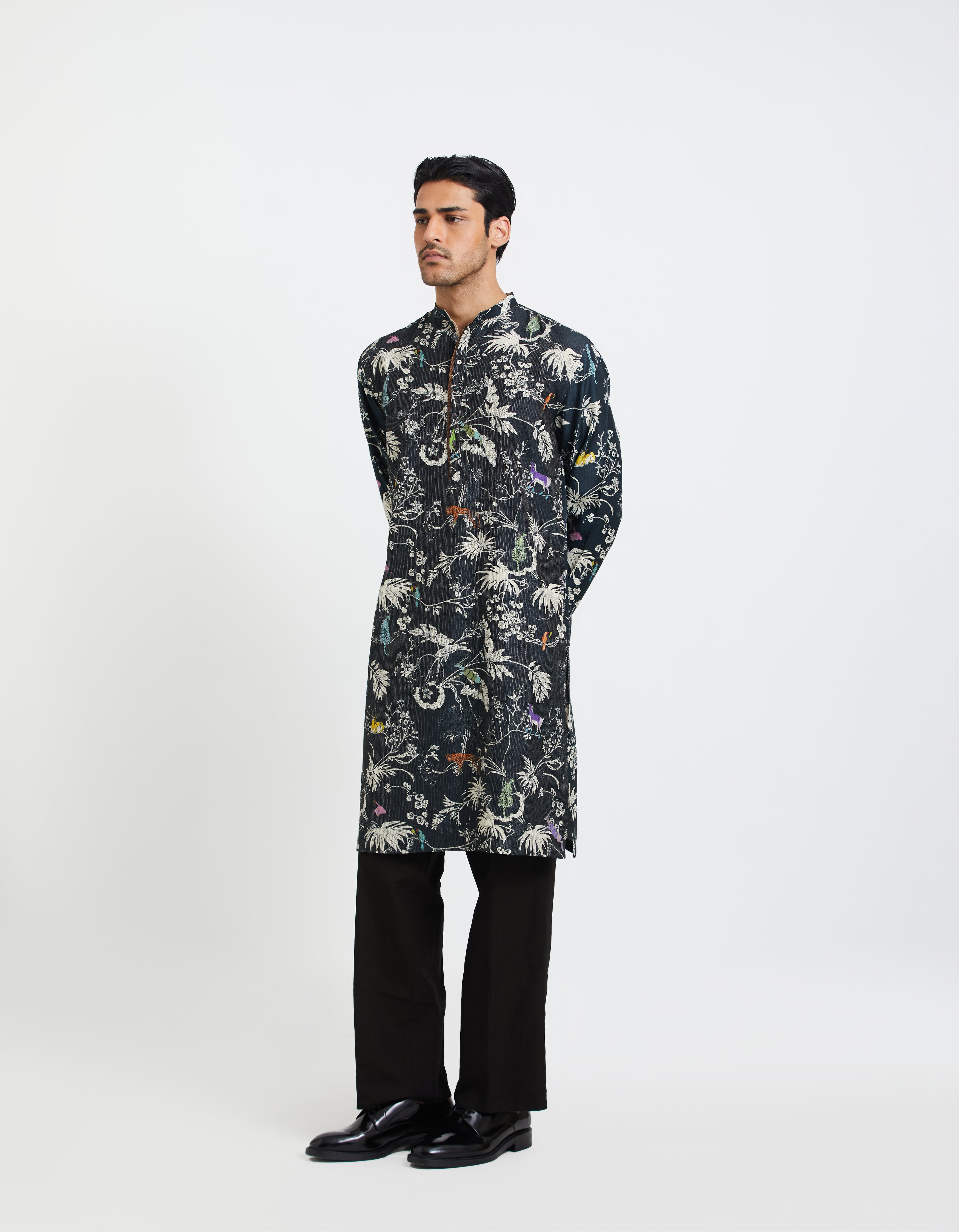 • SD Rainforest Roshan Bade Miyan Kurta Black Muga Satin